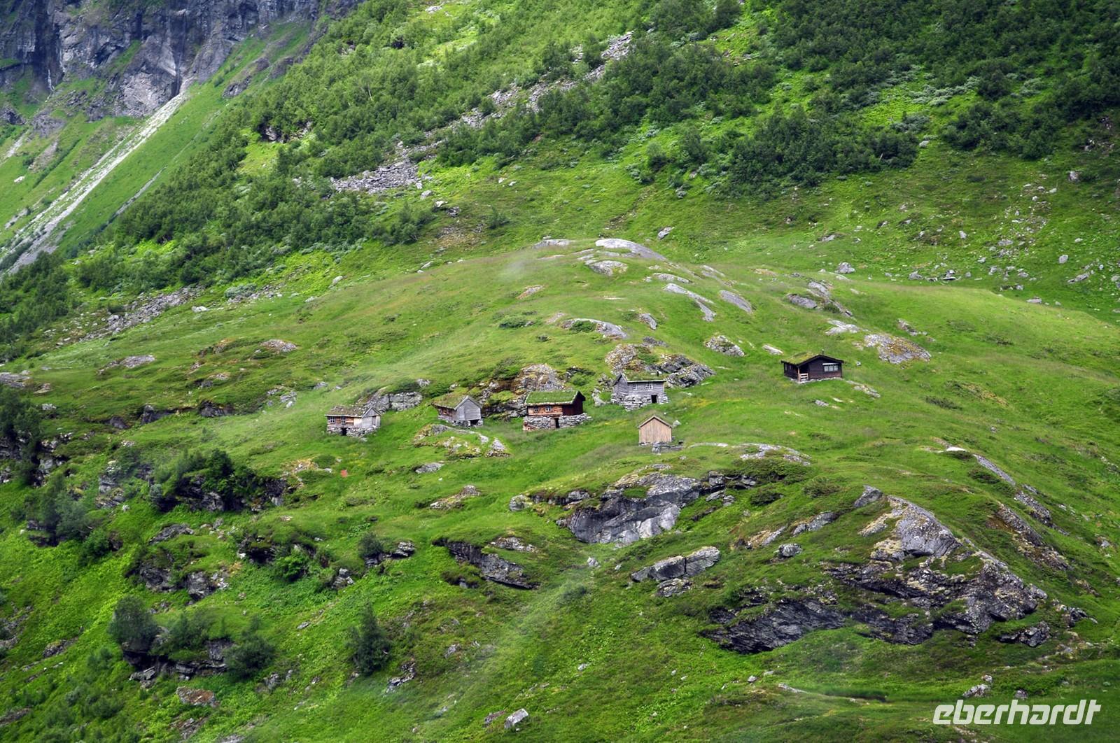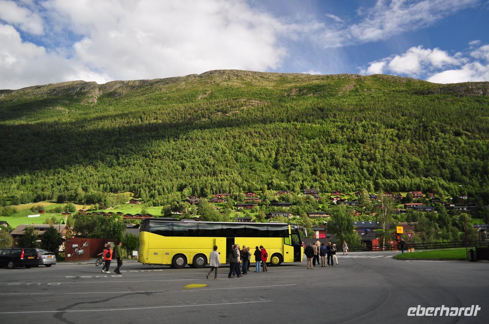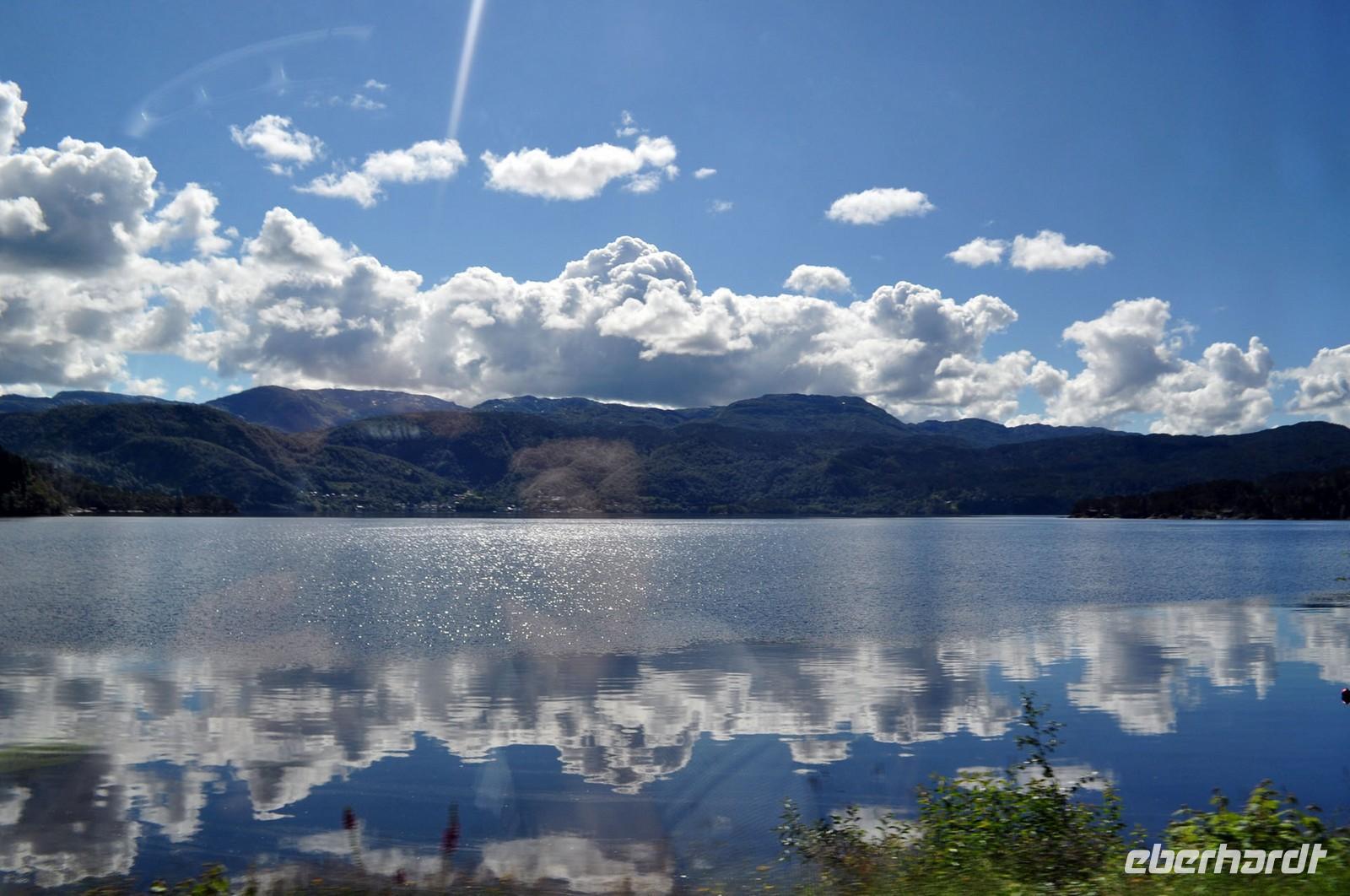 Gegen Mittag setzen wir unsere Fahrt fort. Vorbei an den imposanten und sehr fruchtbaren Landschaften des Hardangerfjordes, auch Obstgarten Norwegens genannt, da hier bedingt durch das milde Klima hervorgerufen vom warmen Golfstrom auch in dieser hohen nördlichen Breite noch viele Obstsorten angebaut werden können (z. B. Äpfel, Kirschen, Aprikosen, etc.).