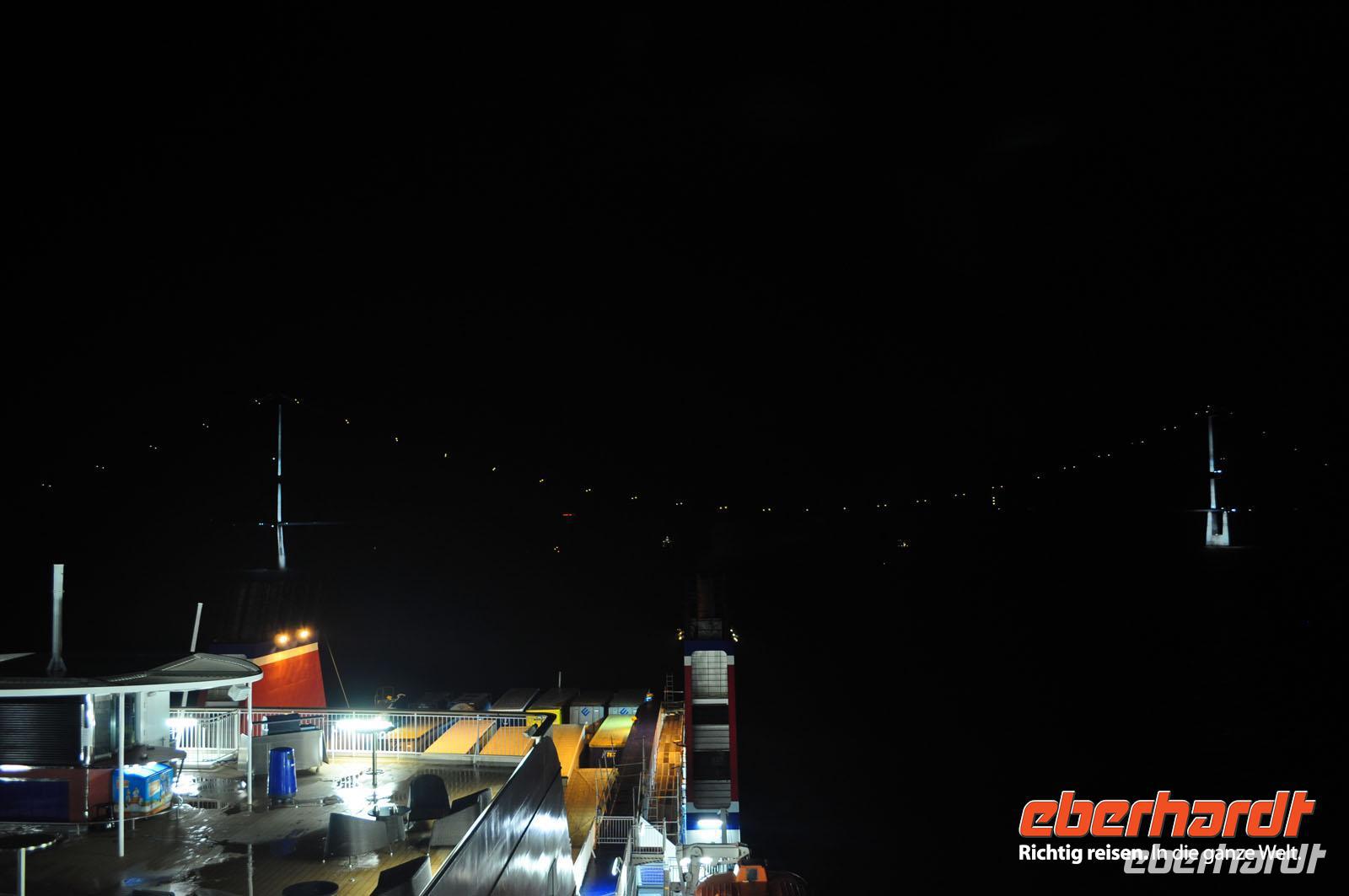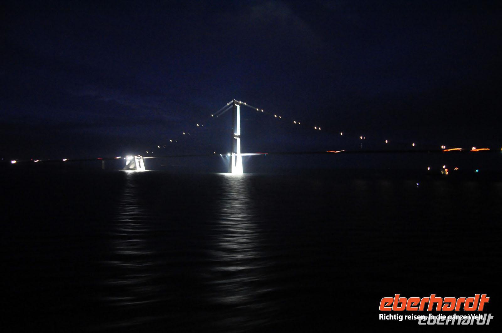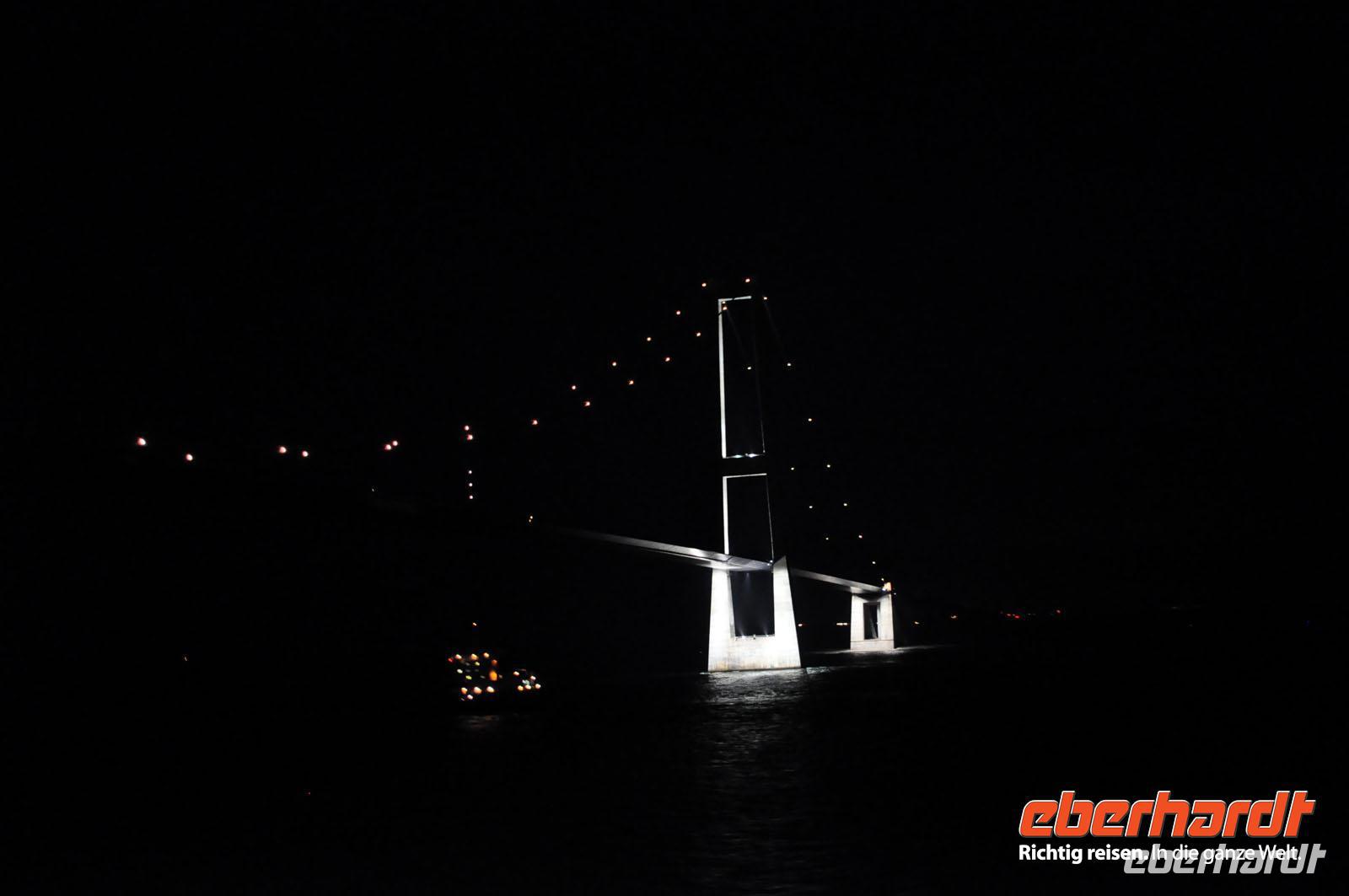 Gegen 19.30 Uhr legen wir ab und beginnen die Fahrt nach Göteborg. Gegen Mitternacht werden alle wach-gebliebenen mit der Durchfahrt der berühmten Hängebrücke über den Großen Belt belohnt.