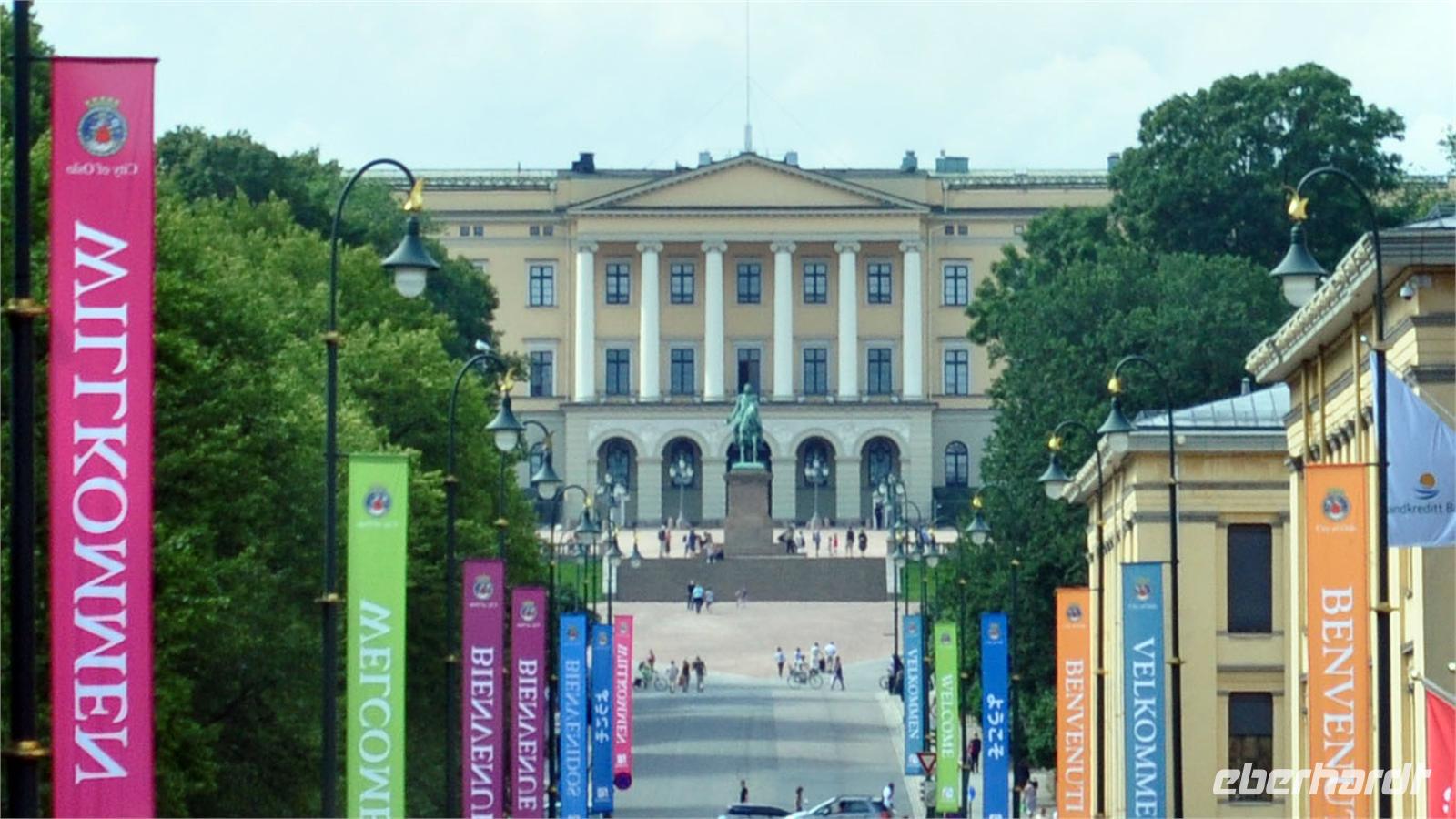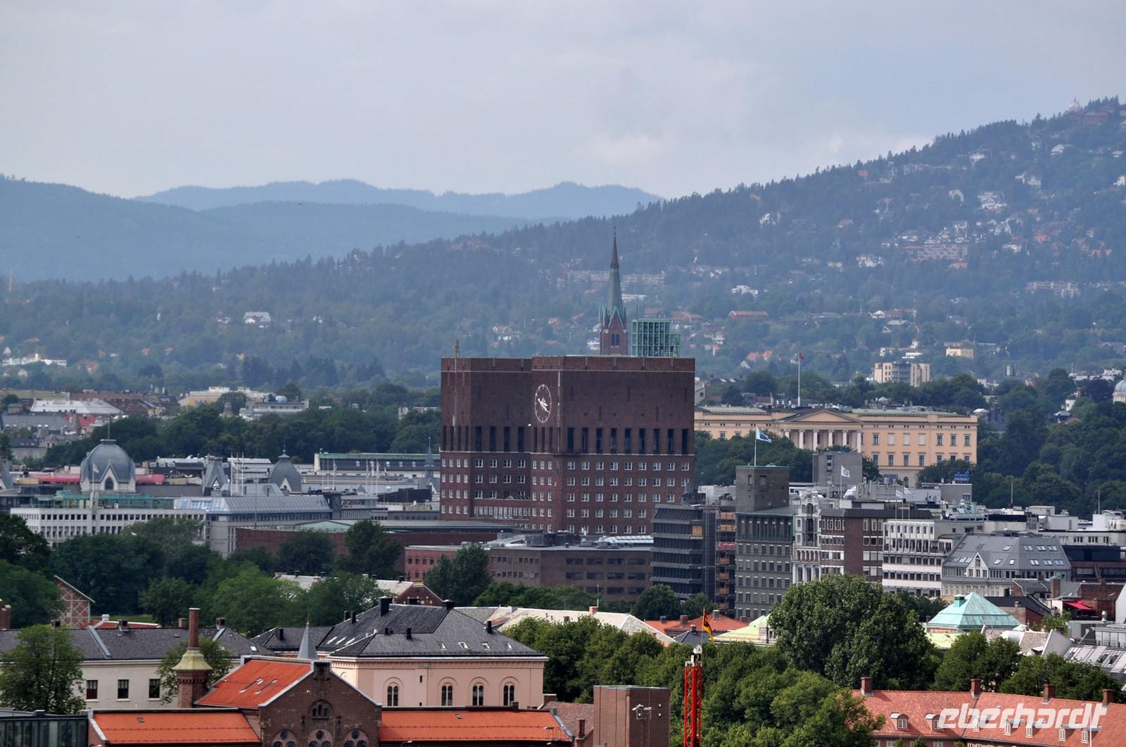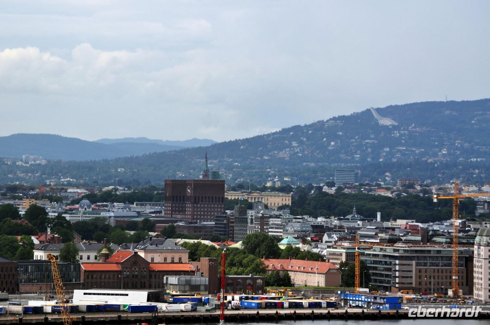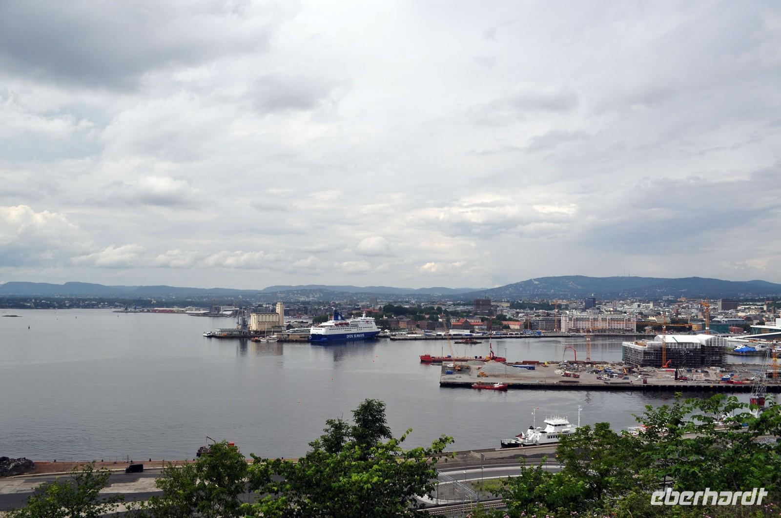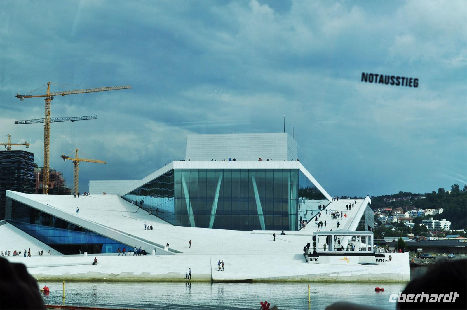 Wenige Zeit später treffen wir in der Nähe des neuen Osloer Opernhauses unseren Stadtführer Heinz. Er führt uns als erstes zu einem grandiosen Aussichtspunkt mit Blick über die ganze Stadt (Oslofjord, Rathaus, Schloss, Holmenkollen, Innenstadt, Opernhaus etc.). Die offene Art mit seinem ironischen Humor insbesondere gegen die Schweden (Schweden sind an allem Schuld! -> Staus, Schlechtem Wetter etc.) kommen sehr gut an. In diesen zwei Stunden wird sehr viiiieeel gelacht im Bus!