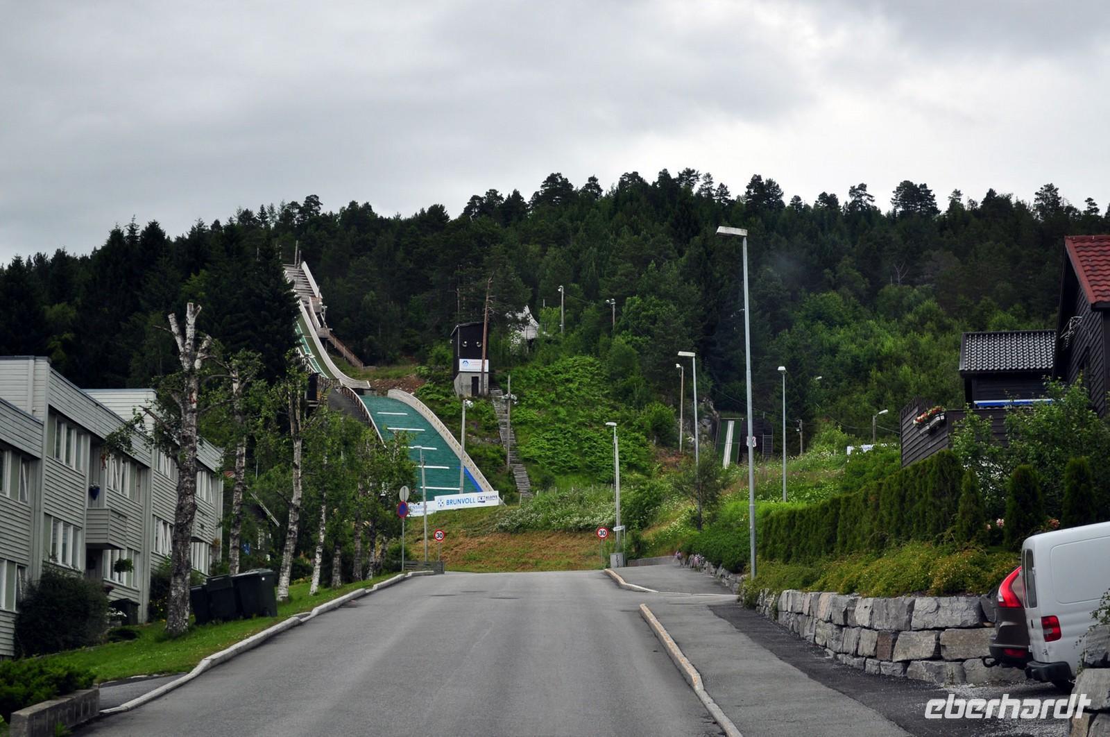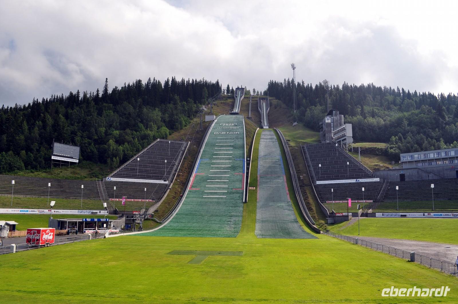 Wenige Kilometer erreichen wir das Stadtgebiet von Oslo. Was bei einem Oslo Aufenthalt niemals fehlen darf, ist der Besuch der berühmten Skisprungschanze am Holmenkollen, erst Recht nicht im Jahr der vielumjubelten Nordischen Ski WM und dem damit verbundenen Neubau der Schanzenanlage.