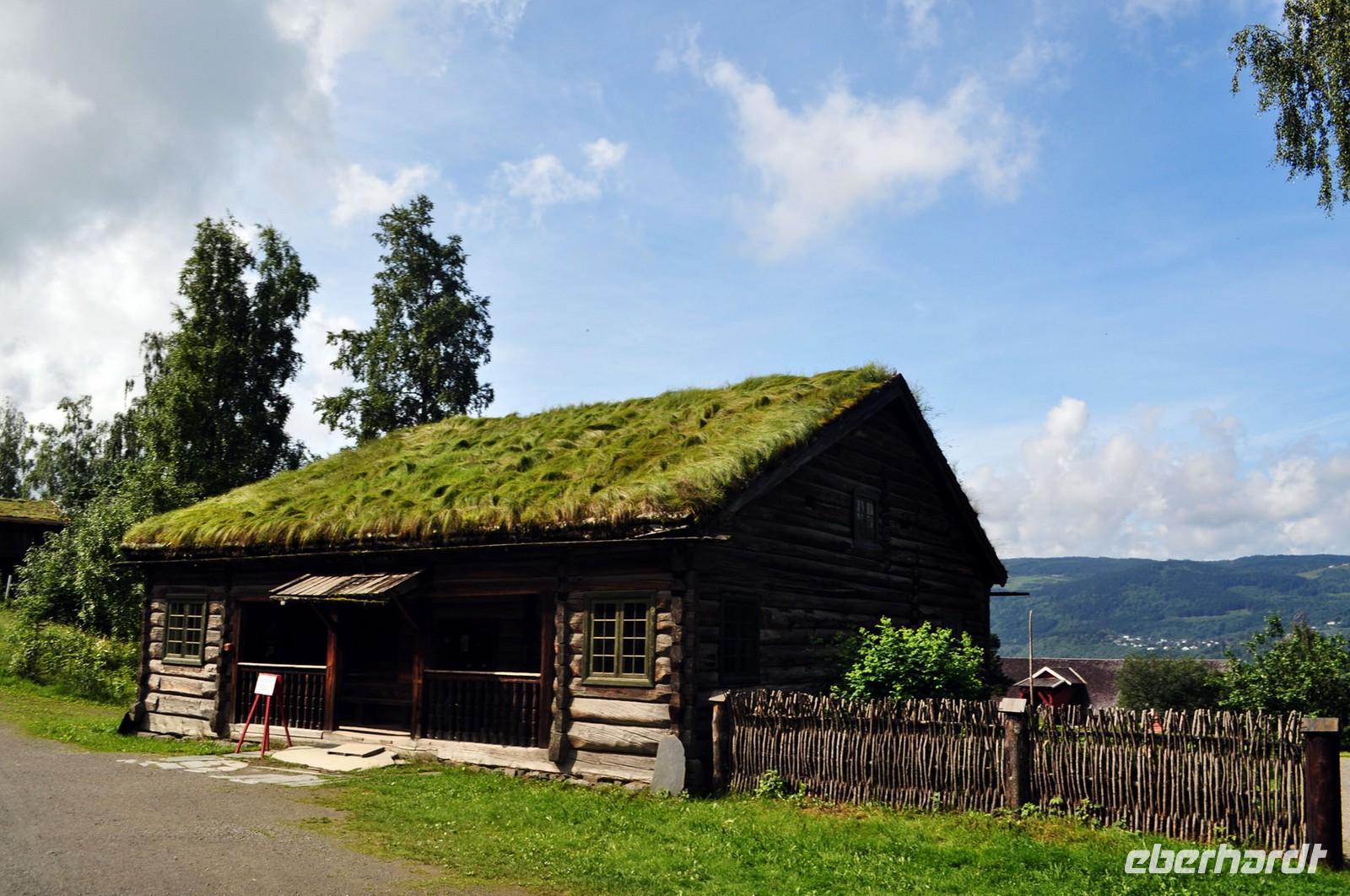 Anschließend ging es nur wenige Meter weiter zum größten Freilichtmuseums Norwegens, dem Museum Maihaugen. In zwei Gruppen wurden wir mir deutscher Erläuterung durch die Anlage geführt. Vorbei (und hinein) an alten Bauernhäusern, Speichern sogar einer Stabkirche und als Höhepunkt der Besuch einer Schule. Als die Lehrerin zum Unterricht läutete hatten sich alle nach "Jungen und Mädchen" getrennt in einer Reihe aufzustellen.