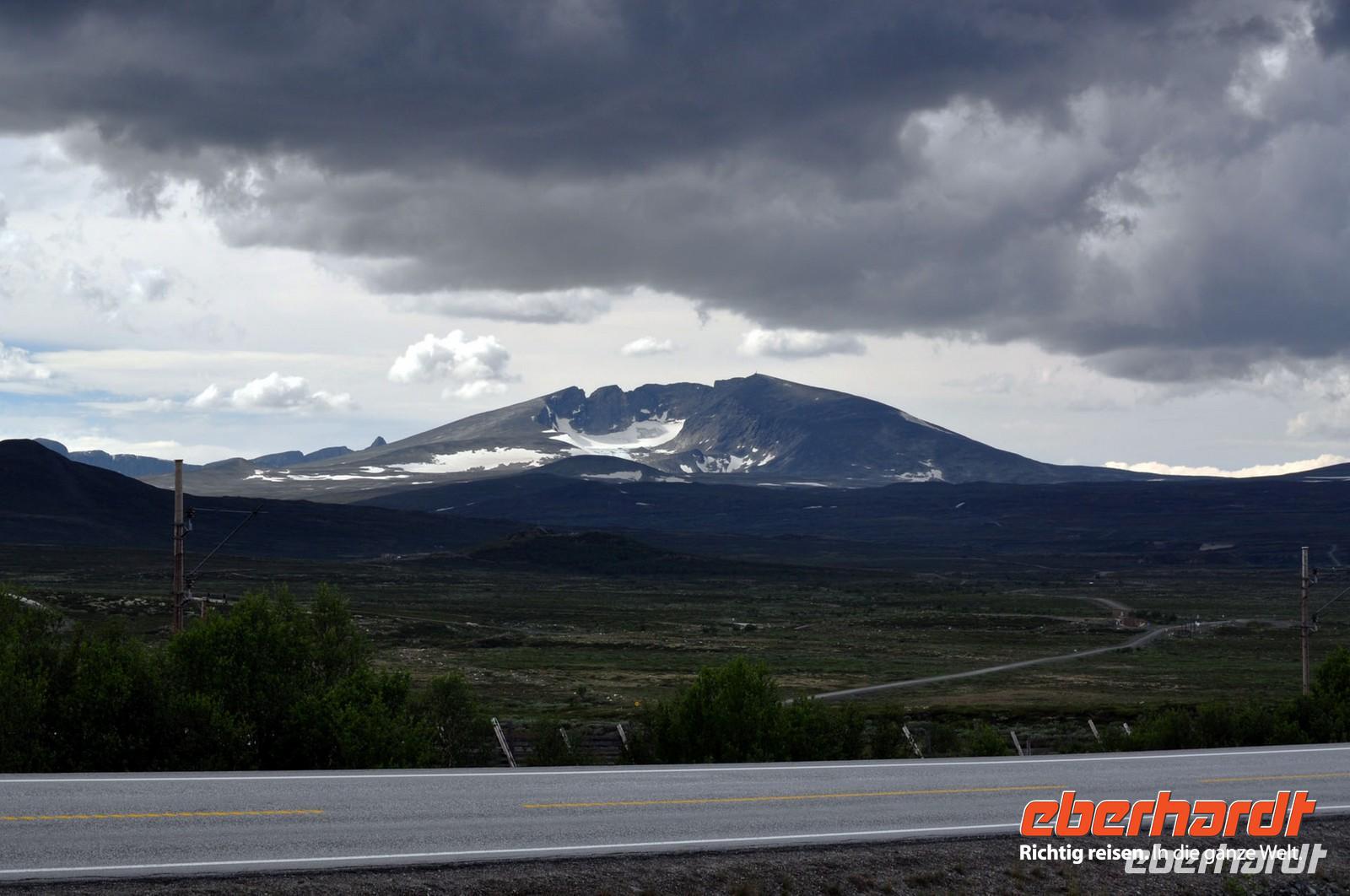 Am nächsten Fotopunkt werden wir mit einem wolkenfreien Blick auf die Snøhetta belohnt dem mit 2.286m höchstem Punkt im Dovrefjell - Sunddalsfjella - Nationalpark.