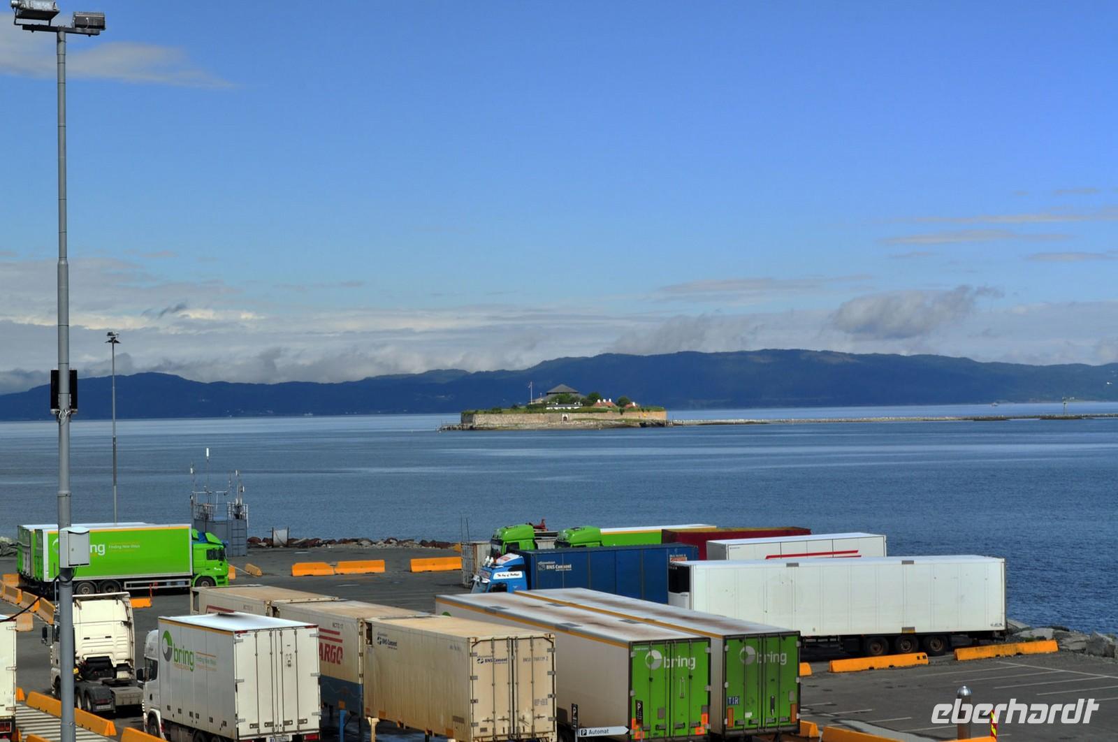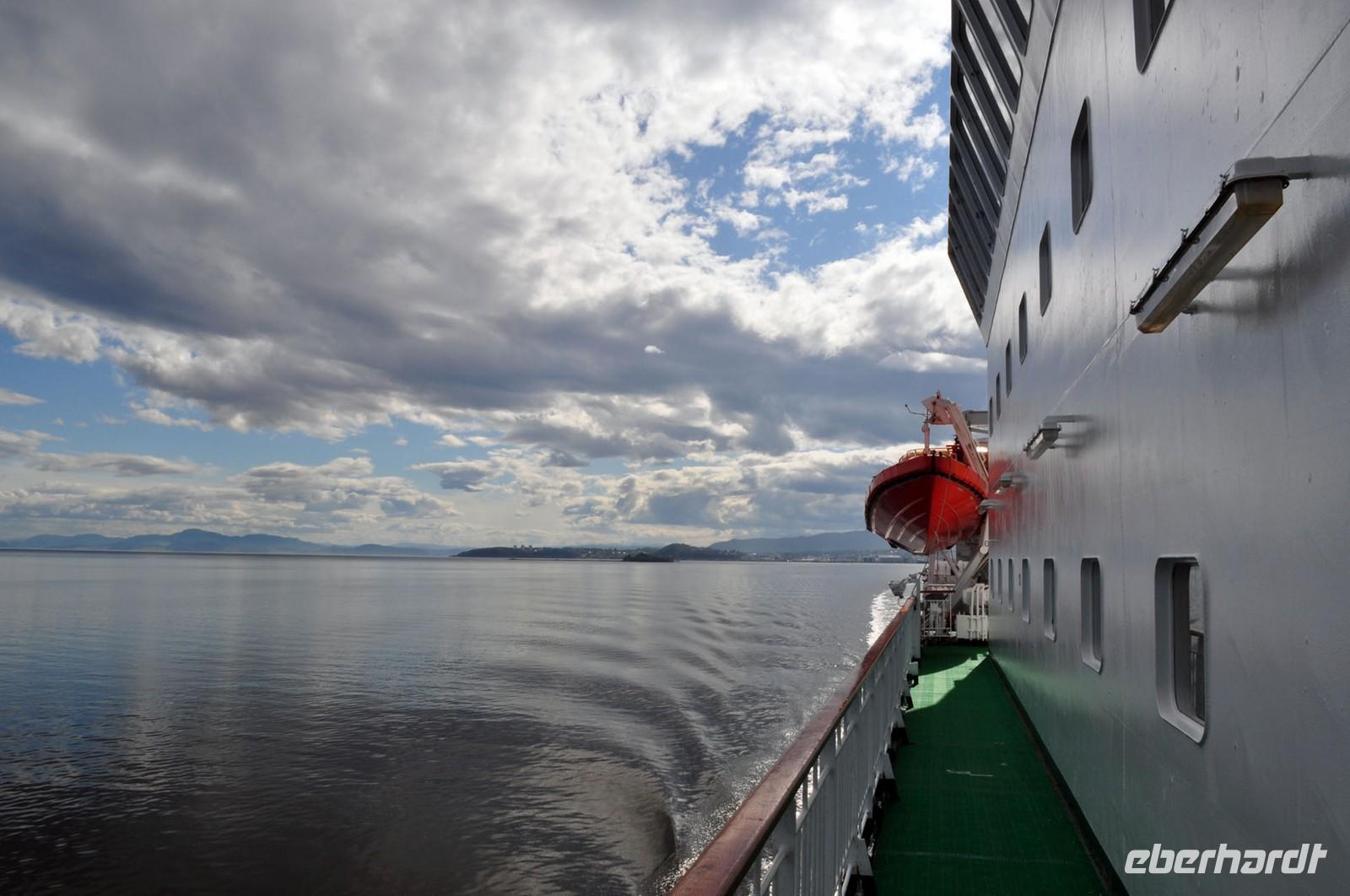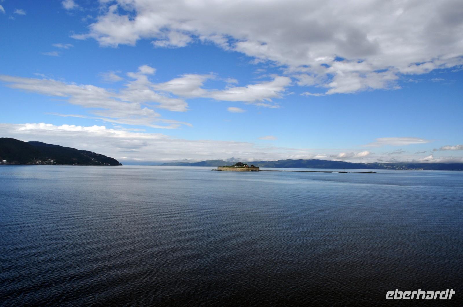 Kurz nach dem Ablegen passieren wir die im Trondheimfjord liegende Insel Munkholmen. Im Mittelalter Hinrichtungsplatz, später Kloster, dann Staatsgefängnis und im 2. Weltkrieg Luftabwehrstellung.
