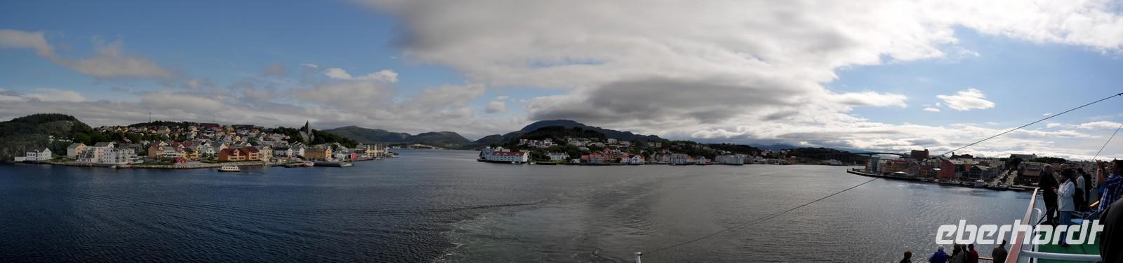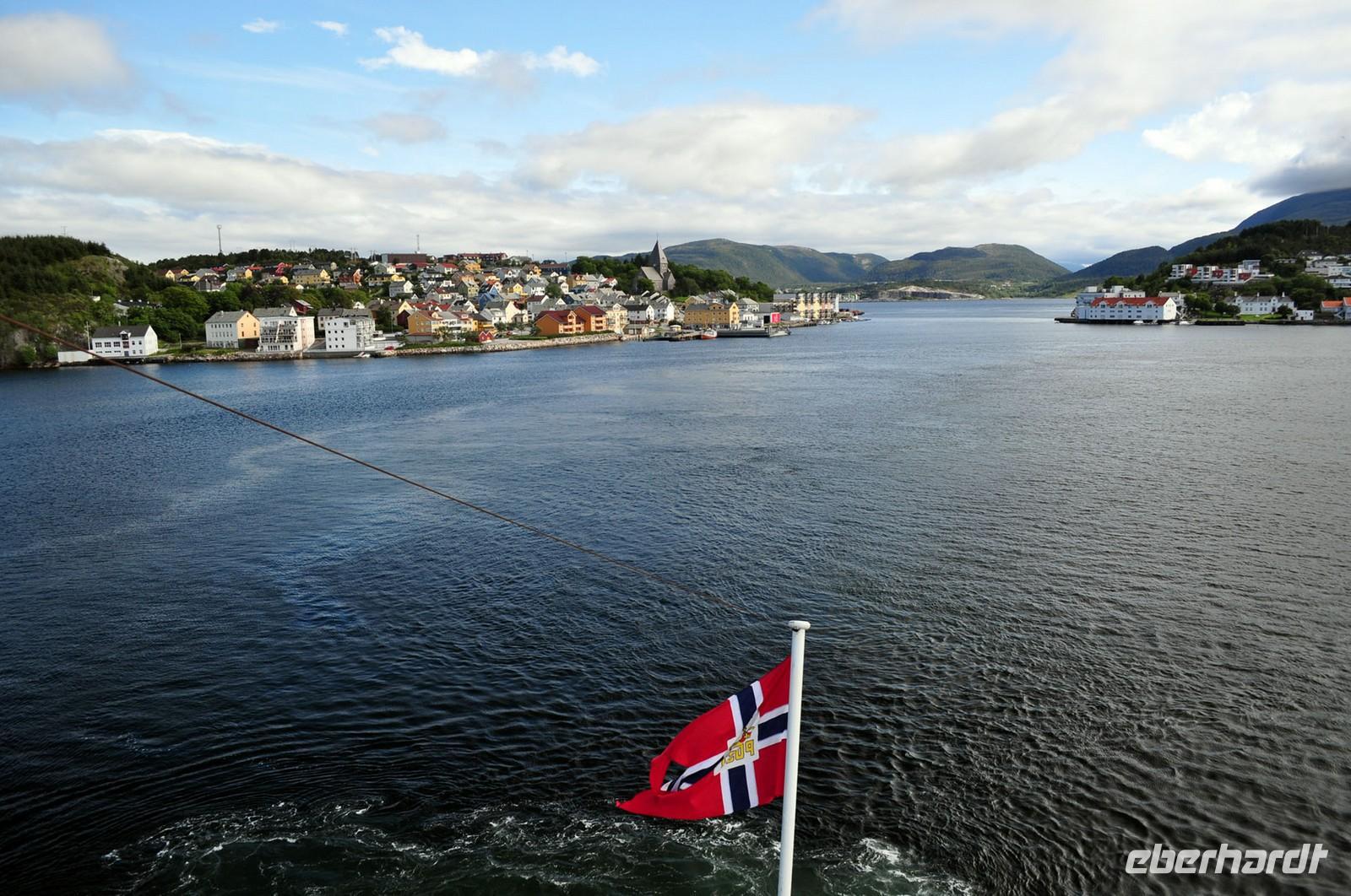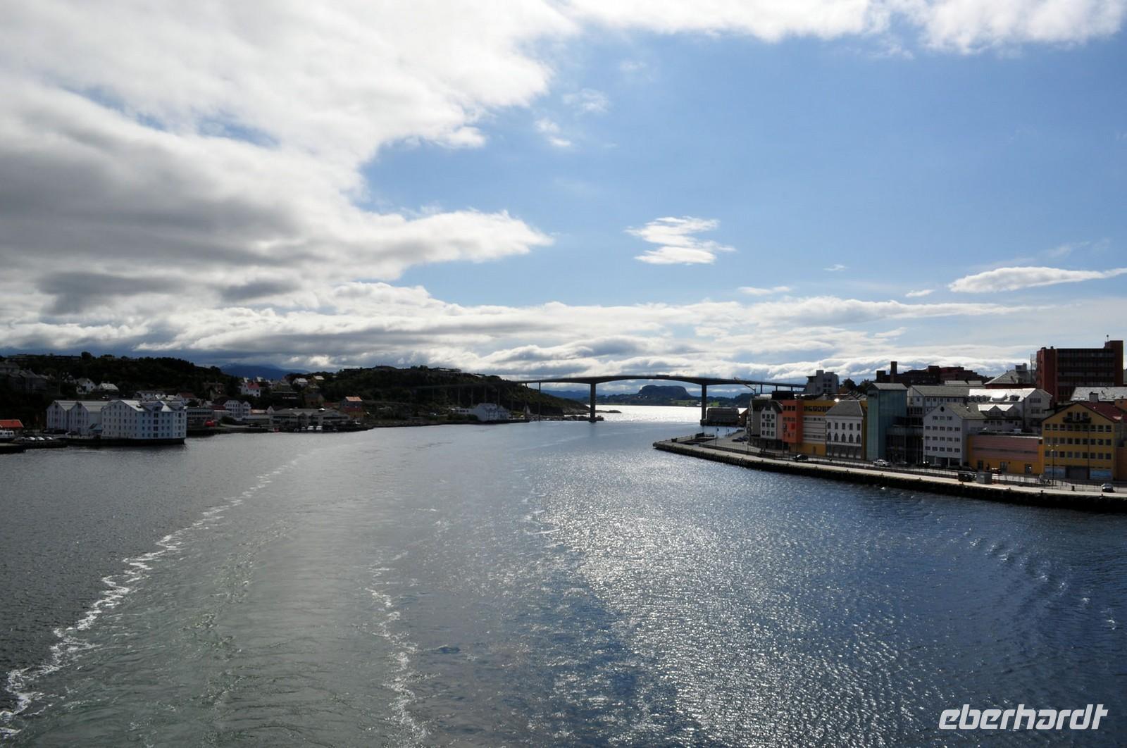 Am Nachmittag erreichten wir die auf drei Inseln verteilte Stadt Kristiansund. Früher ein wichtiges Zentrum des Kabeljaufischfangs und der damit verbundenen Stockfisch/Klippfischproduktion. Heute ist die Stadt eine wichtige Versorgungszentrale für den modernen Industriezweig Ölindustrie. Von hier starten die Versorgungsschiffe und die Hubschrauber mit den neuen Mannschaften hinaus zu den Ölplattformen in der Nordsee. Nur noch die alte Klippfischfrau, eine Bronzestatue am Hafen erinnert an die alten Zeiten des Fischfangs.
