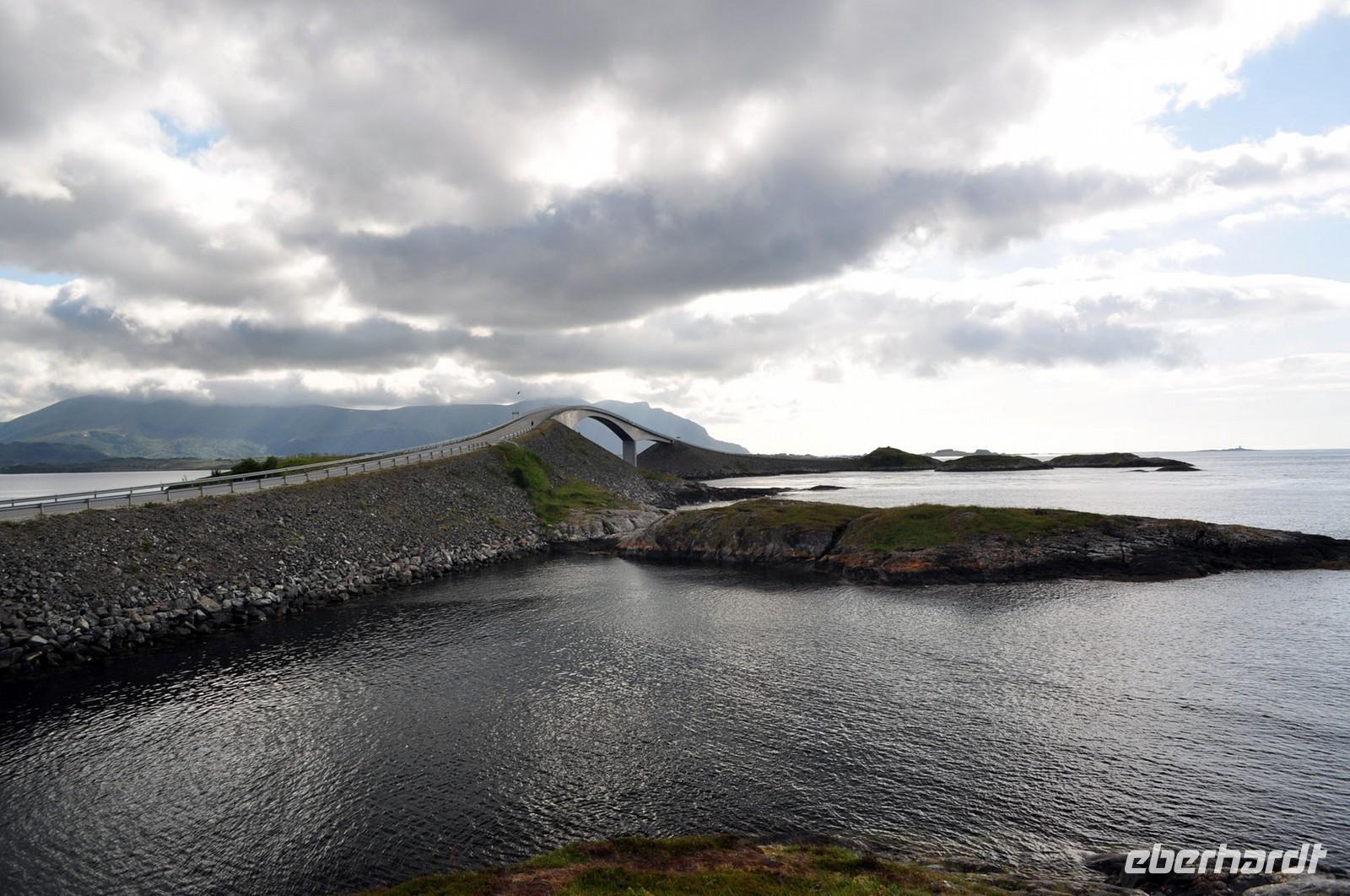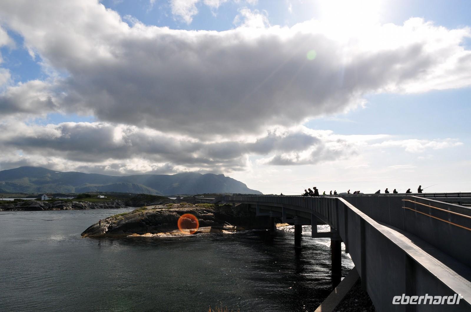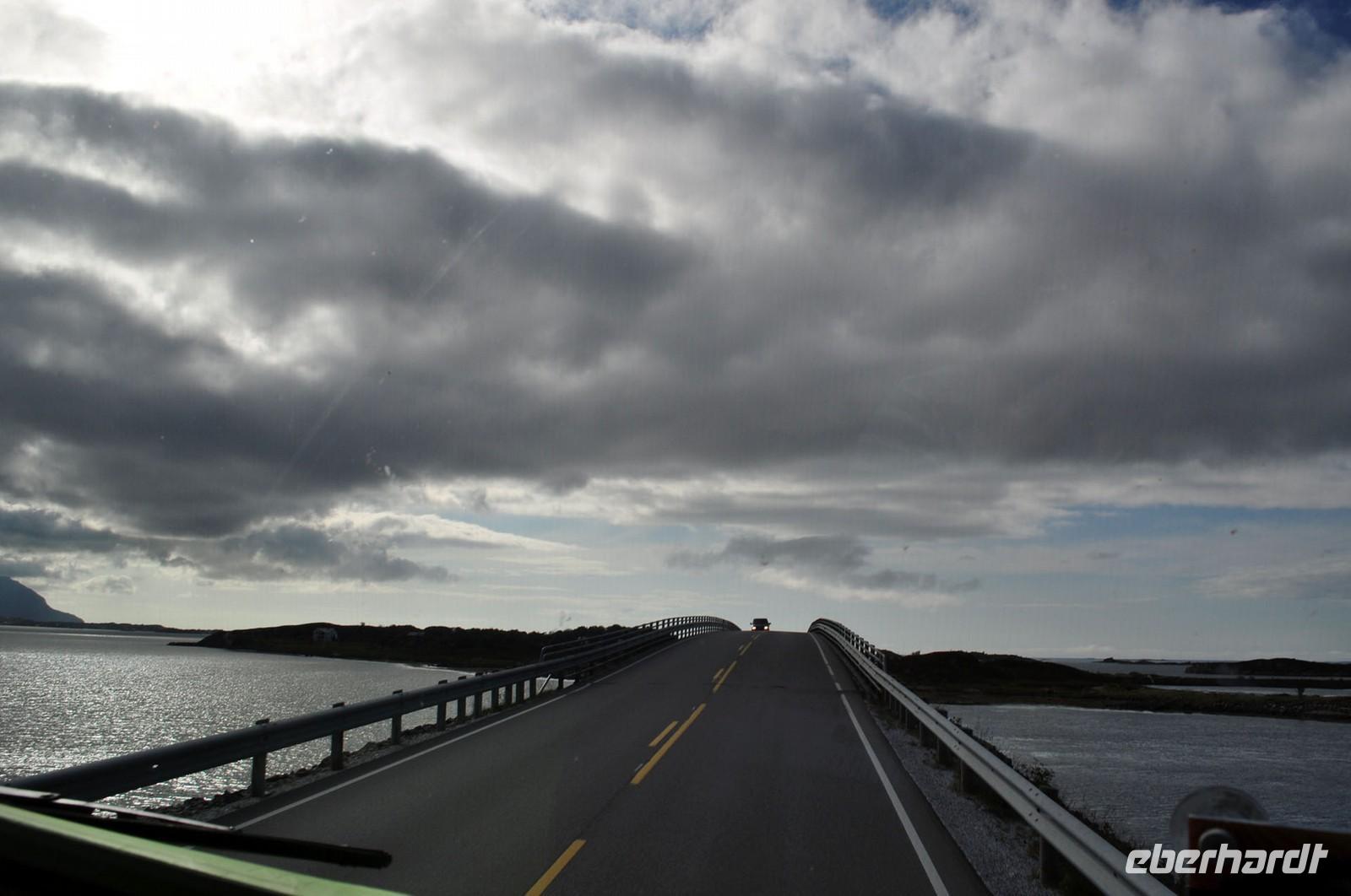 Unser Weg führt uns zu einem weiteren Höhepunkt, der bekannten Atlantikstrasse. Sie ist ein Abschnitt der Reichsstrasse 64 (kurz Rv 64) und genau genommen ein 8864 m langer Abschnitt. Durch die 8 Brücken über mehre kleinere Inseln mitten im Fjord ist sie zu einem Touristenmagnet geworden. Zu beachten sind hier auch viele Angler die hier in den gewaltigen Tidenströmen (Gezeiten) ihr Anglerglück versuchen. Auch wir hatten Glück, wir fanden hier Moltebeeren, auch wenn sie noch unreif waren und wir sie stehen ließen.