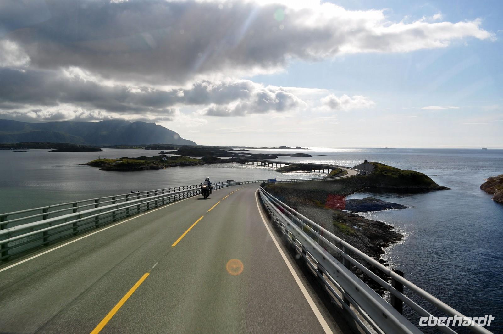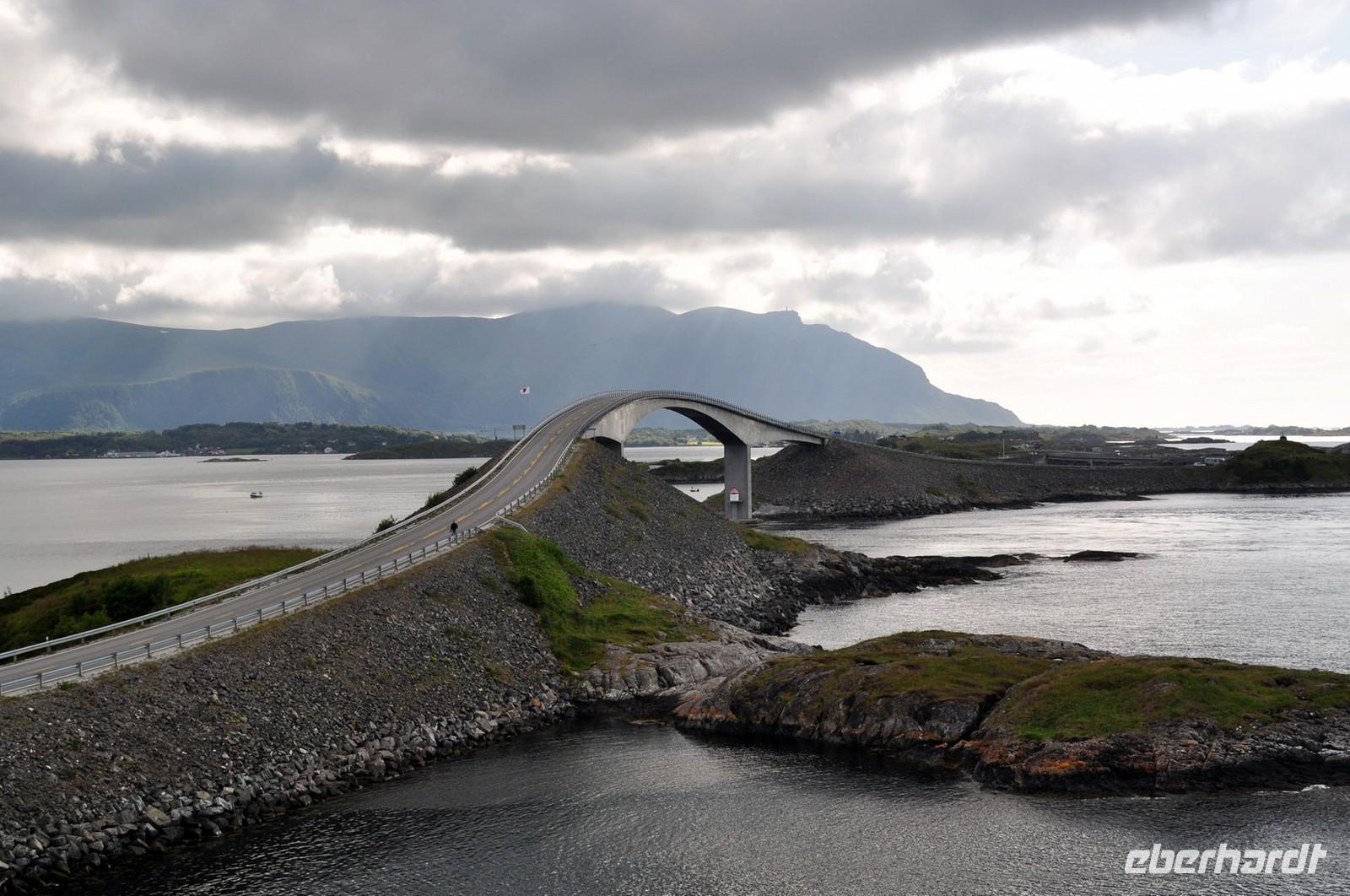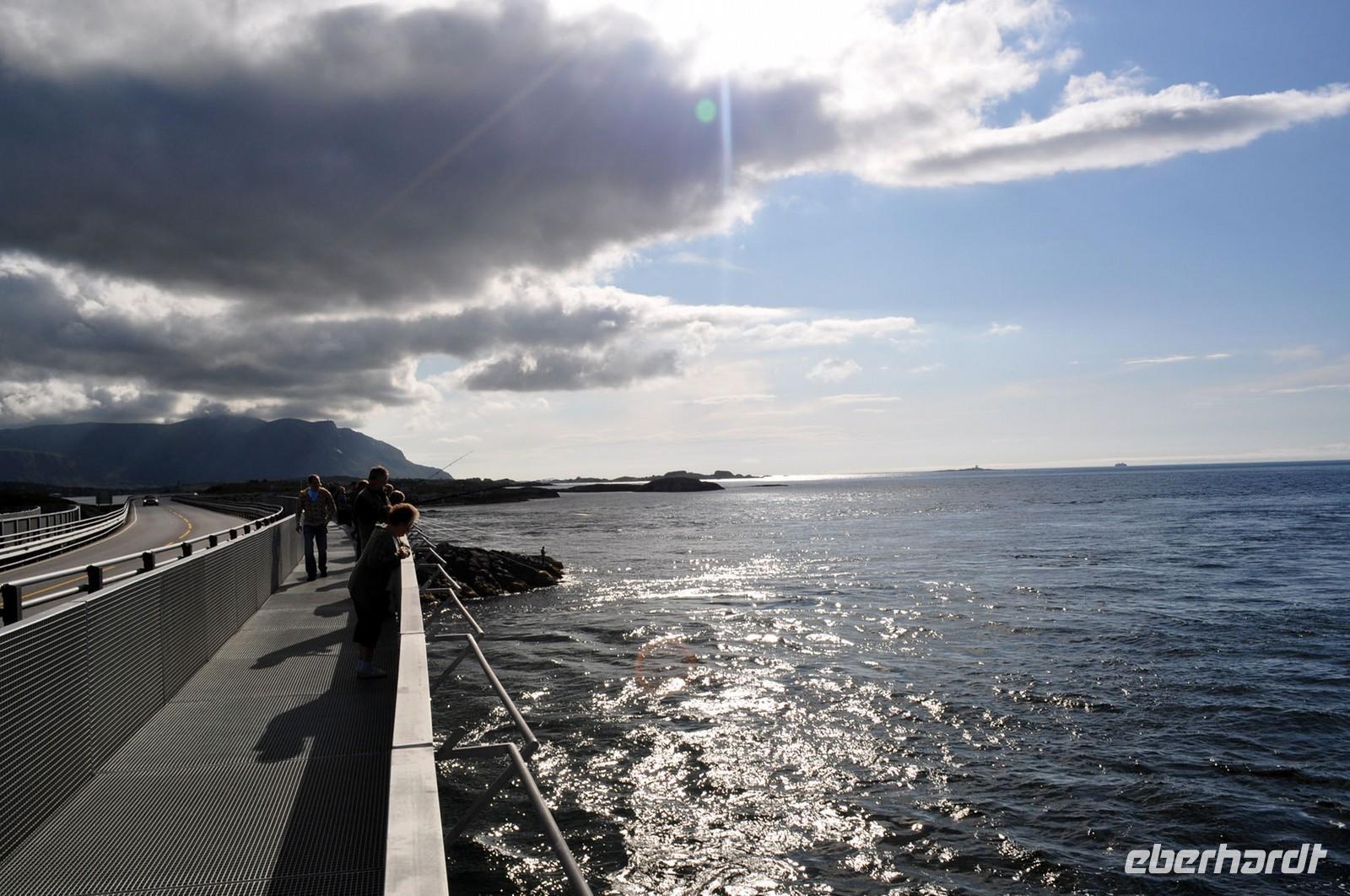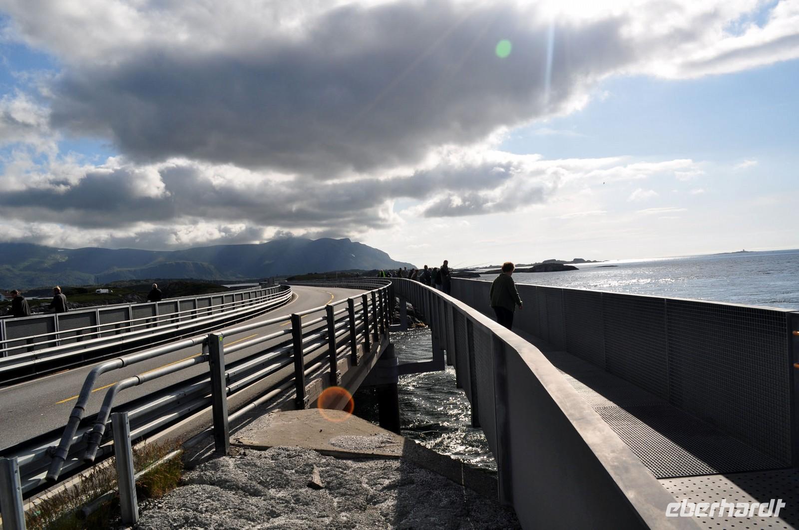 Unser Weg führt uns zu einem weiteren Höhepunkt, der bekannten Atlantikstrasse. Sie ist ein Abschnitt der Reichsstrasse 64 (kurz Rv 64) und genau genommen ein 8864 m langer Abschnitt. Durch die 8 Brücken über mehre kleinere Inseln mitten im Fjord ist sie zu einem Touristenmagnet geworden. Zu beachten sind hier auch viele Angler die hier in den gewaltigen Tidenströmen (Gezeiten) ihr Anglerglück versuchen. Auch wir hatten Glück, wir fanden hier Moltebeeren, auch wenn sie noch unreif waren und wir sie stehen ließen.
