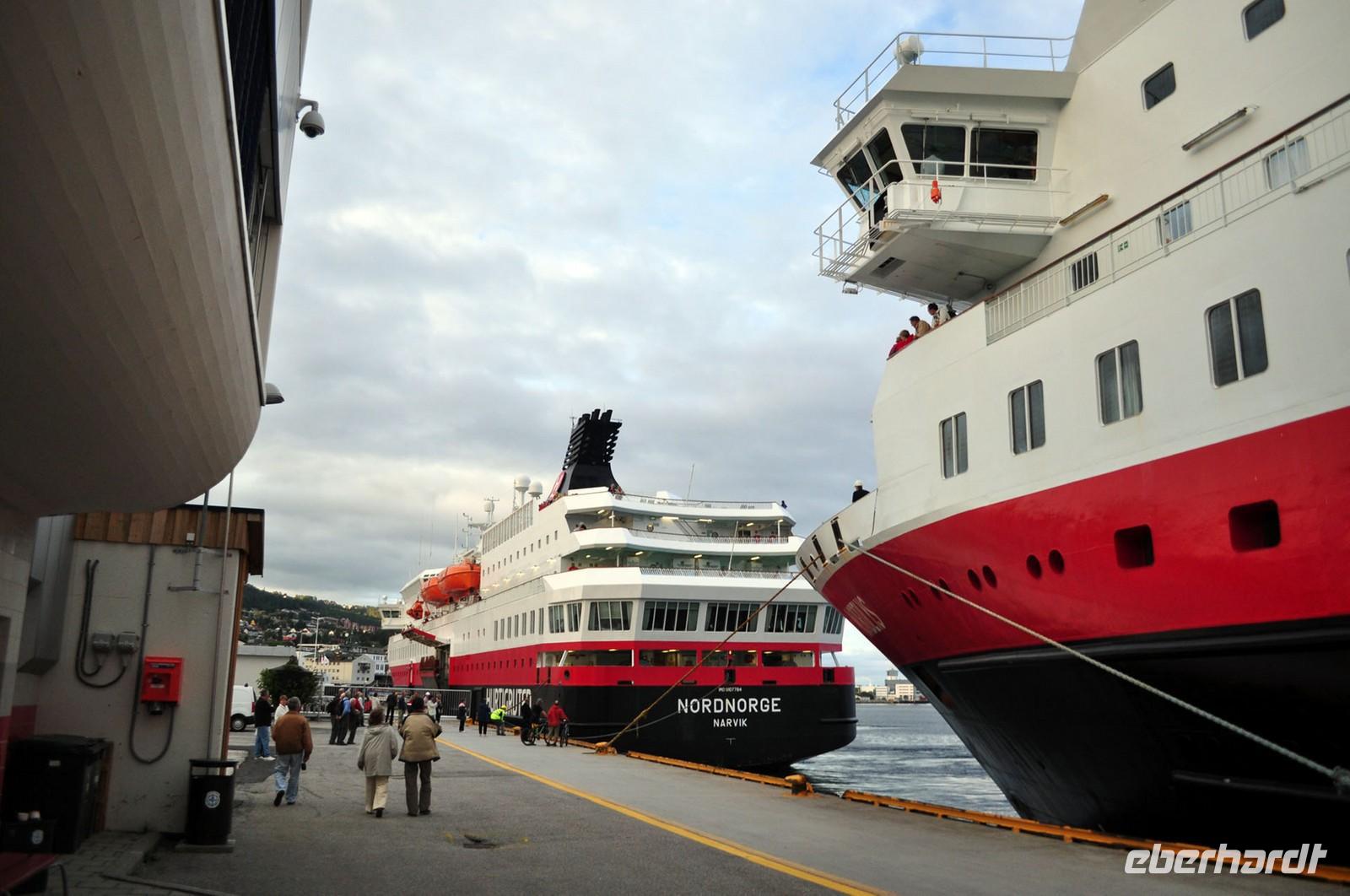Am frühen Abend trafen wir in Molde ein. Natürlich in Geh- und zum Teil Sichtweite zum Hurtigrutenkai, wo sich noch einmal ein Schiffstreffen ereignen sollte.