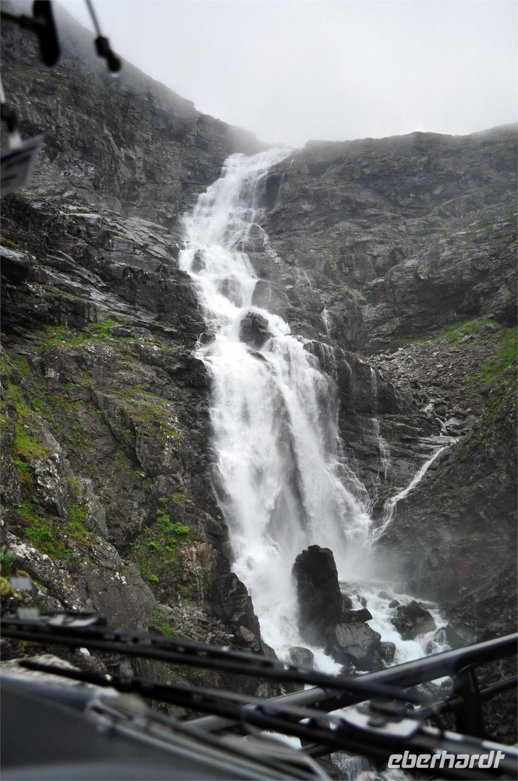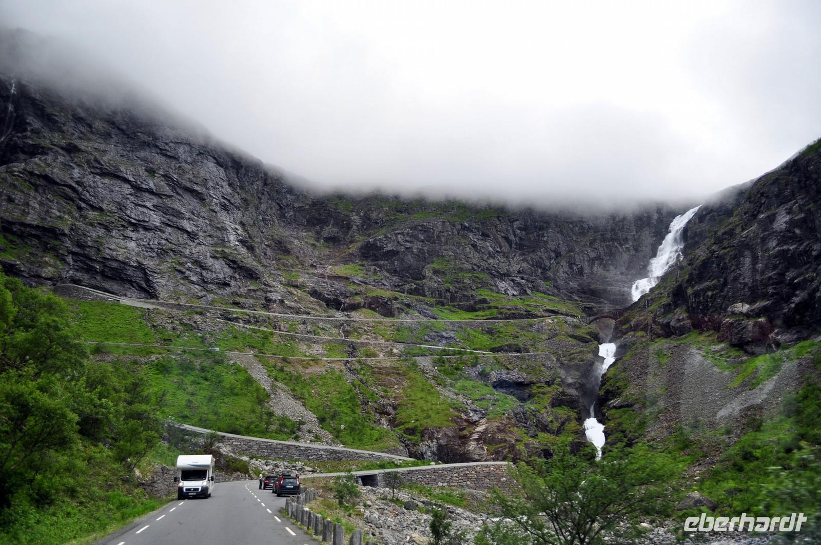 Gegen Mittag unternahmen wir einen Abstecher zur überwältigenden Trollwand. Eine nahezu senkrechte über 1000m hohe Felswand.