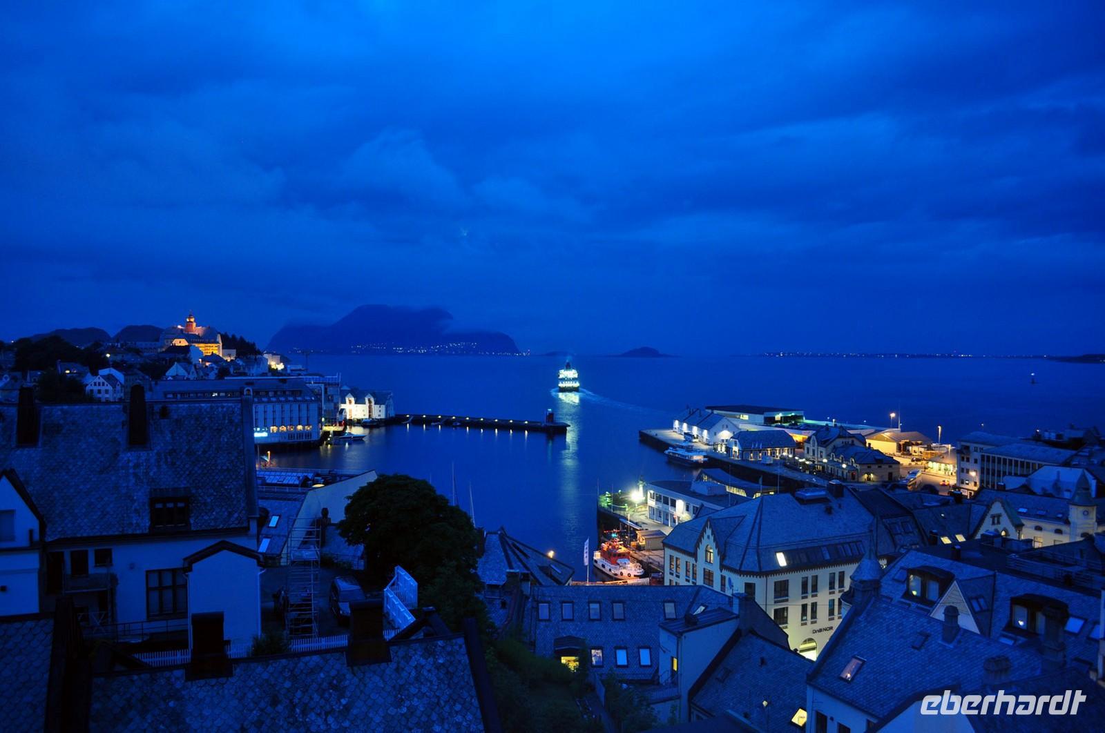 Am späten Nachmittag folgen wir dem Fjord bis in die Stadt des Jugendstils genannt Ålesund. Nach dem Abendessen biete sich die Möglichkeit über Treppen einen Abendspaziergang auf den Hausberg zu steigen und vielleicht die Ankunft der Hurtigruten zu beobachten. Am heutigen Tag die MS Polarlys und MS Richard With.