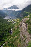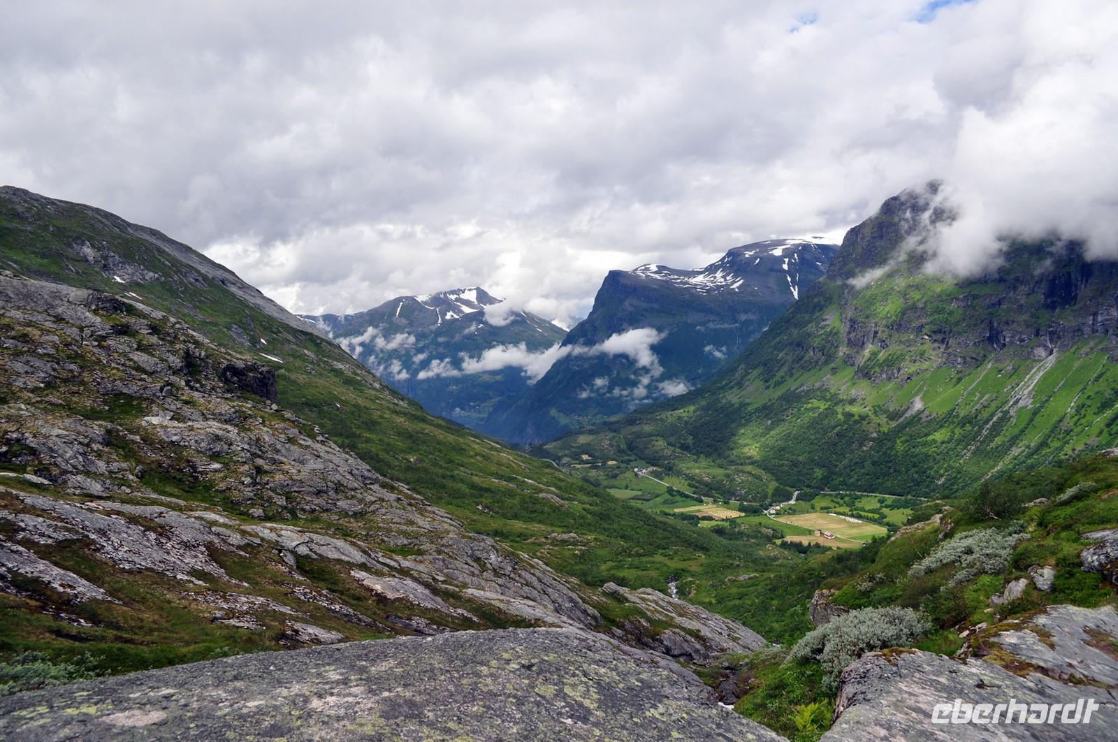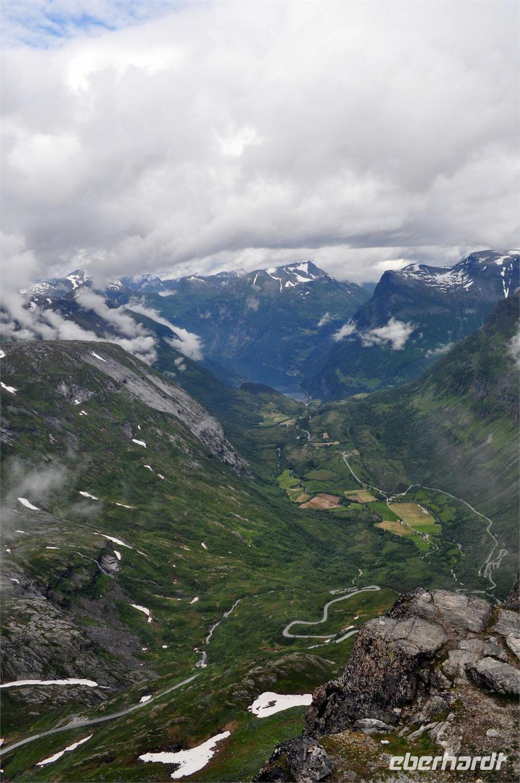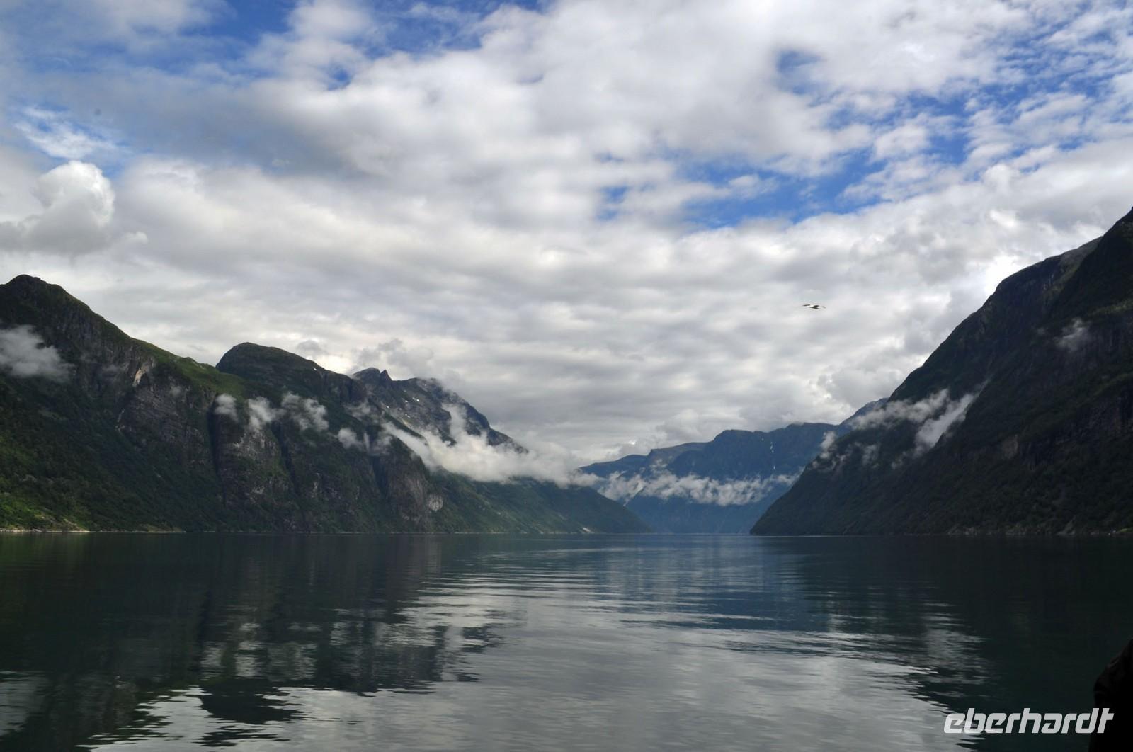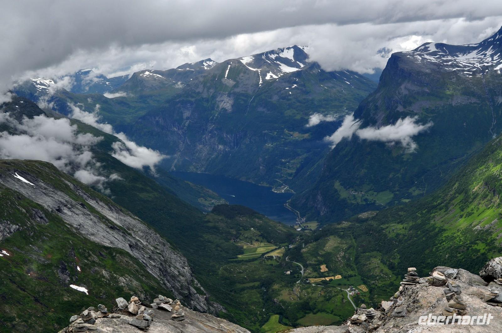 Bei mäßigen Wetter starten wir zu einem weiteren Höhepunkt unserer Reise dem Geiranger Fjord. Die Fjorde Nebel verhangen. Auch an einem Fotopunkt oberhalb von Hellesylt dem Ort am Eingang zum Fjord. Aber auch in diesem Fall, riss der Himmel plötzlich auf und gab den Blick frei auf den berühmtesten Fjord Norwegens.