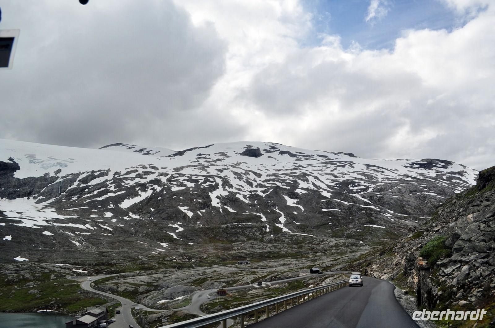 Als Zugabe von unserem Chauffeur und mir dem RL gab es im Namen von Eberhardt-Travel als WOW die Auffahrt zur Dalsnibba, ein spektakulärer Gipfel 1.500m über dem Geirangerfjord.