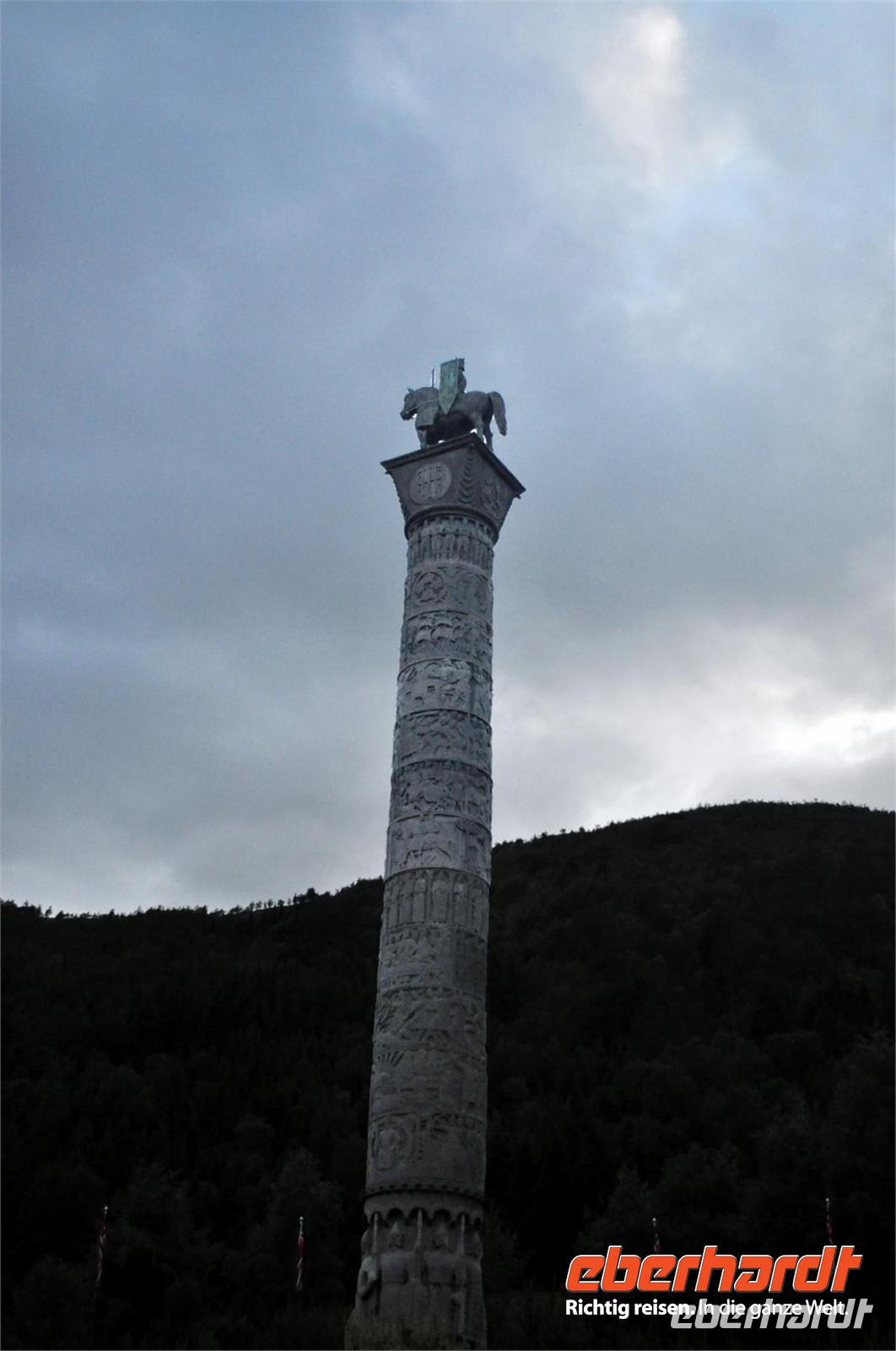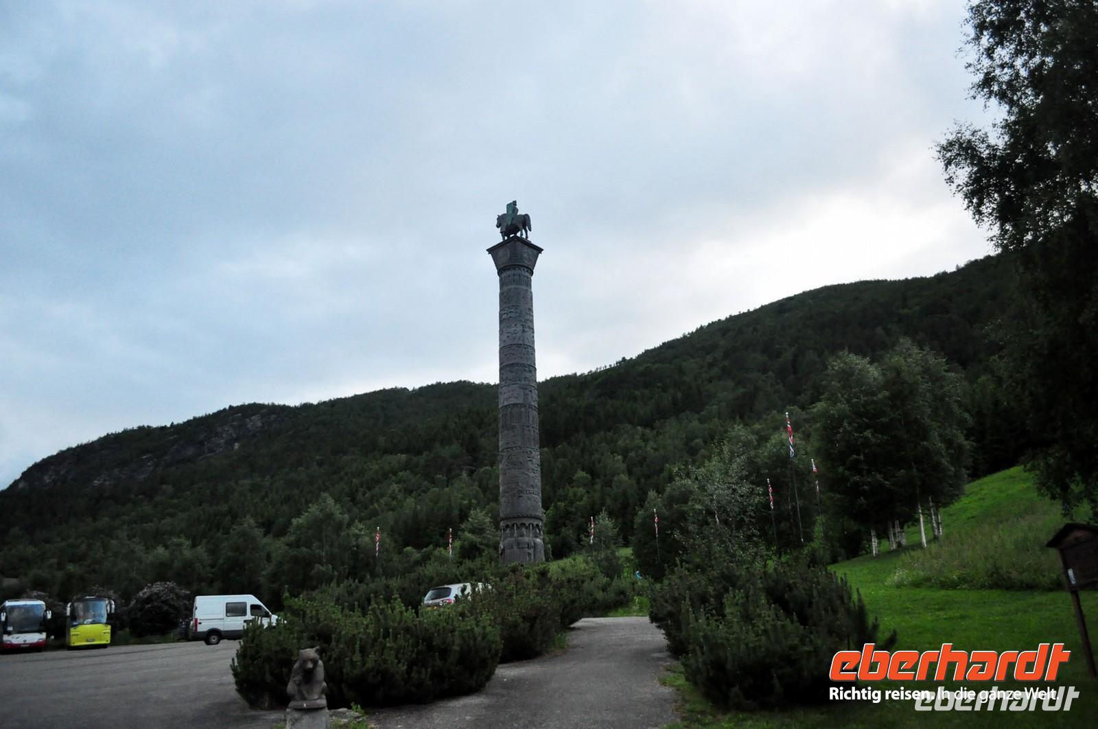 Gekrönt wird das Hotel von der 34m hohen Sagasäule, sie stellt die gesamte Geschichte Norwegens dar und sollte ursprünglich einmal das Nationalmonument Norwegens in der Hauptstadt Oslo werden. Durch den Krieg kam es nie dazu. Zufällig entdeckte ein Familienmitglied dieser Hotelfamilie diese Säule. Man ließ die unvollendete Säule fertigstellen und holte sie unter großen Aufwand zum Hotel, wo sie heute noch steht und zu bewundern ist.