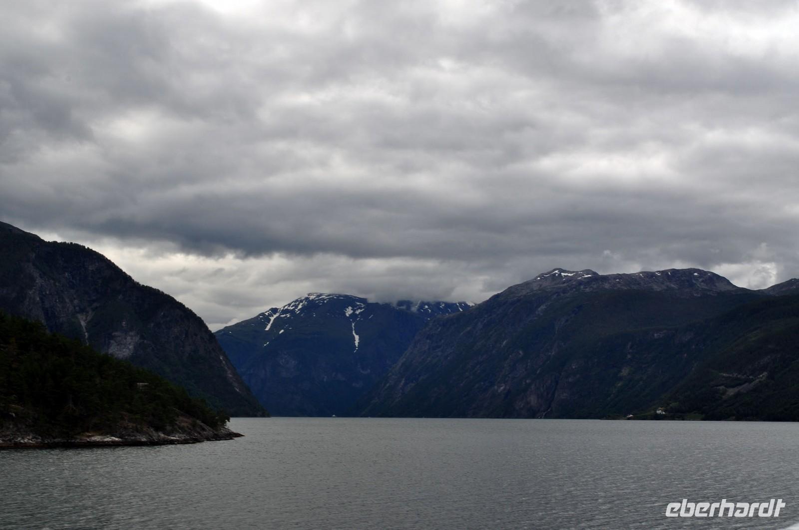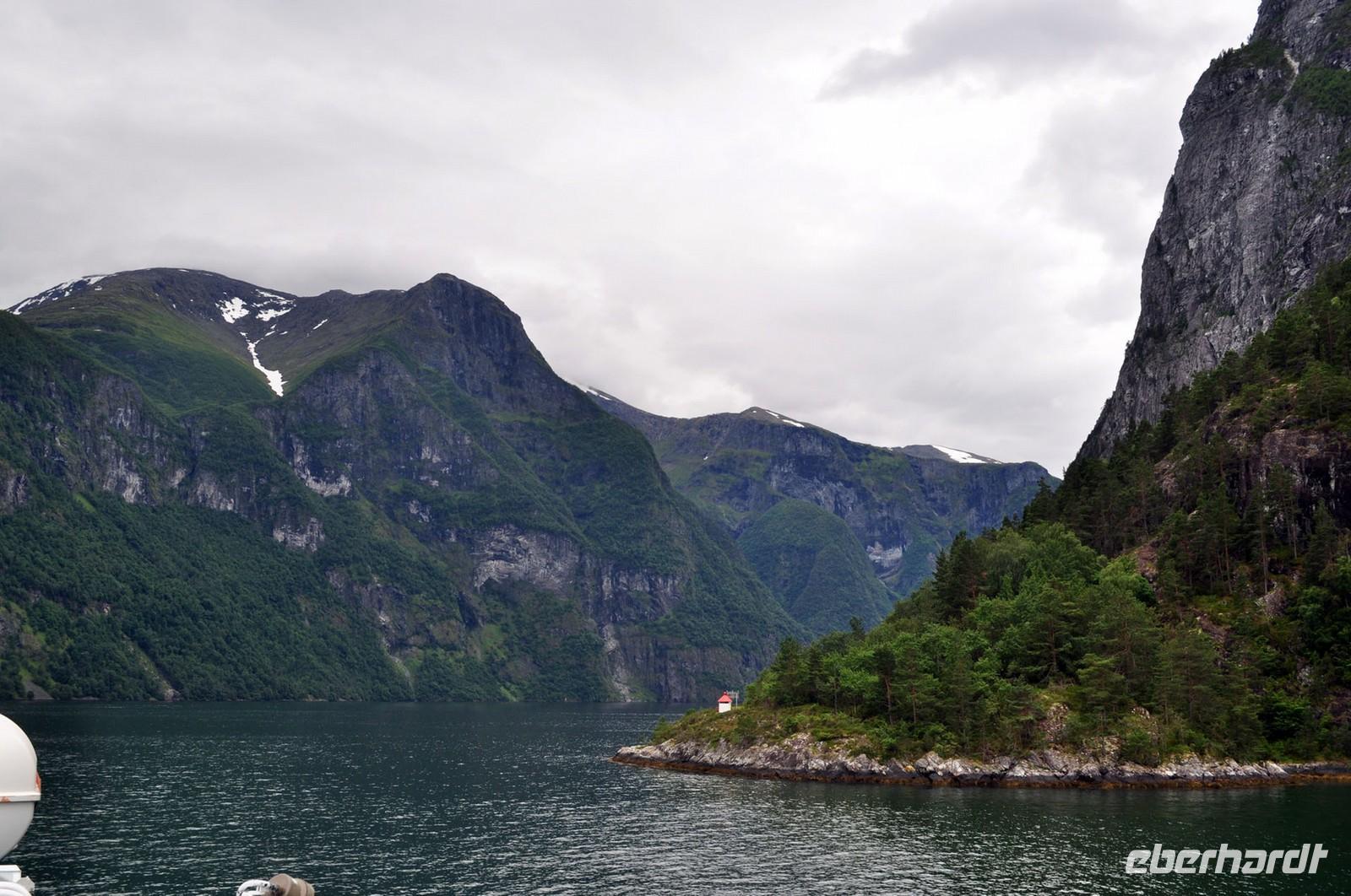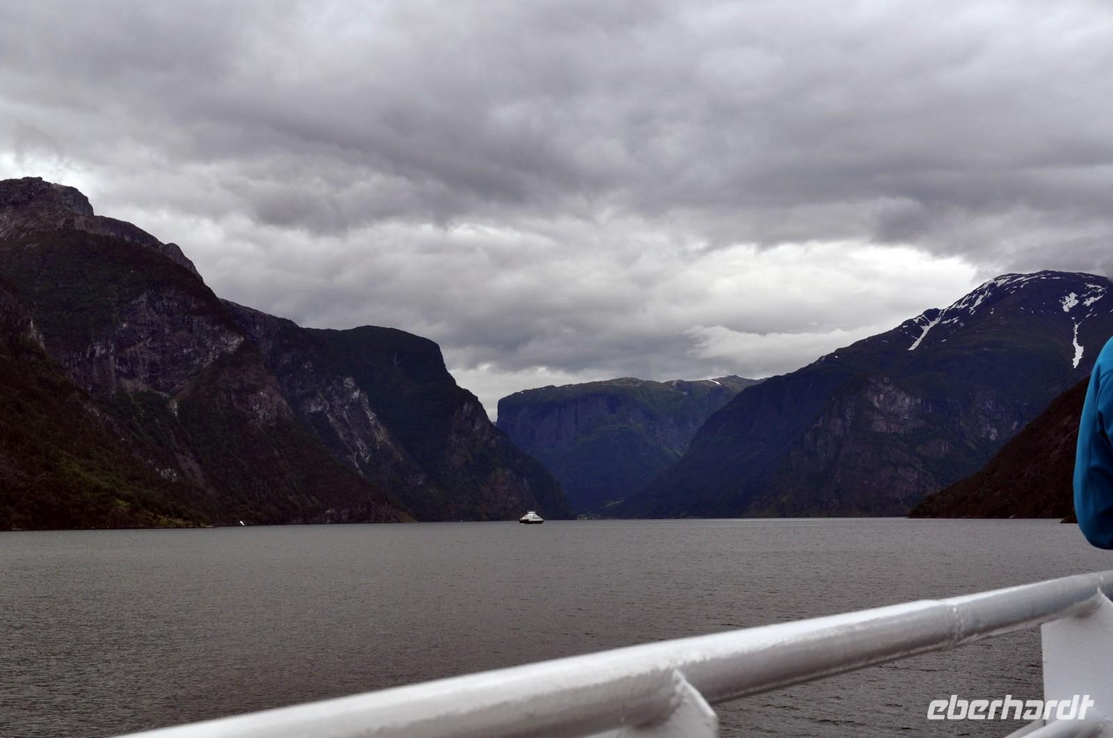 In Kaupanger nutzen wir das Schiff um eine mehrstündige Kreuzfahrt durch die berühmtesten Ecken des Fjords zu unternehmen. Unser Weg führt uns vorbei an spektakulären Wasserfällen, durch den Aurlandsfjord (bekannt durch die berühmte Flåmbahn) (erlebbar bei einer anderen Eberhardt Norwegen Reise). bis nach Gudvangen am Ende des Nærøyfjord.