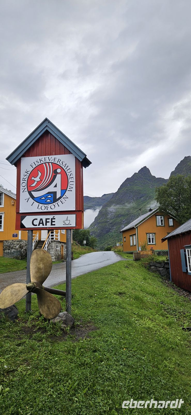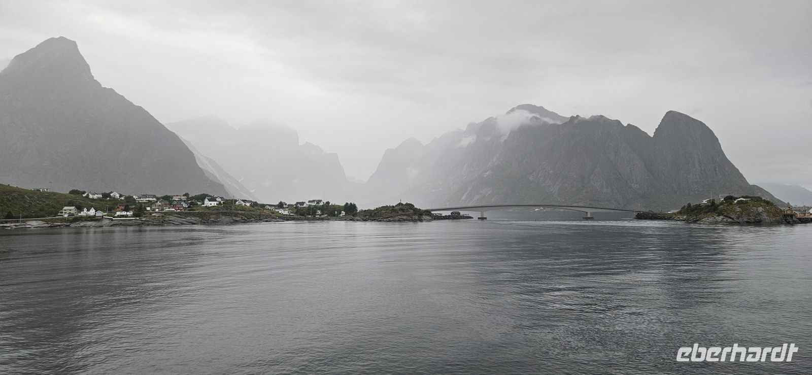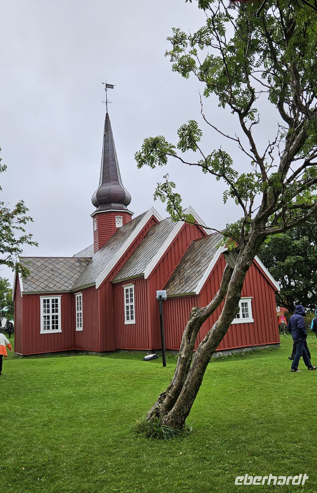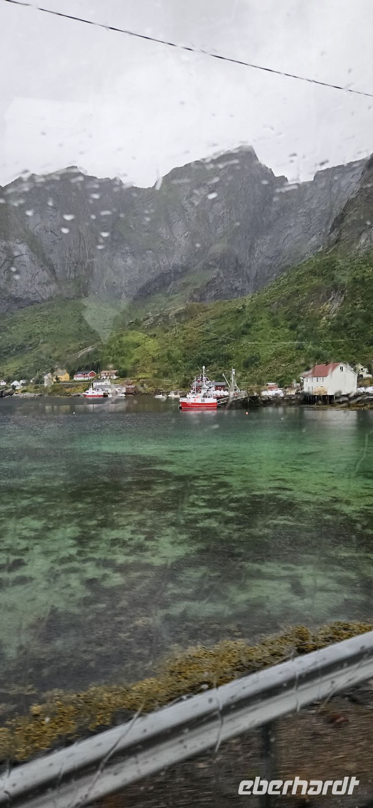 Während des Frühstücks erreichten wir den Hafen von Reine auf den Lofoten. Unsere Gruppe nahm geschlossen am Ausflug Lofoten teil. Unser Bus wurde von Jule als Reiseleiterin begleitet. Als studierte Geologin gab sie uns viele Informationen zur Geologie der Lofoten, zum Lofotenfischfang und zum Leben der Bevölkerung. Die vielen Inseln sind mit Brücken verbunden und die Strassen führen zunehmend durch Tunnel und so ist man sicherer unterwegs. Über die legendäre Strasse E10, auch König Olavs Weg genannt, fuhren wir nach A in das letzte Dorf der Lofoten. Dort nahmen uns Museumsführer in Empfang, bebleiteten uns in den Ort und zeigten uns alles Sehenswerte. Der kleine Ort war und ist vom Fischfang geprägt und so kann man noch alte Boote, Werkzeuge, Fischerhütten und vieles mehr besichtigen. In der alten Bäckerei, die einst die Fischer versorgte, gibt es heute die besten Zimtschnecken und viele andere Leckereien. Mit dem Bus fuhren wir dann zurück, vorbei an einer Lachstreppe und vorbei an Reine nach Ramberg. Dort besuchten wir eine Kirche und in Ramberg machten wir unsere Mittagspause. Es gab eine leckere Fischsuppe und einen Nachtisch. Das Ramberg Resort liegt an einem wunderschönen Sandstrand und bei schönem Wetter hätte man vielleicht ein Bad im Nordmeer nehmen können. Leider regnete es und so stand diese Option nicht wirklich. So fuhren wir zurück zum Schiff. Am Nachmittag trafen wir uns wieder bei Leo vom Expeditionsteam, sahen nochmals die Polarkreis Taufe im Film und erfuhren alles Wichtige zu unserem Aufenthalt in Tromsö. Unser Abend Menue war wieder ein besonderer Gaumenschmaus und dann ließen wir den Abend auf Deck 8/9 ausklingen.