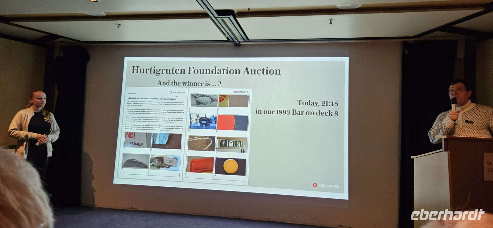 Am späten Abend wurde dann das Bilderrätsel aufgelöst und die Gewinner bekannt gegeben und danach begann die Versteigerung zugunsten der Hurtigruten Foundation.