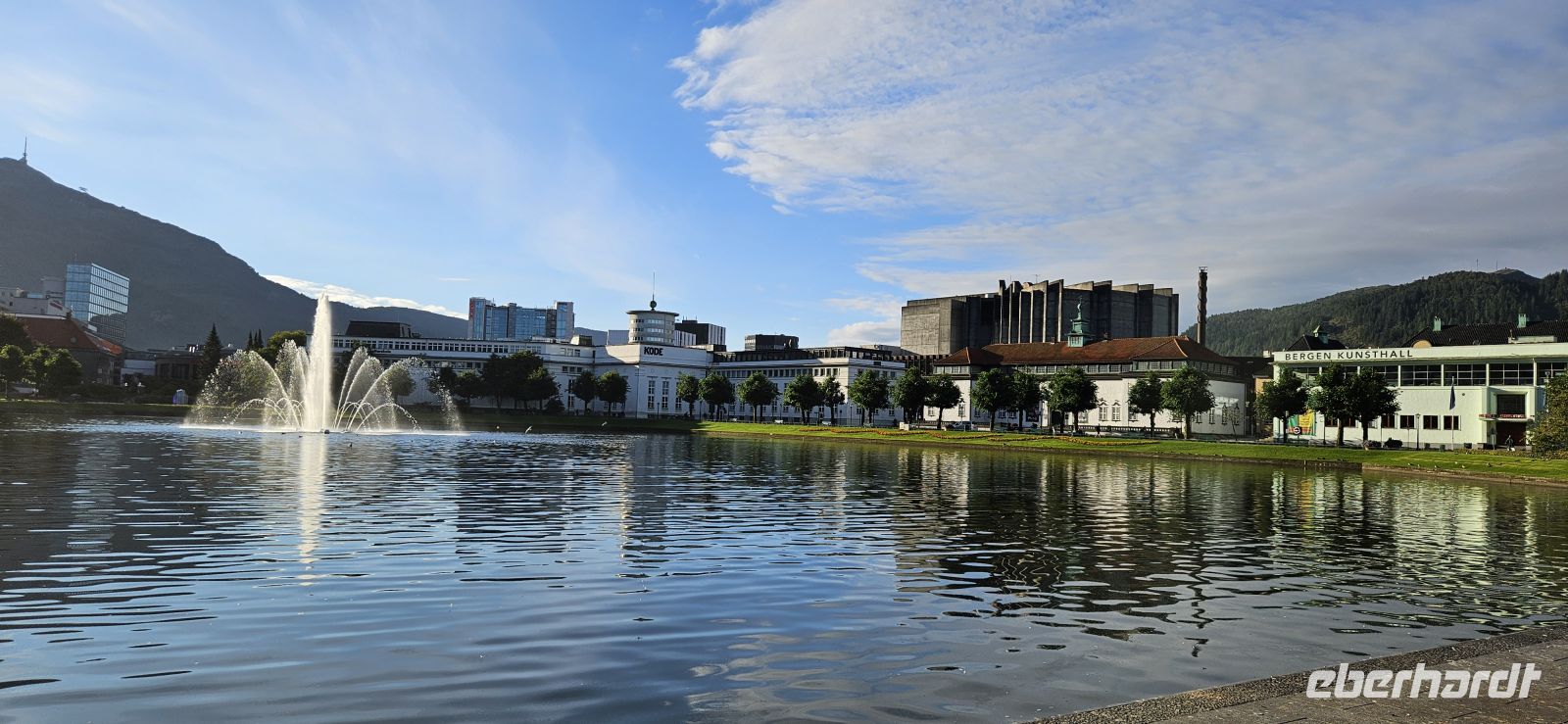Das Frühstück im Hotel war grandios und sehr vielfältig. Gegen 8.40 Uhr holte uns ein Bus am Hotel ab und brachte uns in die Innenstadt von Bergen, wo wir bereits von unserem Stadtführer erwartet wurden. Zu Fuss spazierten wir vorbei am künstlichen See und dem neuen Rathaus, durch ein wunderschön erhaltenes Holzhaus Viertel. Ein kleiner Abstecher führte zum ehemaligen Lebra Krankenhaus mit eigener Kirche.