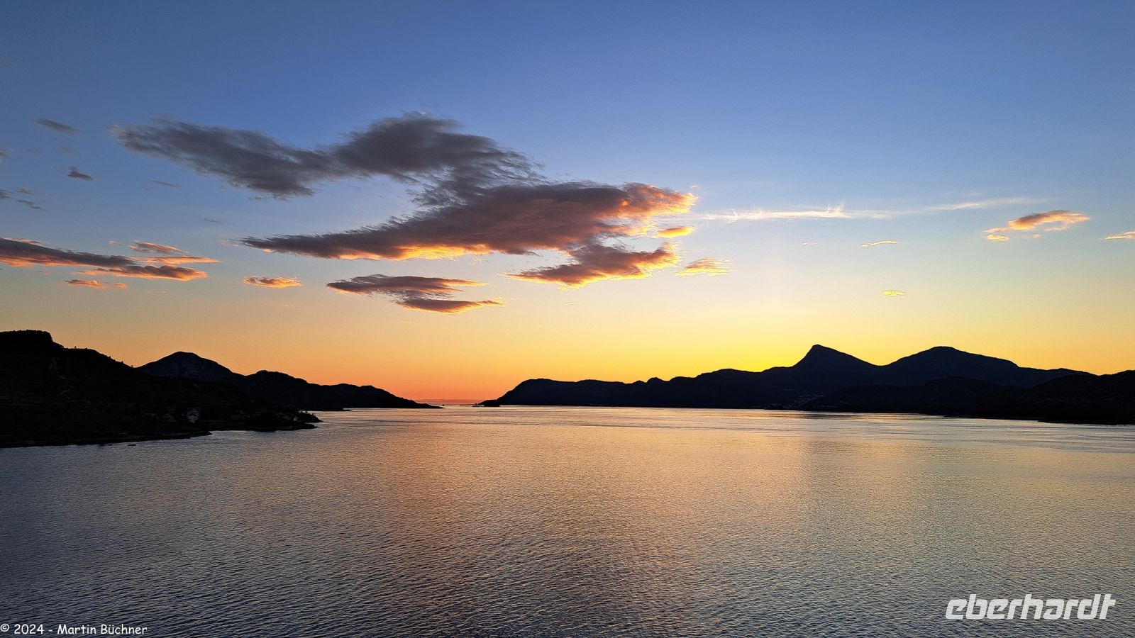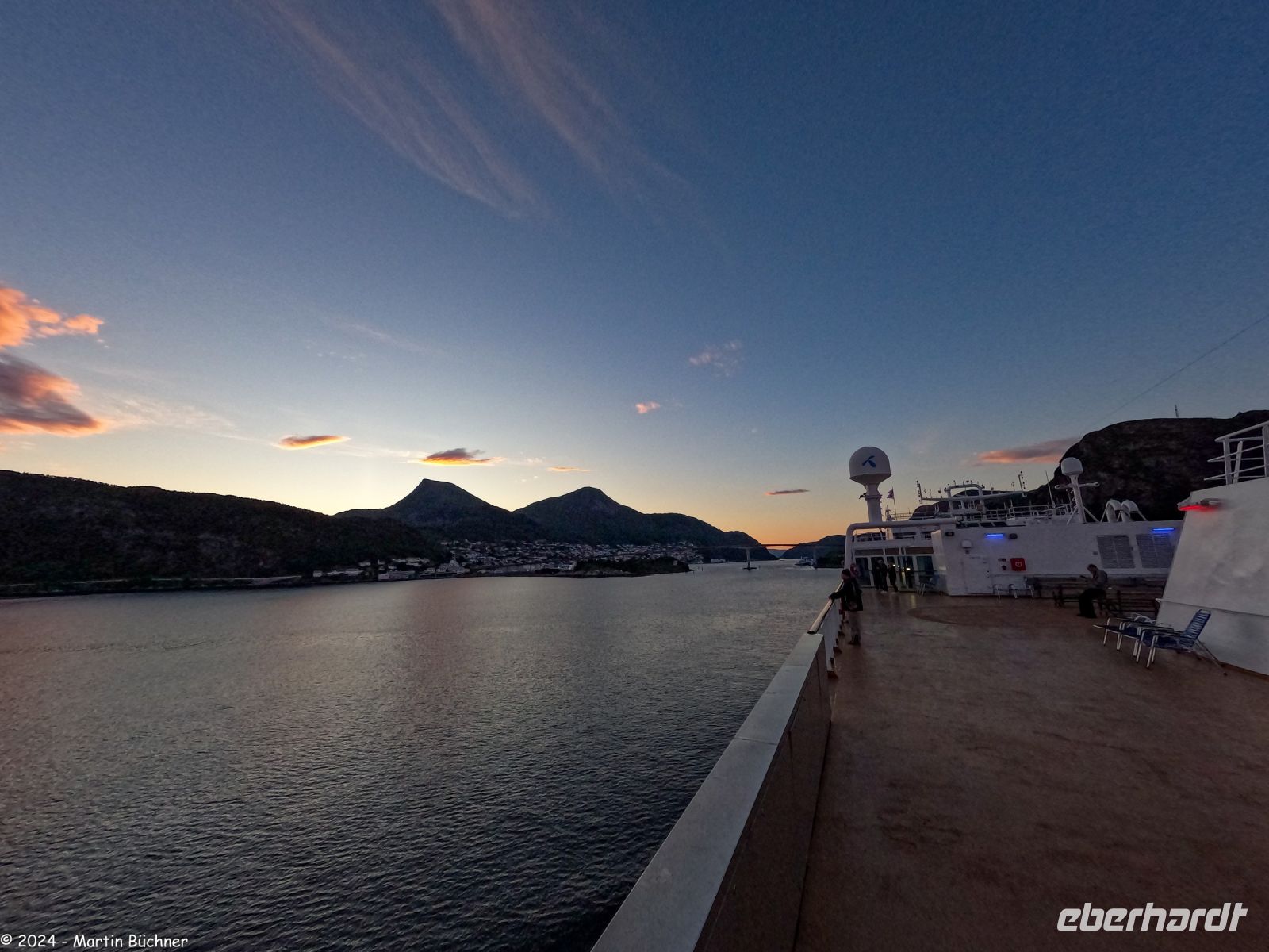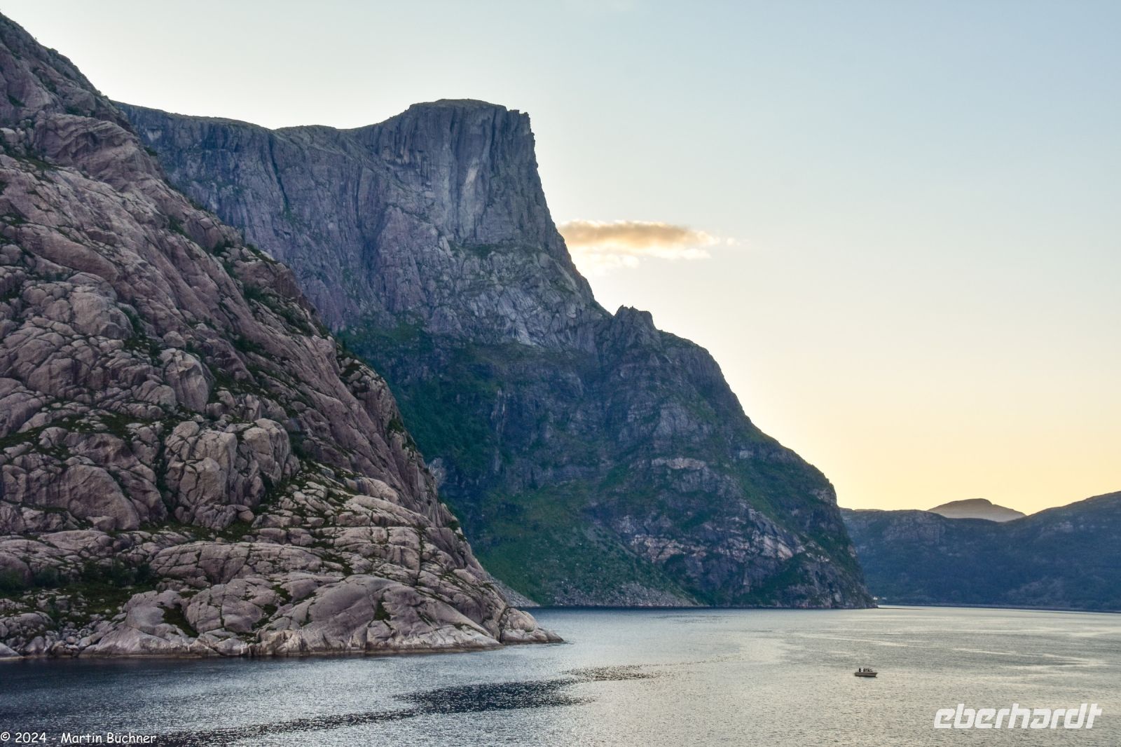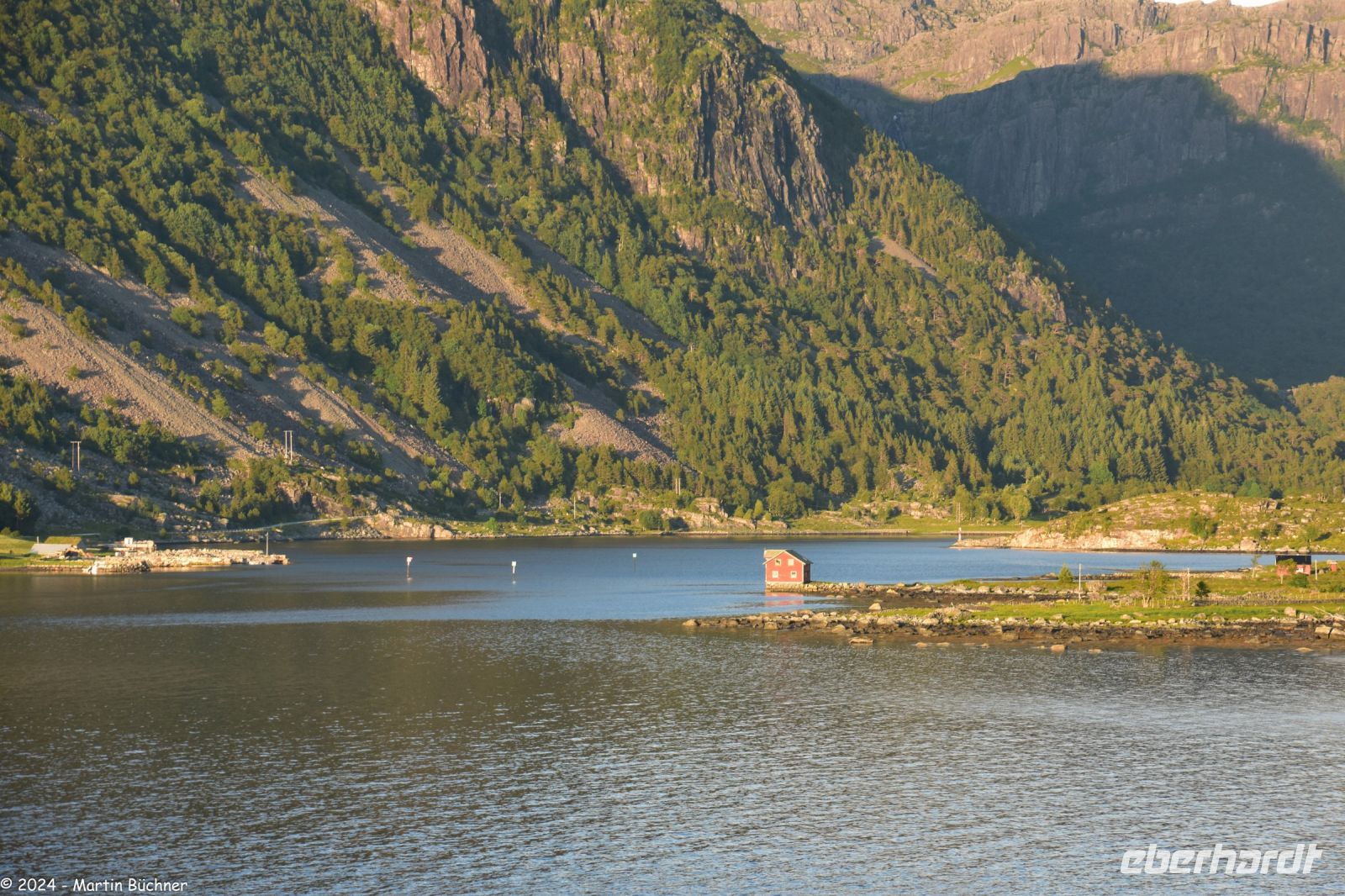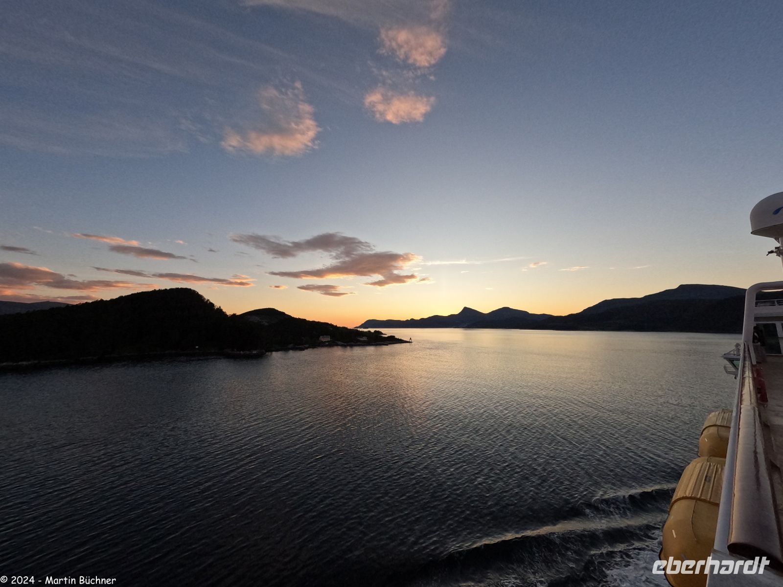 Auf der regulären Postschiff-Strecke wird die folgende Strecke nachts befahren und ist selten bei Tageslicht befahren. Sehr Schade wie sich schnell zeigt, denn auch hier werden schon echte Highlights geboten.