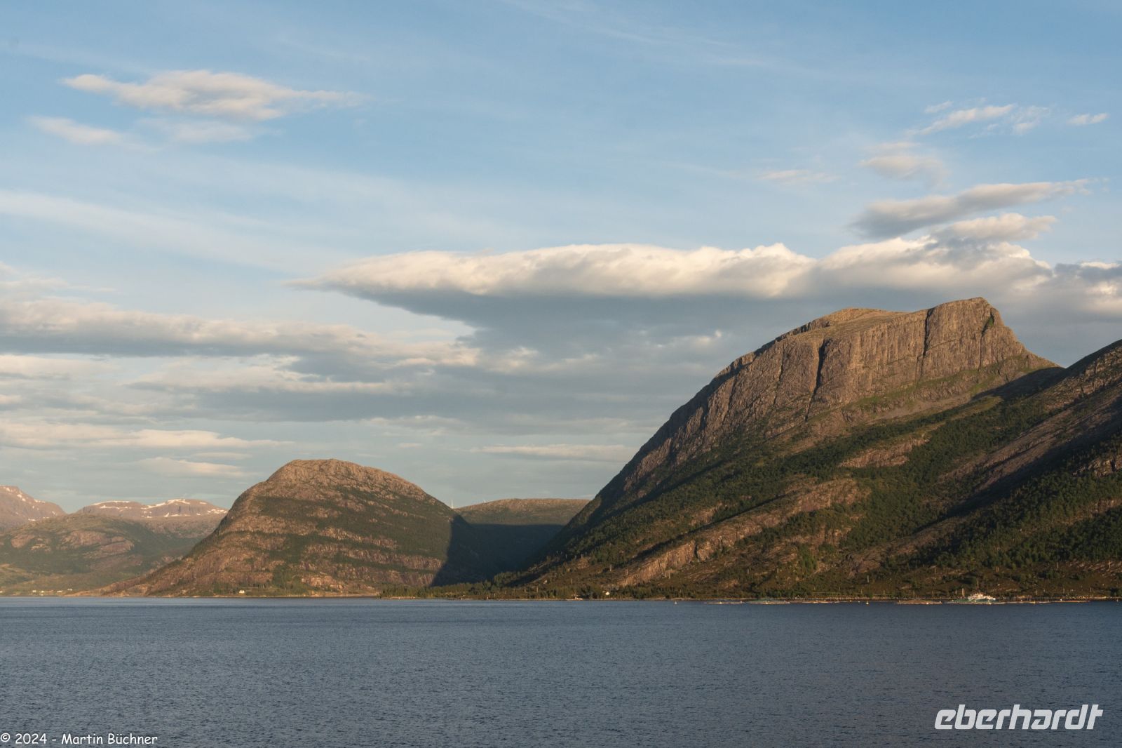 In der Mittagszeit passieren wir die Gebirgskette der „Sieben Schwestern“ und dem Dønnemannen, dem schlafenden Wächter der Mädchen.