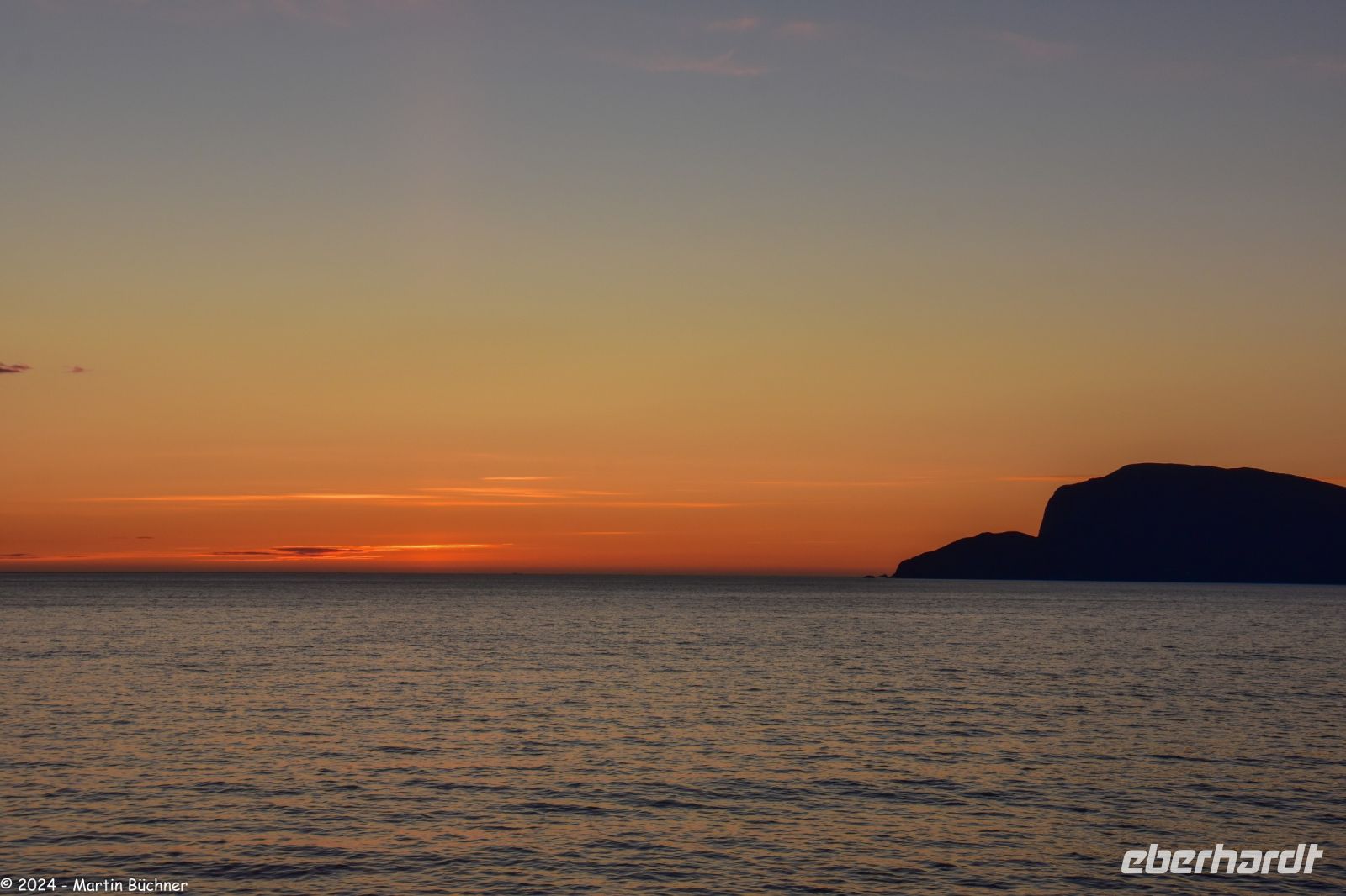 Erst am Abend taucht das Südkap Spitzbergens auf. Nur noch weitere 16 Stunden bis Longyearbyen, fast ausschließlich nordwärts.
