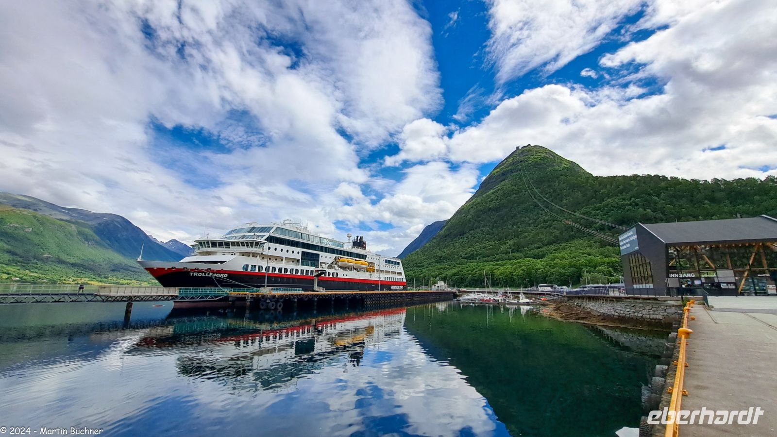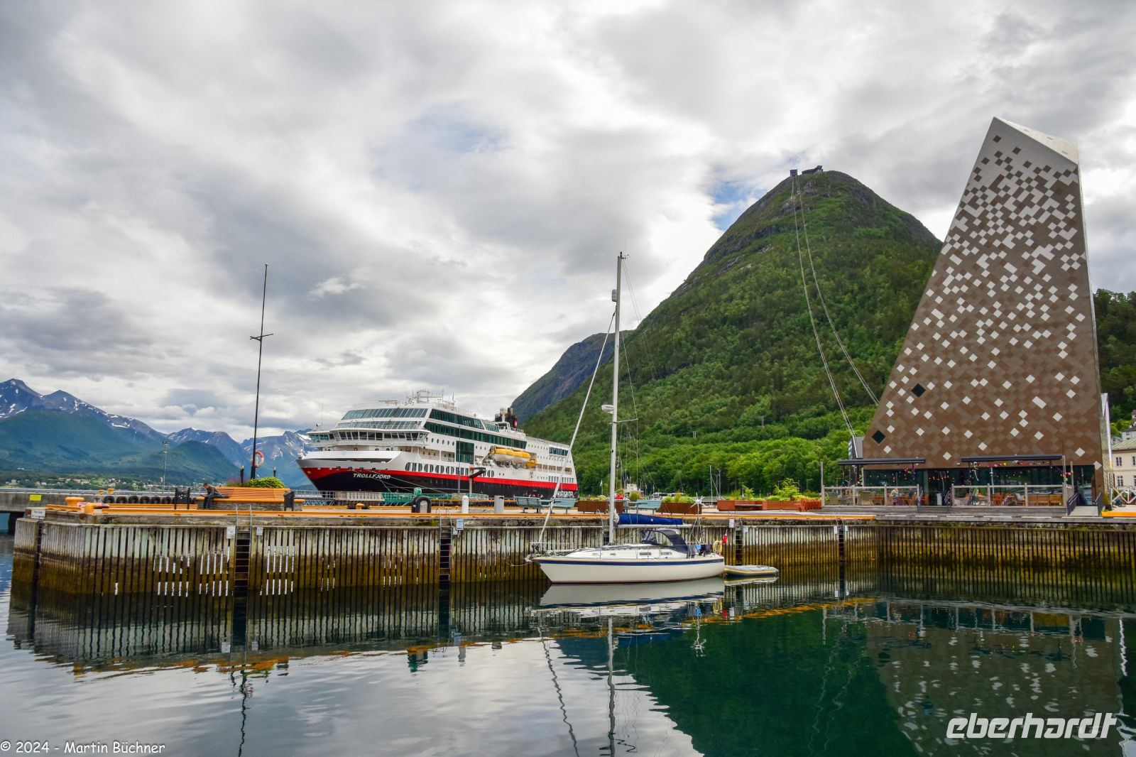 Unser Hafen und erster Stopp dieser Reise heißt Åndalsnes. Der Ort liegt am Isfjord, einem Nebenfjord des Romsdalsfjord. Der Fluss Rauma mündet hier in den Fjord.