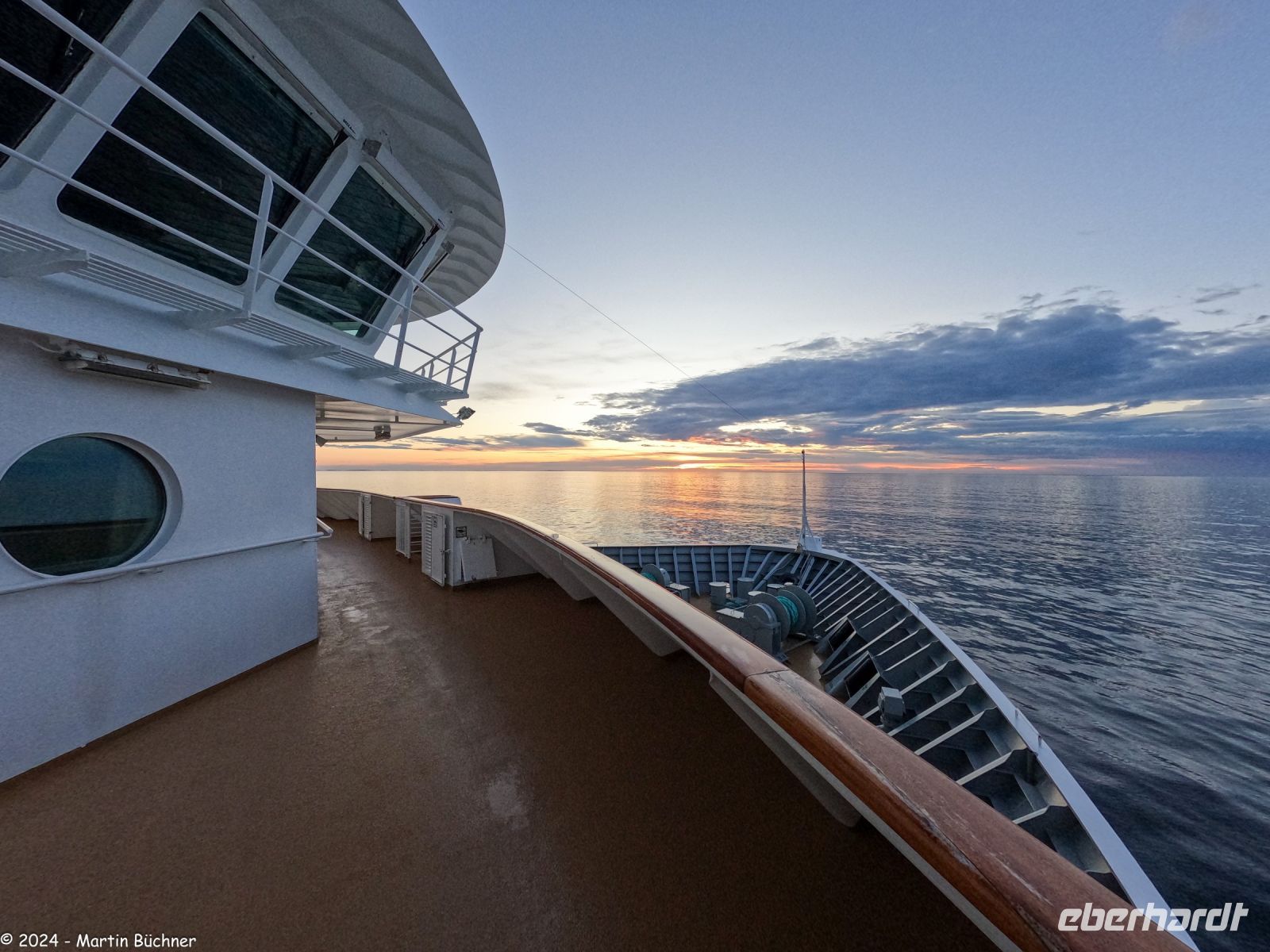 Wie weit wir vom Festland wirklich weg sind, spürt man an diesem Seetag. Gegen Mittag sind wir bereits 24h unter voller Fahrt nonstop auf See. Weitere 24h werden folgen.