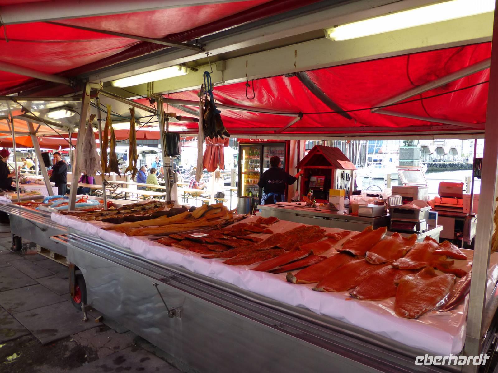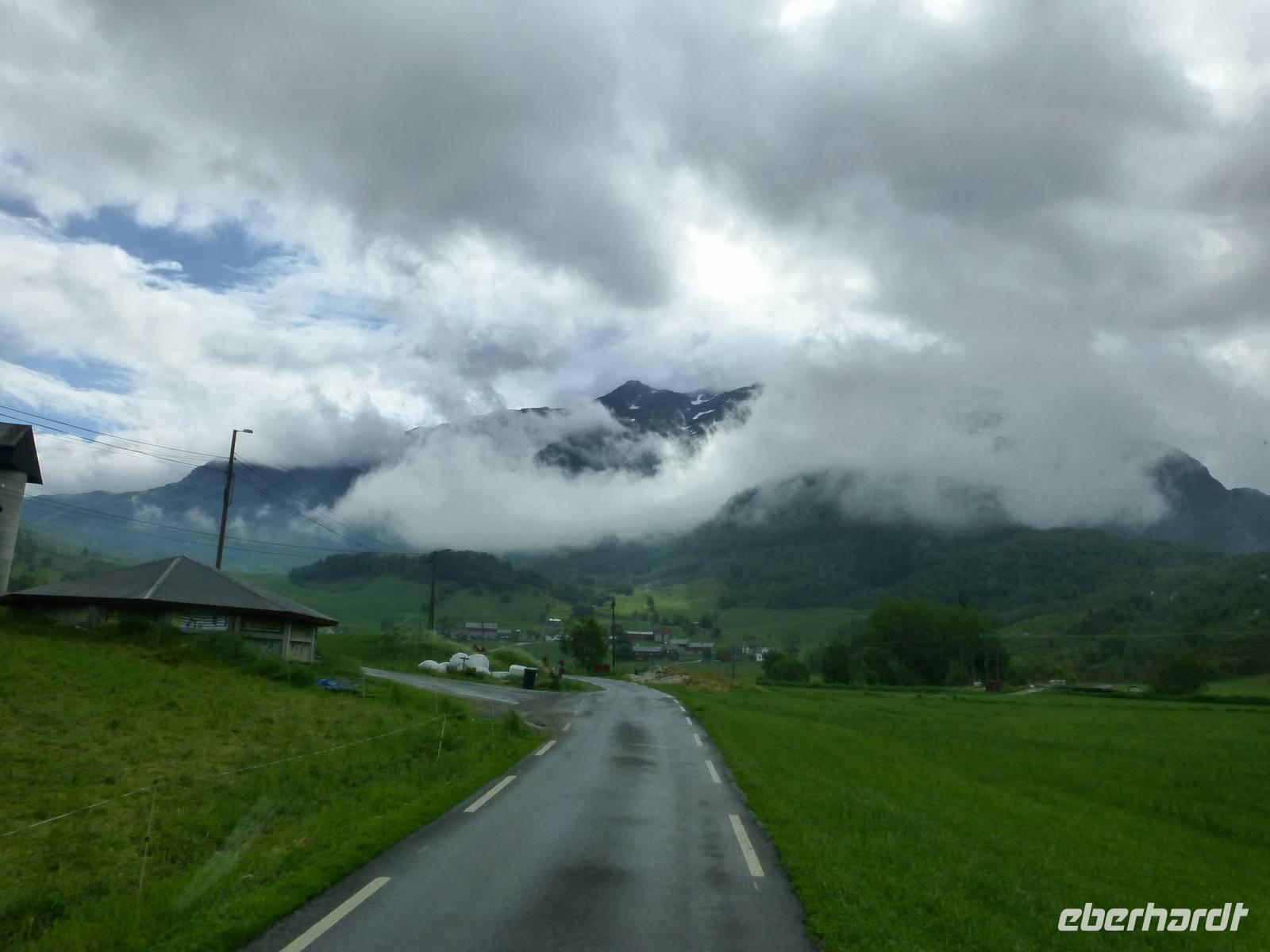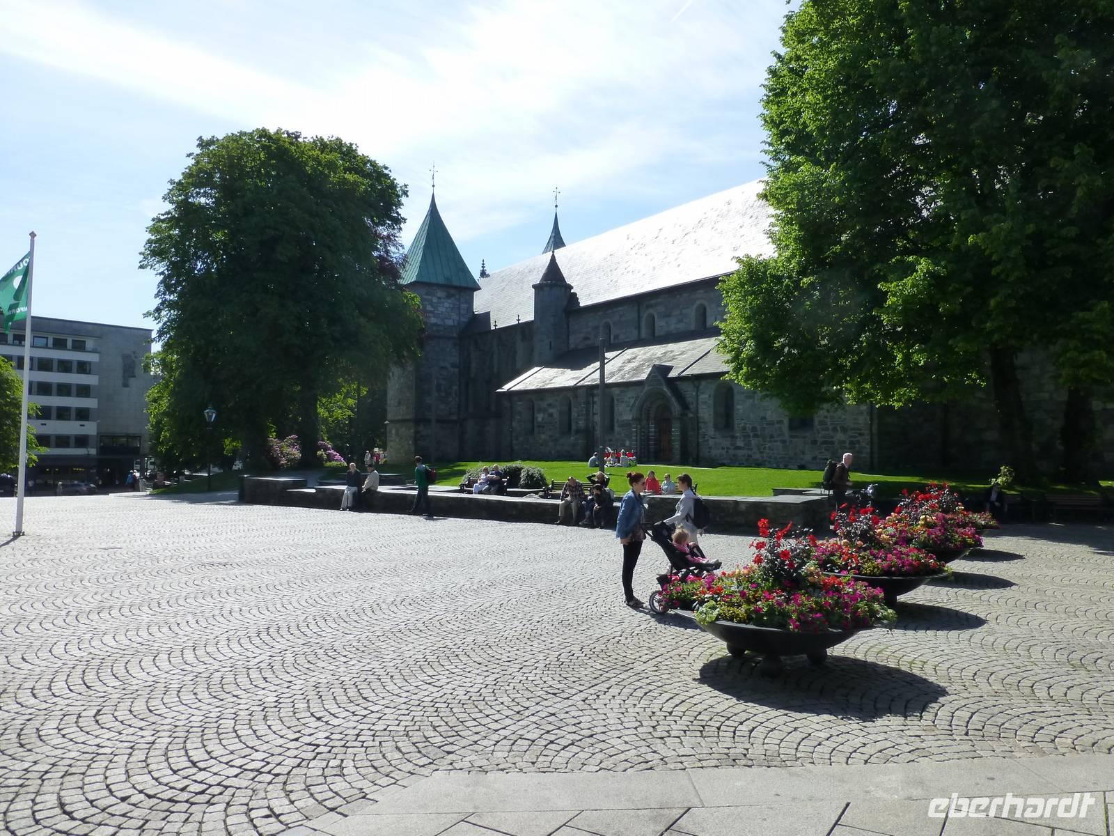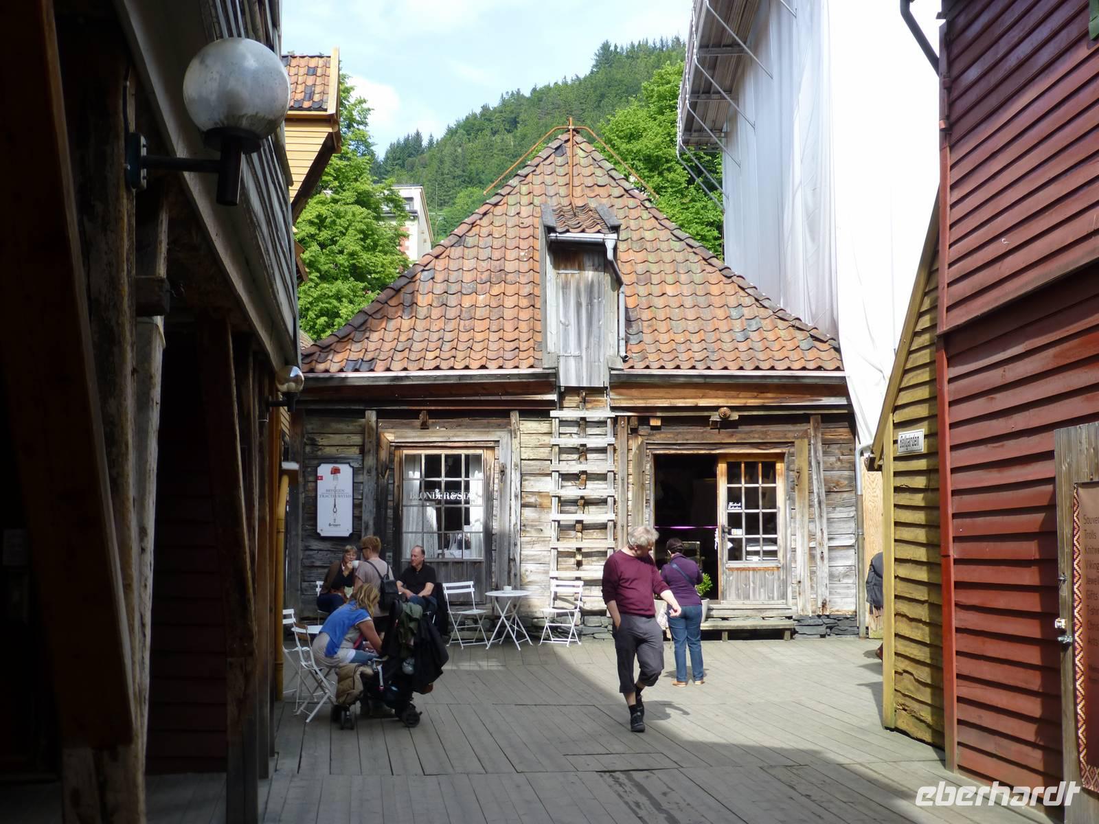Heute verlassen wir Stavanger, unser Ziel ist die Stadt Bergen. Auf den gut 200 Kilometern bis dahin durchfahren wir mehrere einige Tunnel, welche bis zu 8 Kilometer lang sind und immer unter dem Meer hindurchführen. Die tiefste Stelle die wir durchfahren liegt bei 260 m unter dem Meeresspiegel. Zweimal fahren wir auch mit der Fähre, eine Abwechslung auf der auch landschaftlich schönen Strecke. Da wir gut in der Zeit liegen nehmen wir ab eine Nebenstraße, machen in Fitjar eine Mittagspause und erreichen dann am Nachmittag Bergen. Die Zeit reicht um zuerst im Hotel, dem Thon Hotel Bristol, unsere Zimmer zu beziehen und danach die Stadtrundfahrt zu beginnen. Annemarie, eine deutsche Studentin, ist unsere Stadtführerin. Sie bringt uns Bergen näher und zum Ende der Rundfahrt, welche uns in zahlreiche Stadtteile führte und sogar die Residenz des norwegischen Königs in Bergen führt, machen wir noch einen Spaziergang durch die Brygge. Dabei handelt es sich um die ehemaligen Handels- und Wohnhäuser der Hanskaufleute. In Bergen befand sich zur Hochzeit der Lübecker Hanse ein Kontor der selben. Haupthandelsware war Stockfisch, eingeführt wurde häufig Wein und Bier, aber auch Tuche aus England. Am Abend beginnt es zu regnen, hoffentlich ist es morgen früh vorbei, denn wir wollen wieder wandern gehen.
