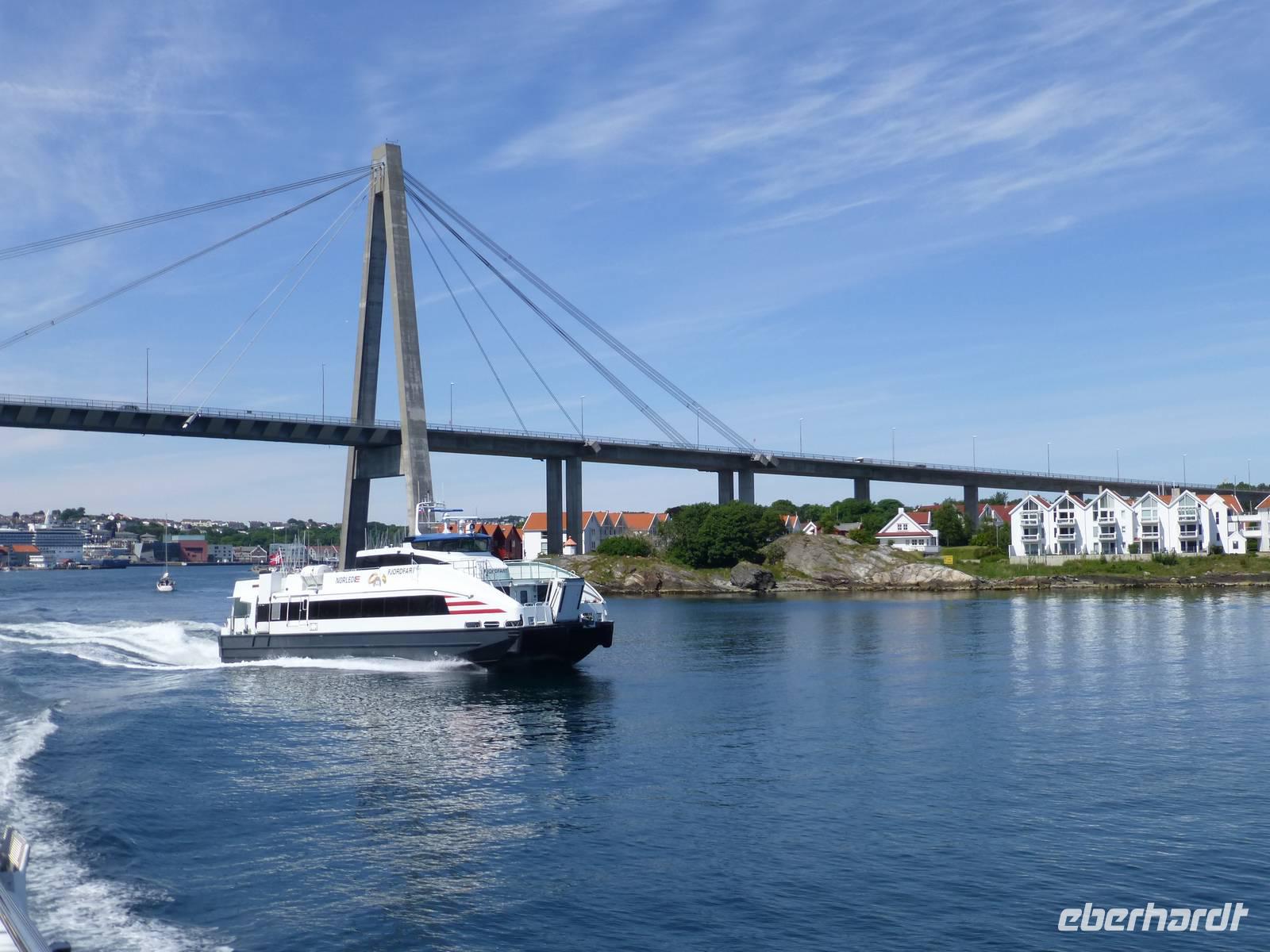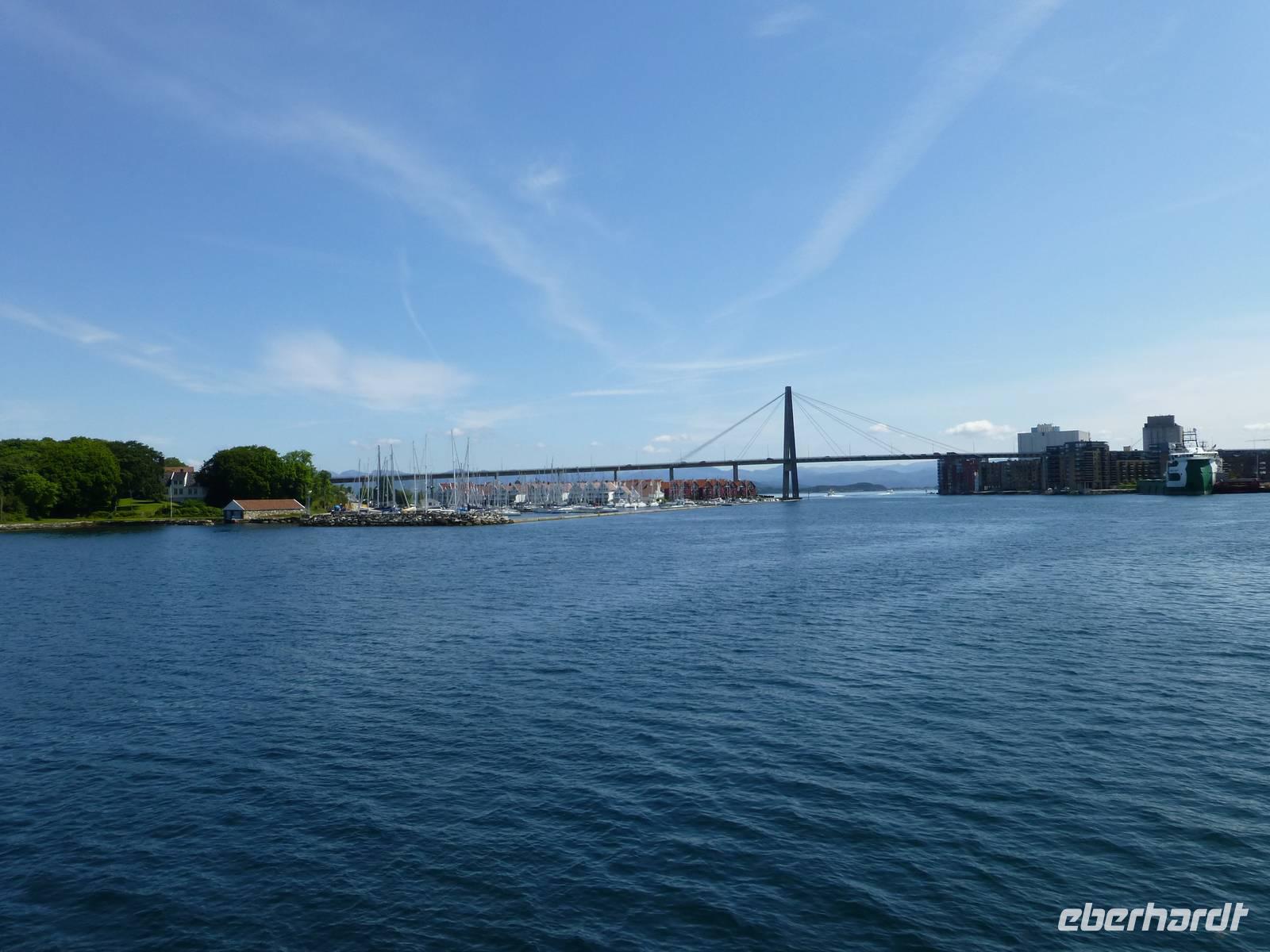 Am nächsten Tag geht es nach dem Frühstück über Ålborg nach Hirtshals und von dort in 3,15 h nach Kristiansand. Dort angekommen sind es nur noch 238 km bis Stavanger. Deutsche Maßstäbe im vorwärtskommen sind aber fehl am Platz. Bei einer Höchstgeschwindigkeit von 70 - 80 km/h dauert die Fahrt doch etwas länger. Versüßt wird uns die Fahrt durch strahlenden Sonnenschein und eine tolle Landschaft. Nach der Ankunft im Hotel Rica Forum in Stavanger essen wir noch zu Abend und ein mancher macht auch noch einen Spaziergang. Das geht ohne Probleme, denn die Sonne geht erst so kurz vor 24 Uhr schlafen.