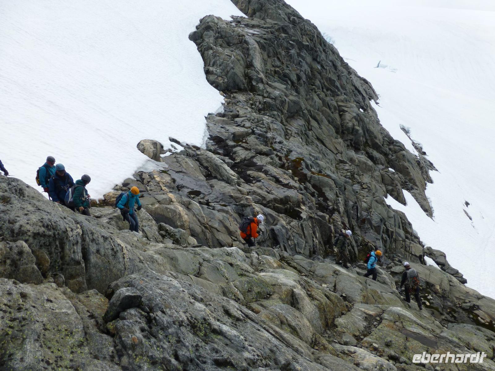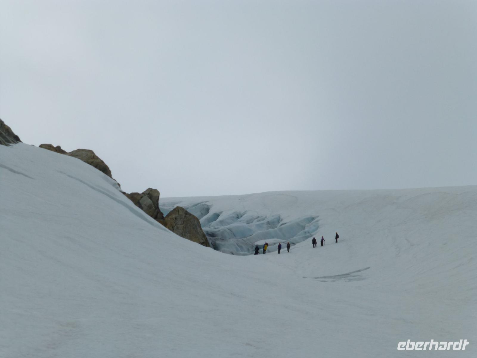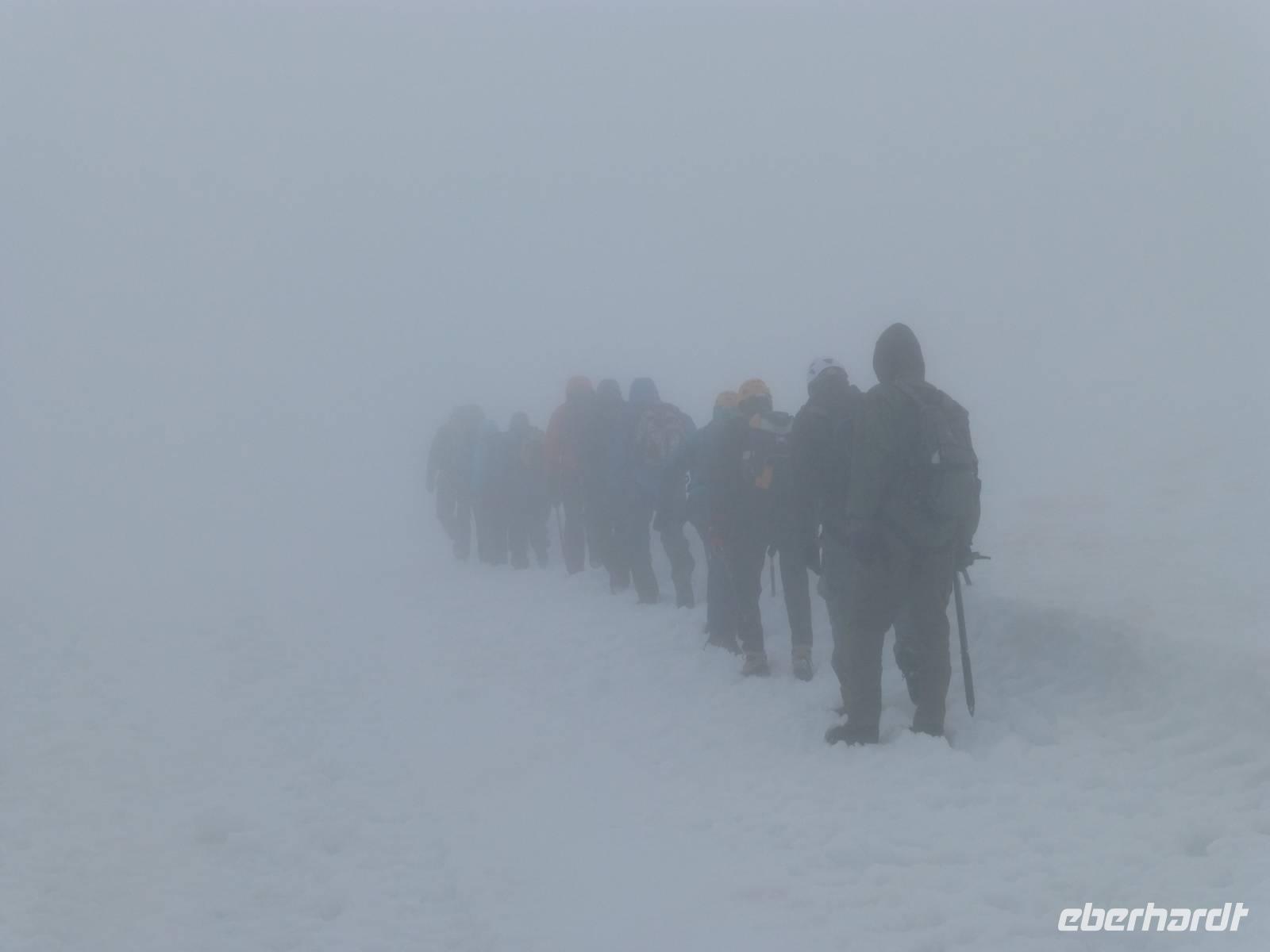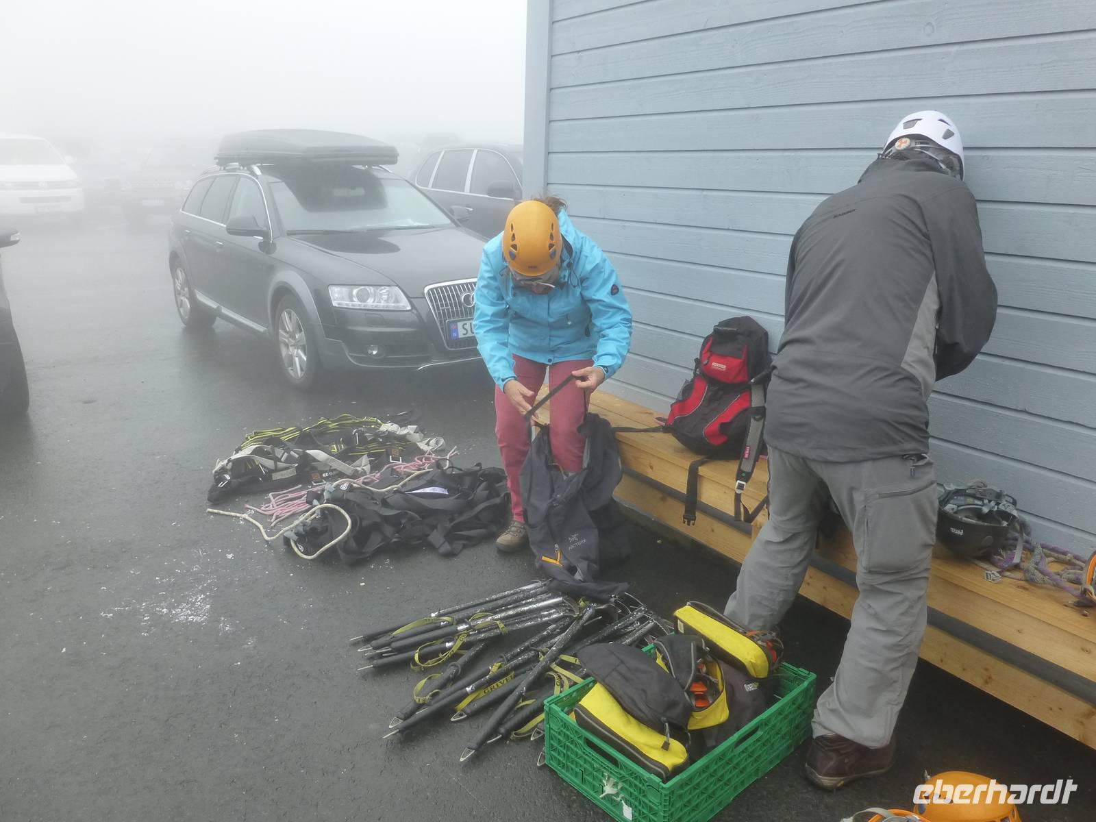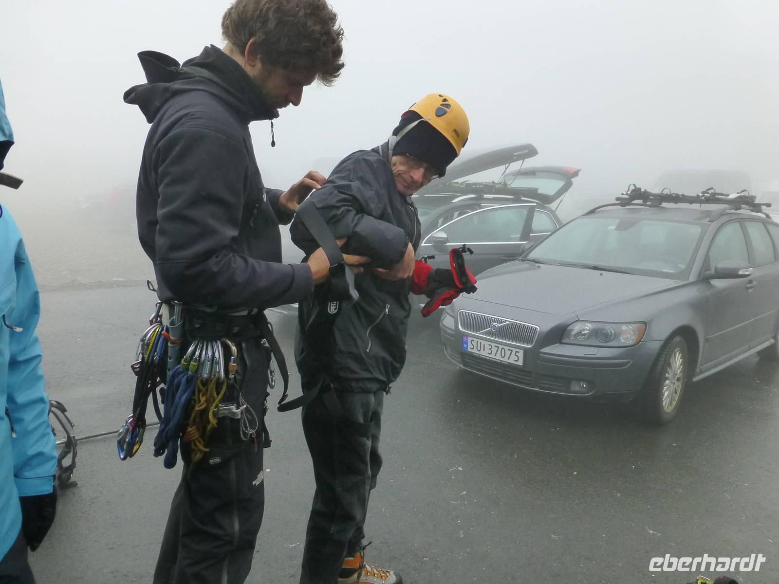 Am Morgen zeigt sich das Wetter noch nicht von seiner besten Seite. Heute gibt es die fakultative Möglichkeit zu einer Gletscherwanderung auf Norwegens drittgrößtem Gletscher, dem Folgefonna. Und so macht sich ein Teil der Gruppe am Morgen auf nach Jondal. Die im Hotel bleibenden Gäste haben einen Tag zur freien Verfügung, welcher sich in Ulvik ohne Probleme verbringen lässt. Von Jondal sind es noch 20 km bis zum Folgefonna Sommerskicenter. Allein die Fahrt da hinauf ist ein Erlebnis. Nach Ankunft werden wir von unserem Gletscherführer Cleng empfangen. Wir werden eingekleidet und natürlich in die Tour eingewiesen. Zuerst haben wir 200 Höhenmeter zu überwinden. Wir starten in dichten Nebel und dann kommt die erste Belohnung, die Wolken reißen auf und wir können erstmals sehen in was für einem Winterwunderland wir angekommen sind. Nachdem wir eine Höhe von 1400 m erreicht haben steigen wir zum eigentlichen Gletscher ab. Zuerst aber müssen die Steigeisen angelegt und eine Seilschaft gebildet werden. Dann laufen wir tatsächlich über den Gletscher, vorbei an großen Gletscherspalten, Direkt am Eis machen wir eine Mittagspause und drehen dann noch mehrere Runden über das Eis, das an machen Stellen eine blaue Farbe hat. Cleng erklärt uns, das dies mit dem Lichteinfall der Sonne zu tun hat und der gleiche Effekt auch beim Meerwasser auftritt. Später verlassen wir den Gletscher wieder und steigen wieder ab zum Sommerskicenter. Inzwischen ist hier kein Betrieb mehr. Wir sind geschafft und froh, es war ein Erlebnis. Über den gleichen Weg fahren wir zurück nach Ulvik.