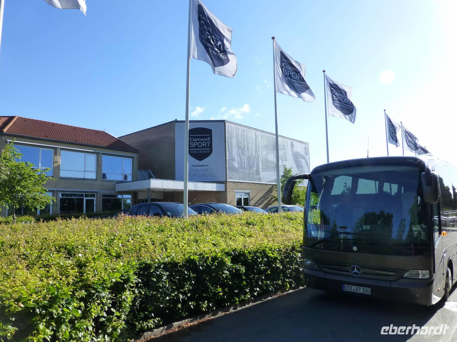 Mit dem ersten Zustieg am Leipziger Flughafen beginnt unsere Reise. Die Fahrt führt uns vorbei an Magdeburg, dann weiter Richtung Hannover und von dhort über die A7 Richtung Hamburg. Leider hat uns auf der Fahrt zweimal die Staufalle erwischt, einmal am Dreieck Walsrode und dann am Elbtunnel in Hamburg. So mussten die beiden Gäste die noch am Hamburger Flughafen zustiegen 1,5 h auf unseren Bus warten. Bei Flensburg passieren wir die Grenze zu Dänemark, in Padborg entrichten wir die Mehrwertsteuer für die Durchfahrt durch Dänemark, dann weiter über Kolding und Åraus erreichen wir am Abend unser Hotel Comwell Rebild Bakker in Rebild. Nach einem guten Abendessen sinken wir alle in unsere Betten.