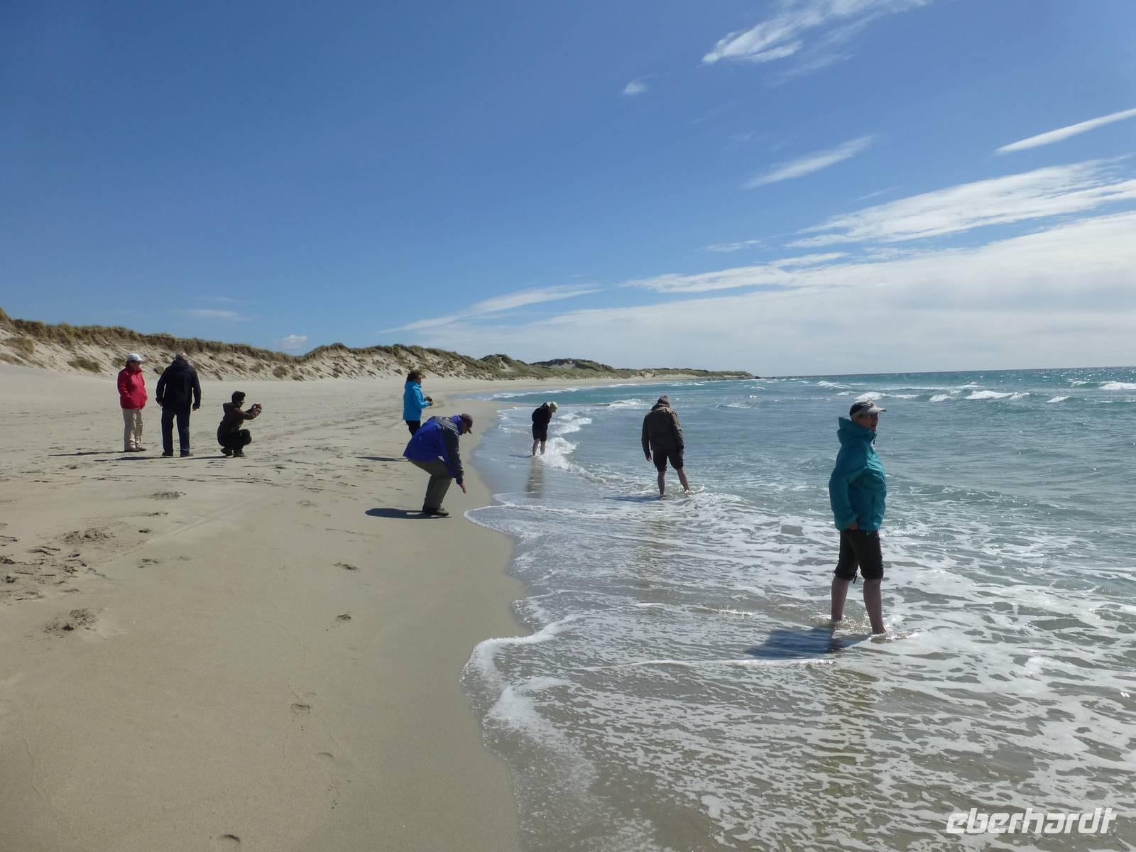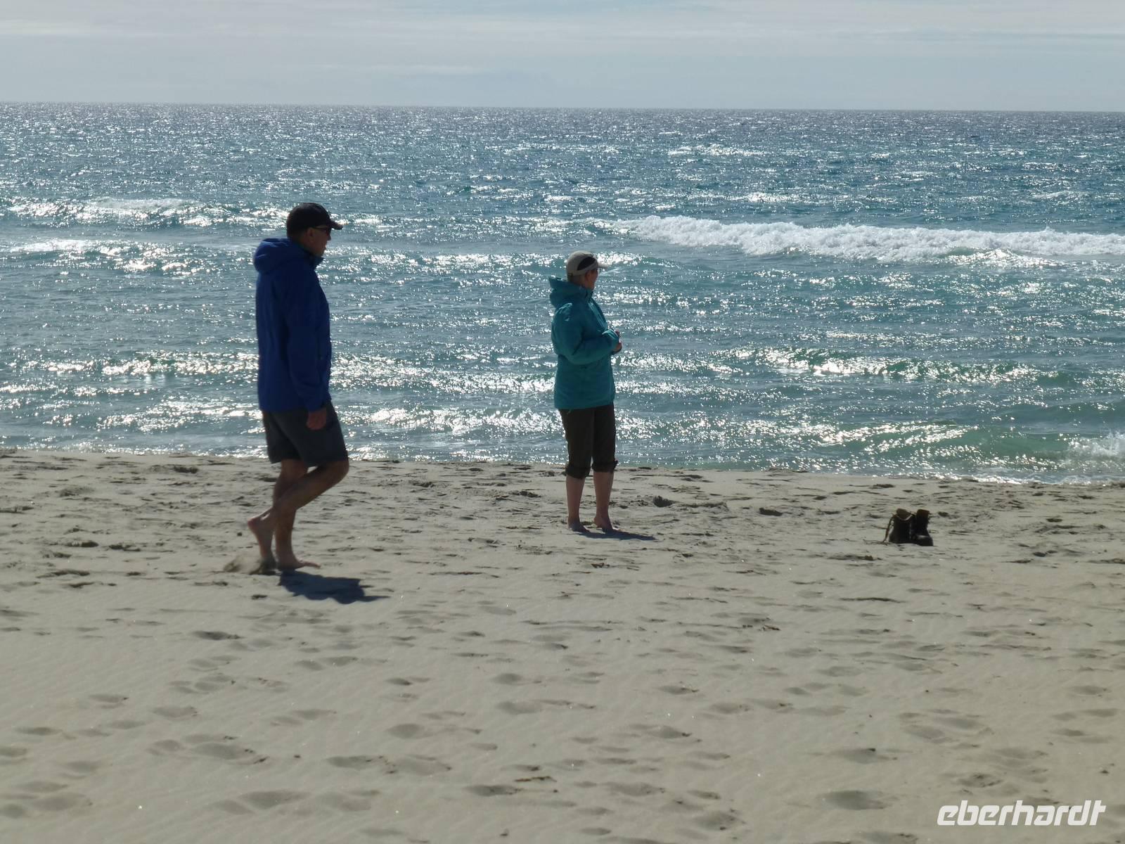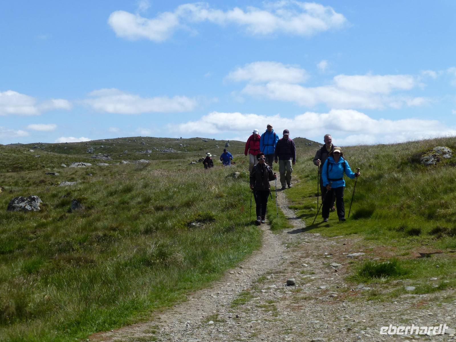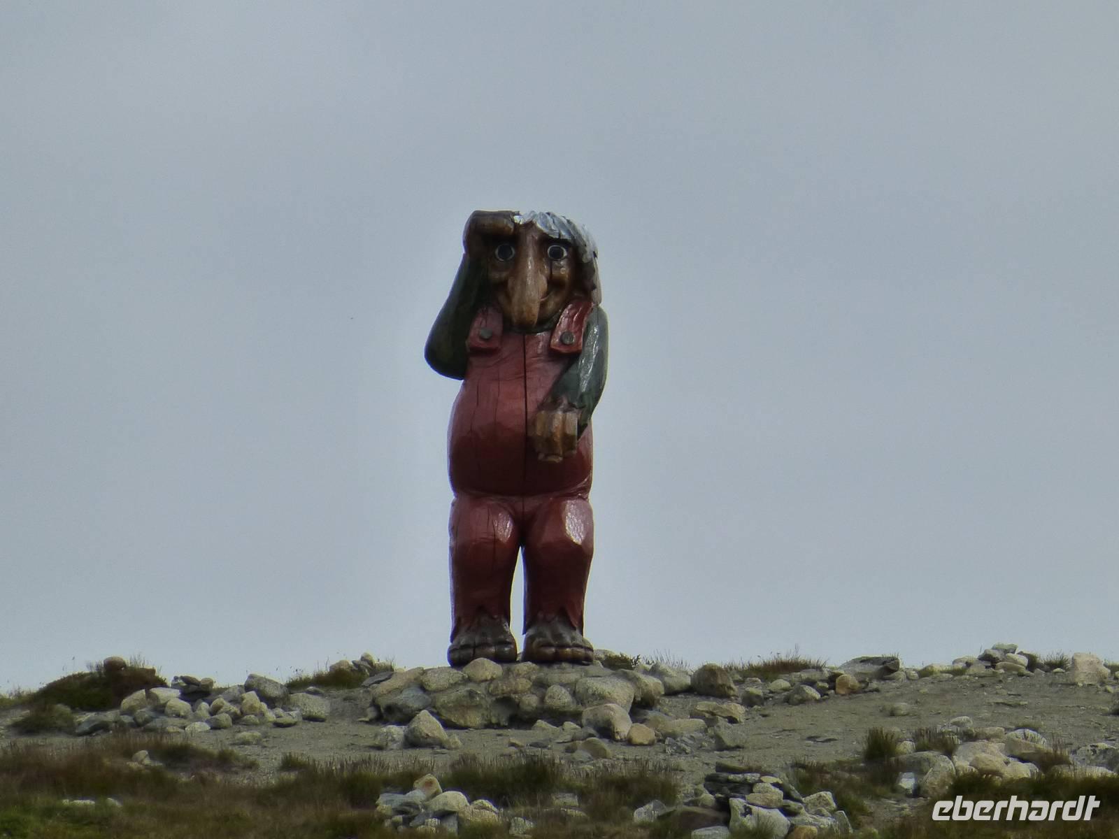 Zum Frühstück genießen wir das Skandinavische Frühstücksbüffet im Hotel. Hier kann sich auch jeder nach Belieben ein Lunchpaket zusammenstellen. Danach geht es auf zu unserer ersten Wanderung. Nach gut einer Stunde Fahrt beginnen wir unsere Wanderung am kleinen Stausee Vandavatnet. Durch Weideland für Kühe und Schafe, später durch offene Moorlandschaft erreichen wir schließlich den 306 m hohen Gauleksvarden. einiges an interessanten Pflanzen zu entdecken. So u.a. Echtes Fettkraut, Beinbrech oder Gelbe Moorlilie, geflecktes Knabenkraut und Wollgras. Dann steigen wir wieder leicht ab um die "Steinkjerinnga" zu erreichen. Die Steinfrau, ein Skulptur von Sigur Sørendsen aus dem Jahre 1898-99, auch Mutter Norwegens genannt, wacht über das weite Land. Sie wurde 1925 an diesem Platz aufgestellt. Jetzt wandern wir hinüber zum 359 m hohen Synesvarden. Bei wunderschönem Wetter und starkem Wind genießen wir die Aussicht auf die Umgebung und unser mitgebrachtes Mittagsbrot. Danach erfolgt der Abstieg zum See "Holmavatnet", wo Kersten mit dem Bus wartet. Auf dem Weg zurück nach Stavanger machen wir noch einen Halt am Sandstrand bei Orre. Nach dem Abkühlen der Füße in der Nordsee ist ein Spaziergang durch den warmen Sand richtig toll.