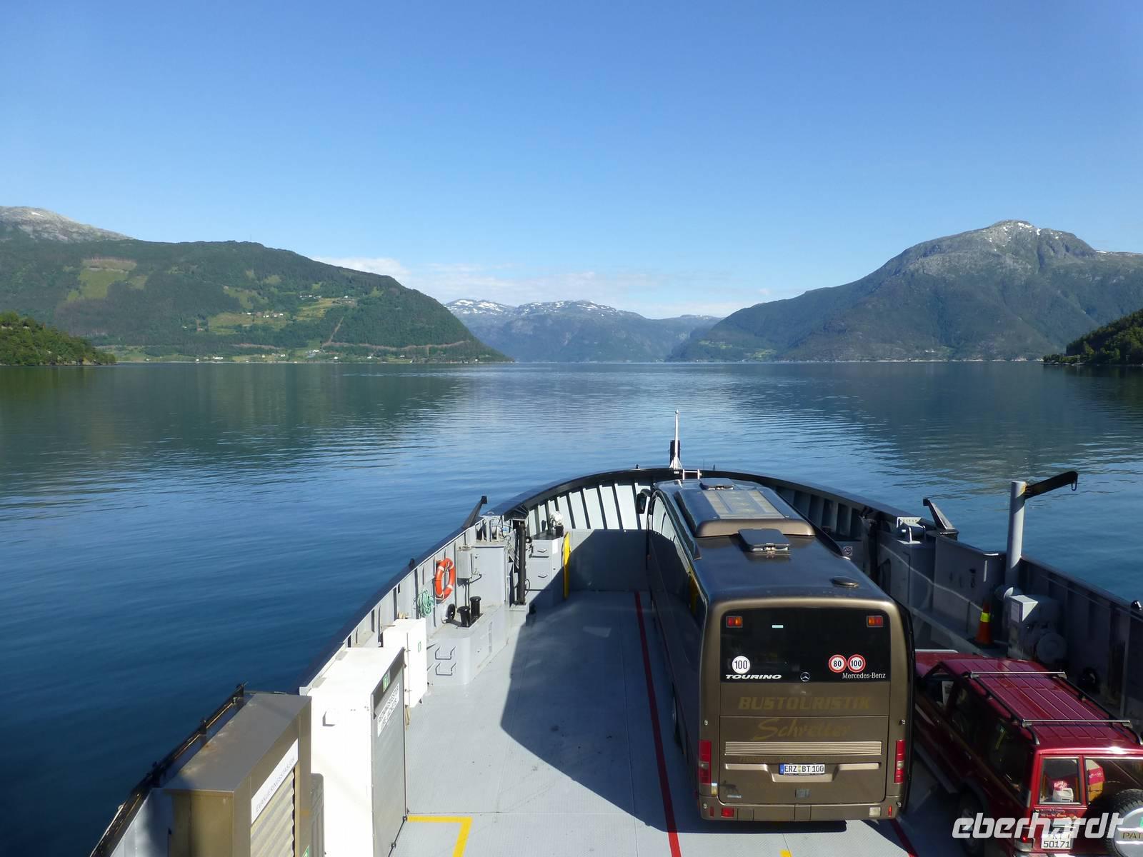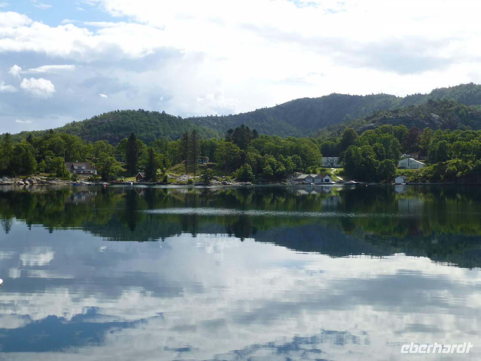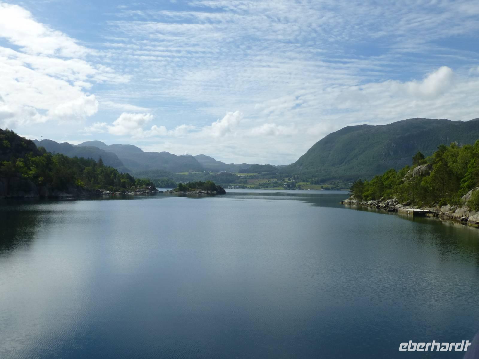 Am nächsten Tag geht es nach dem Frühstück über Ålborg nach Hirtshals und von dort in 3,15 h mit dem Fährschiff der Colorline nach Kristiansand. Dort angekommen sind es nur noch 238 km bis Stavanger. Deutsche Maßstäbe im vorwärtskommen sind aber fehl am Platz. Bei einer Höchstgeschwindigkeit von 70 - 80 km/h dauert die Fahrt doch etwas länger. Versüßt wird uns die Fahrt durch strahlenden Sonnenschein und eine tolle Landschaft. Nach der Ankunft im Thon Hotel Maritim in Stavanger essen wir noch zu Abend und ein mancher macht auch noch einen Spaziergang. Das geht ohne Probleme, denn die Sonne geht ja zur Zeit in Norwegen nicht wirklich schlafen.