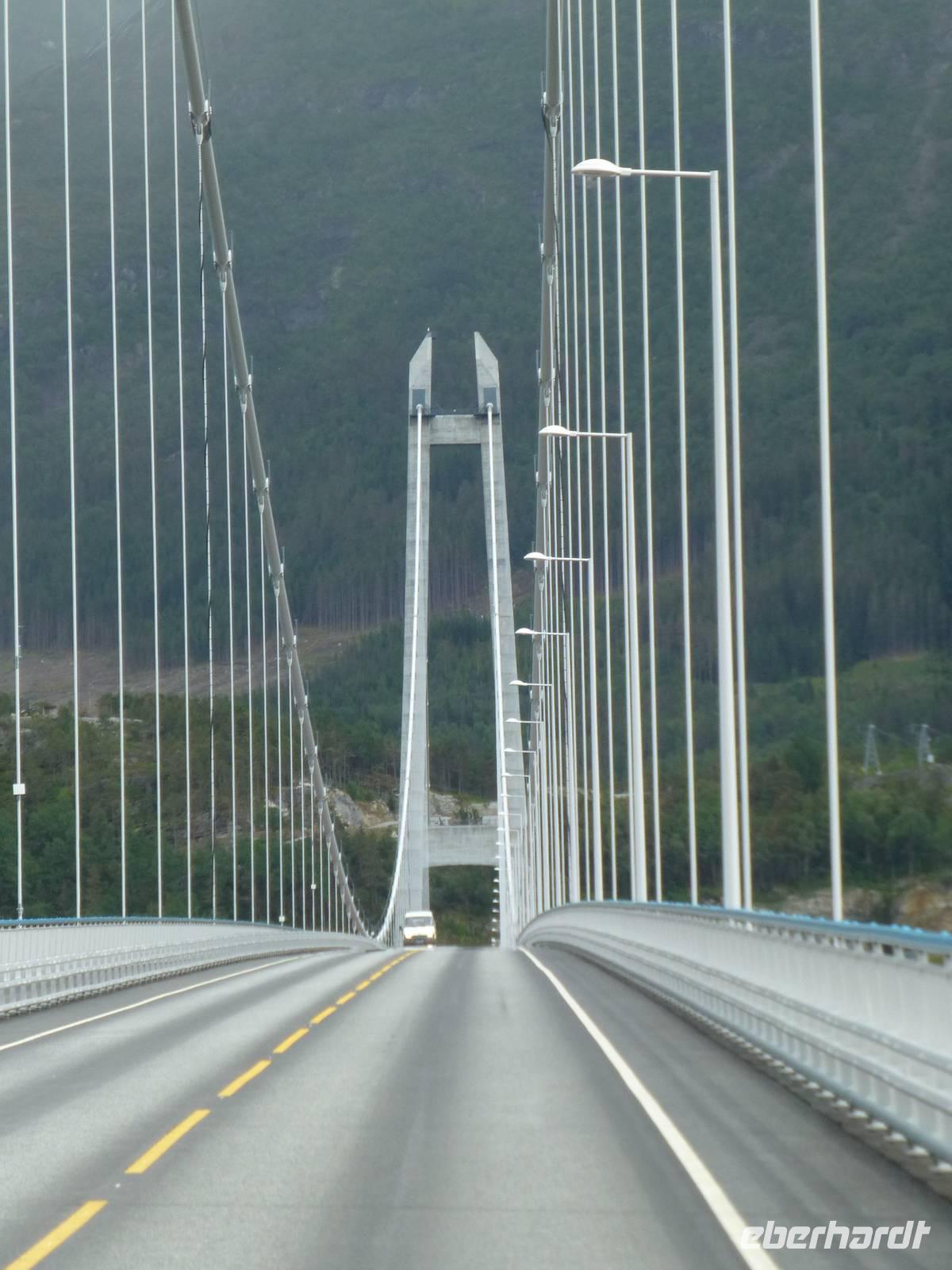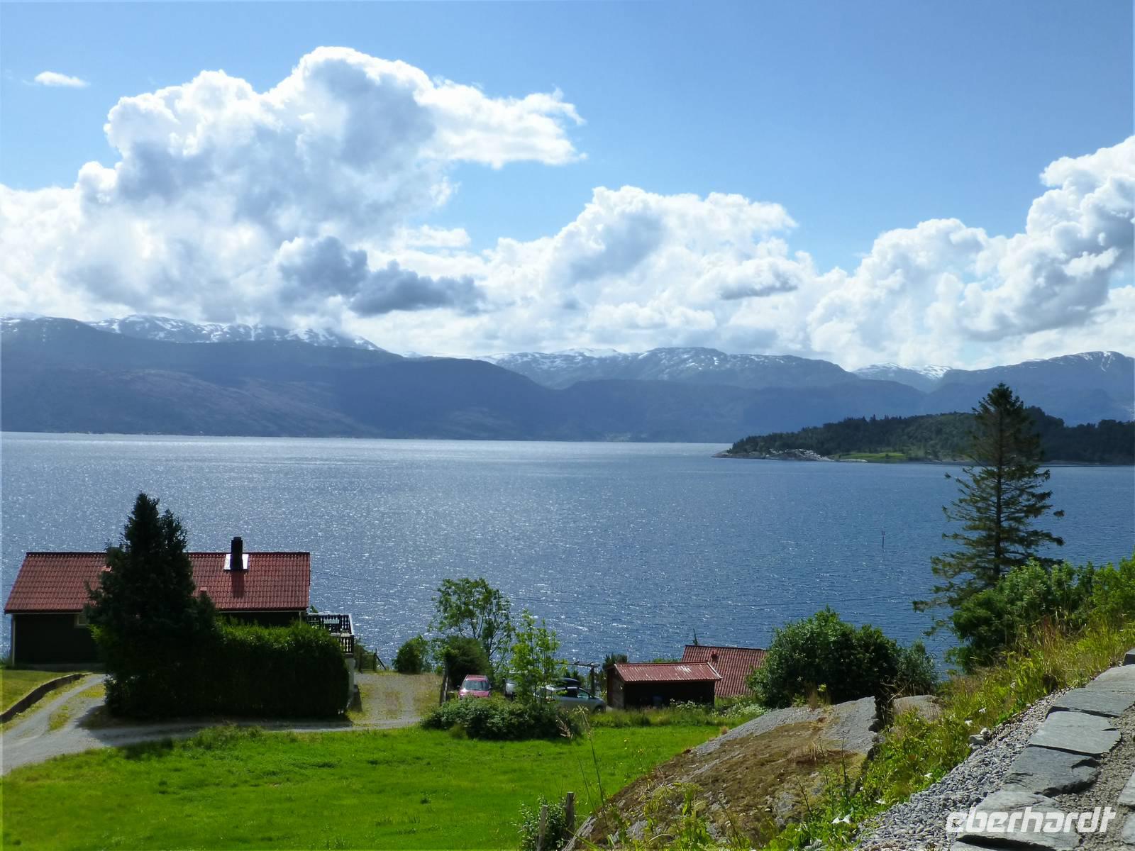 Heute reisen wir aus Bergen ab, Das Wetter meint es wieder gut mit uns. Schnell haben wir die Stadt verlassen, fahren über die Berge. Mehrere Wasserfälle liegen heute auf unserem Weg. Zuerst halten wir am „Rasteplassvossen", dann am Fossenbratte. Interessant ist auch der Halt am 30 m hohen Wasserfall Steinsdalsvossen. Das imposante ist hier, das man hinter den Wasserfall gehen kann. Vorbei an Norheimsund, Kvandal, Granvin, mit einigen Stopps unterwegs, fahren wir nach Ulvik. Unterwegs gibt es dann doch mal einen ganz schönen Schauer, der aber bei Ankunft in Ulvik schon wieder vorbei ist. Zuerst schauen wir uns die im Jahr 1859 gebaute Holzkirche an und laufen wir gemeinsam zur Ciderfarm Syse Gard. Von Gro, der Chefin hier, erfahren wir alles Wichtige über den Obstanbau am Ulvikfjord, aber auch über das Leben und die Arbeit der Besitzerfamilie rund um das Jahr. Und ganz klar, wir können leckeren Apfelsaft probieren, lassen uns ein Glas Cider schmecken und ebenso den selbstgeräucherten Lammschinken und die selbst gemachte Wurst. Über die im August 2013 neu eröffnete 1380 m lange Hardangerbrücke fahren wir nach Kinsarvik, wo wir die nächsten drei Nächte im Kinsarvik Fjordhotel übernachten.