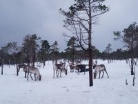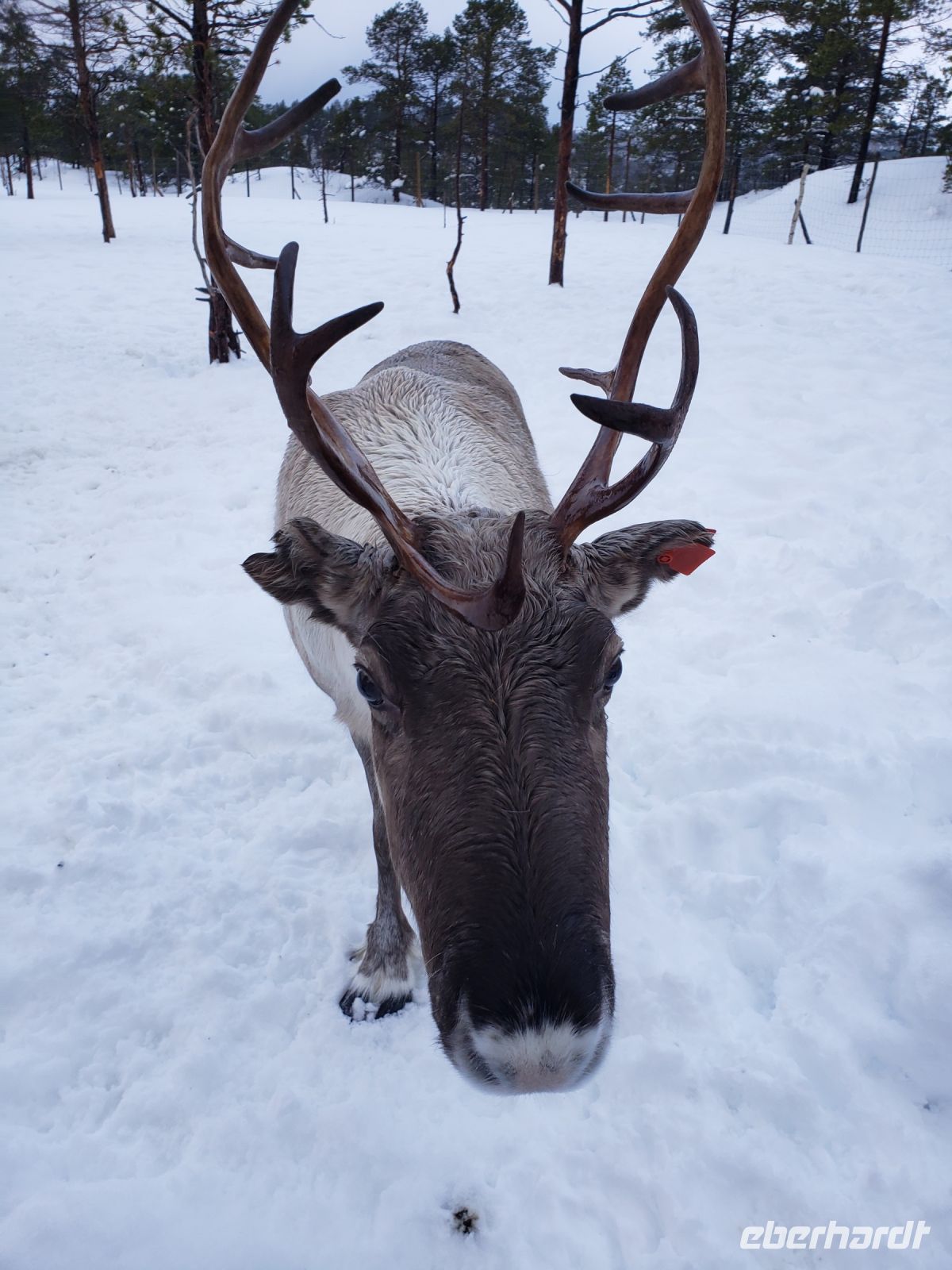 Der heutige Tag ist den Ureinwohnern Norwegens gewidmet. Wir werden Bekanntschaft mit dem Rentieren machen, kommen ihnen bei einer Fütterung ganz nah. Anschließend sitzen wir in einem Zelt, dem Lavuu. Es wurde zwar größer für Gruppen nachgebaut, aber gibt uns einen genauen Einblick darüber, wie die Samis damals auf einfachste Weise gelebt haben und den Rentieren bei ihren Wanderungen gefolgt sind.