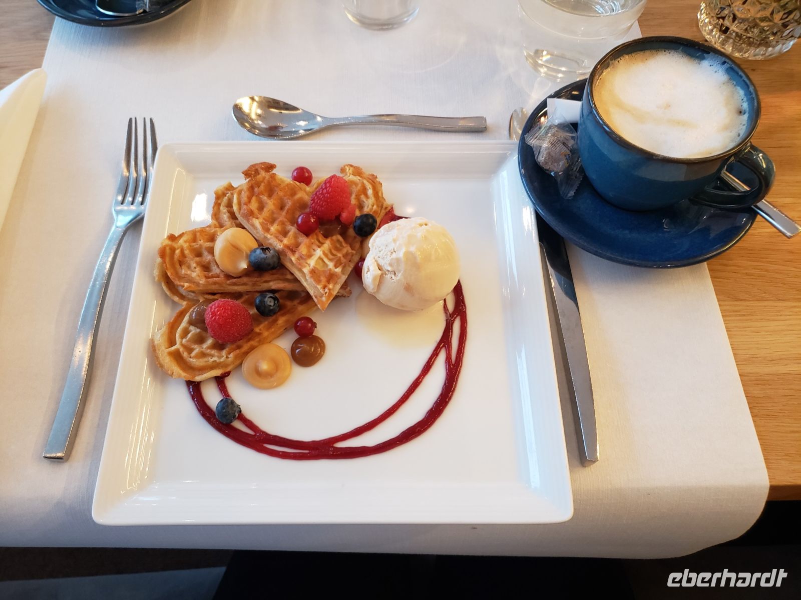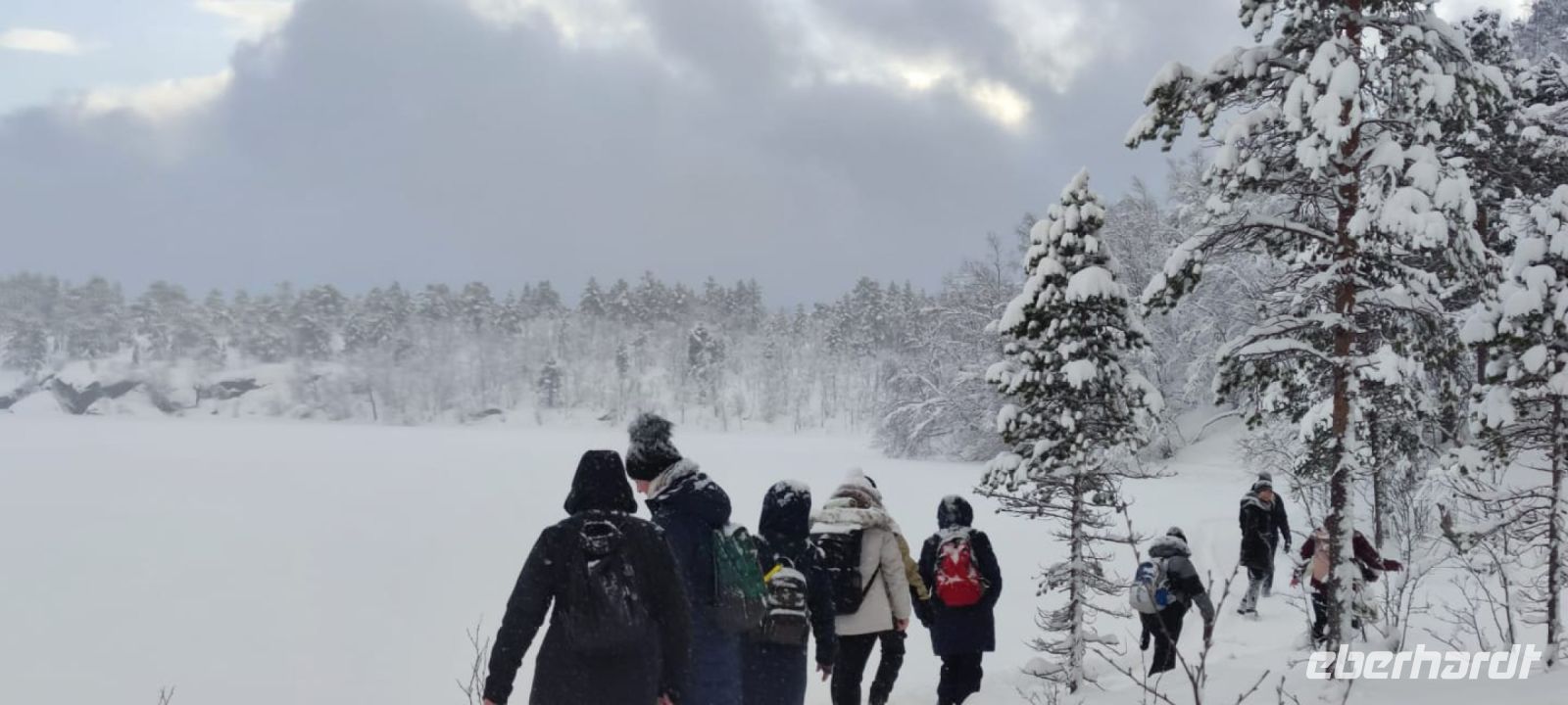 Alle anderen nutzen den freien Tag für eine Wanderung um bzw. auf dem zugefrorenen, nahegelegenen See. Die Sonne kommt heraus und strahlt mit uns um die Wette. Wir machen tolle Erinnerungsfotos und genießen mit ganzem Herzen die wunderschöne Landschaft. Natürlich müssen wir uns danach erstmal stärken, die meisten bestellen eine Waffel zum Kaffee.