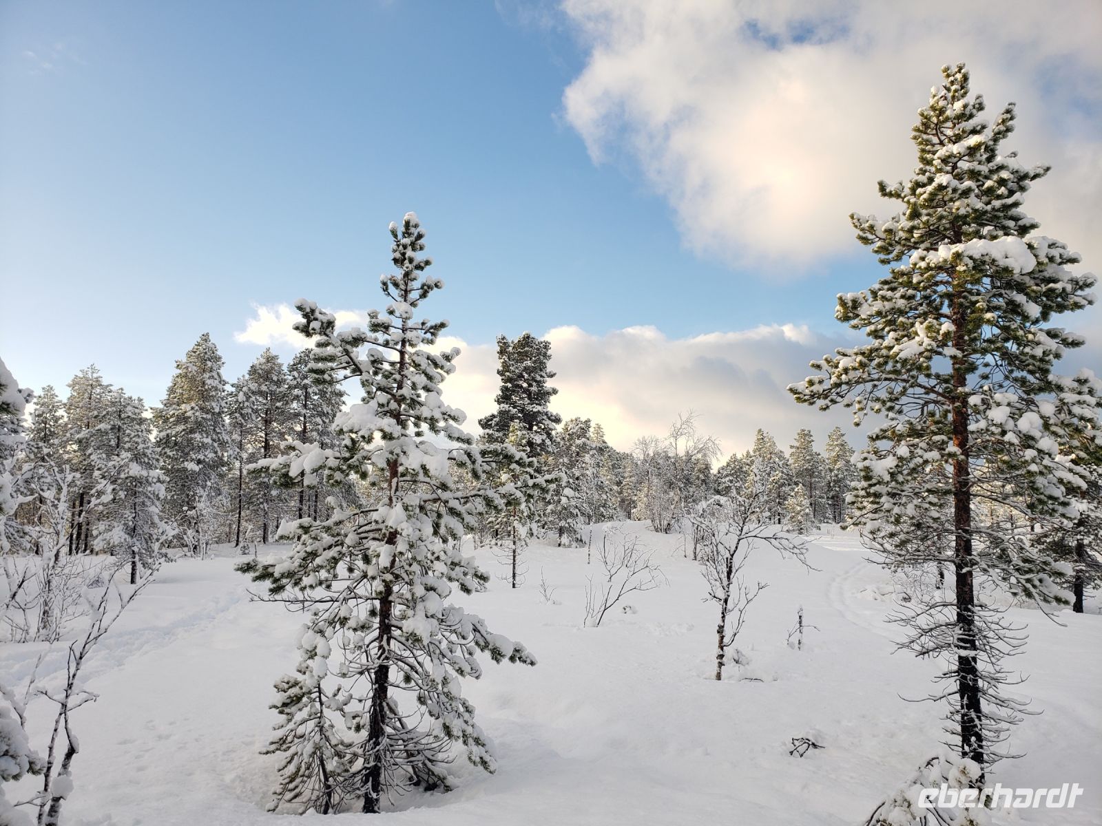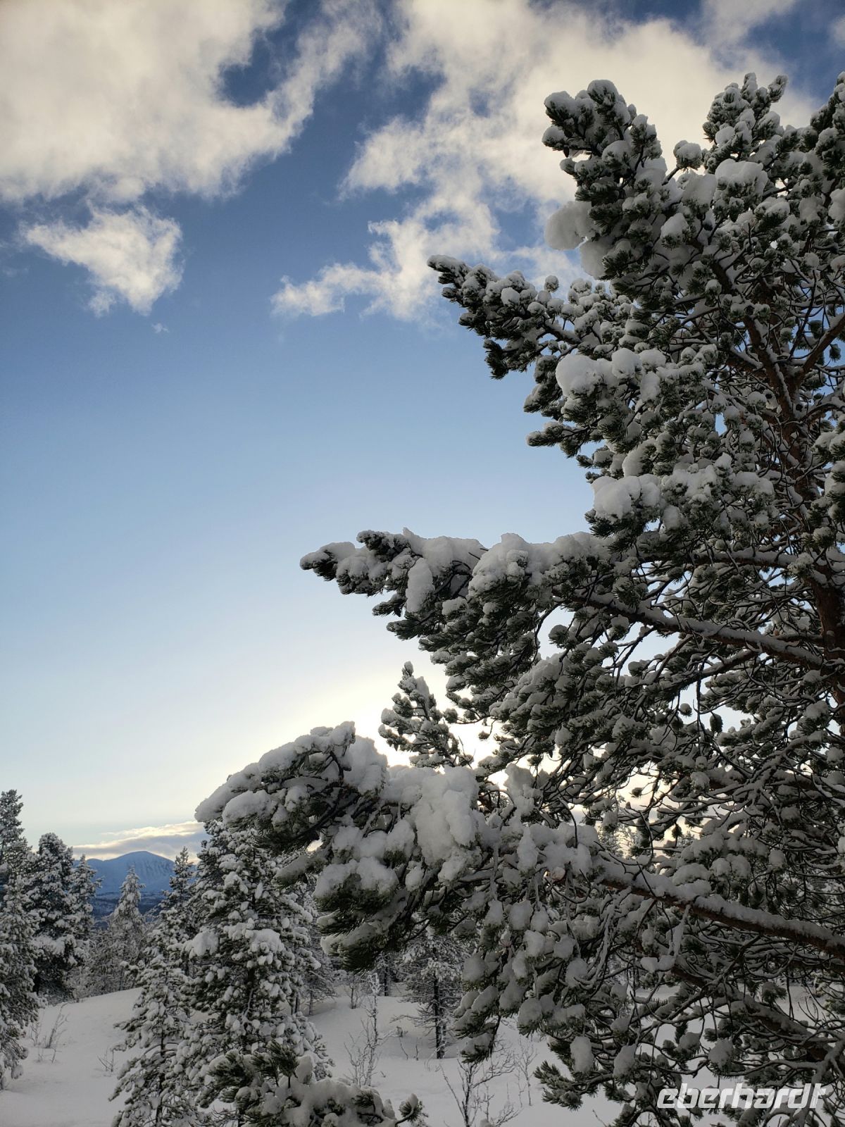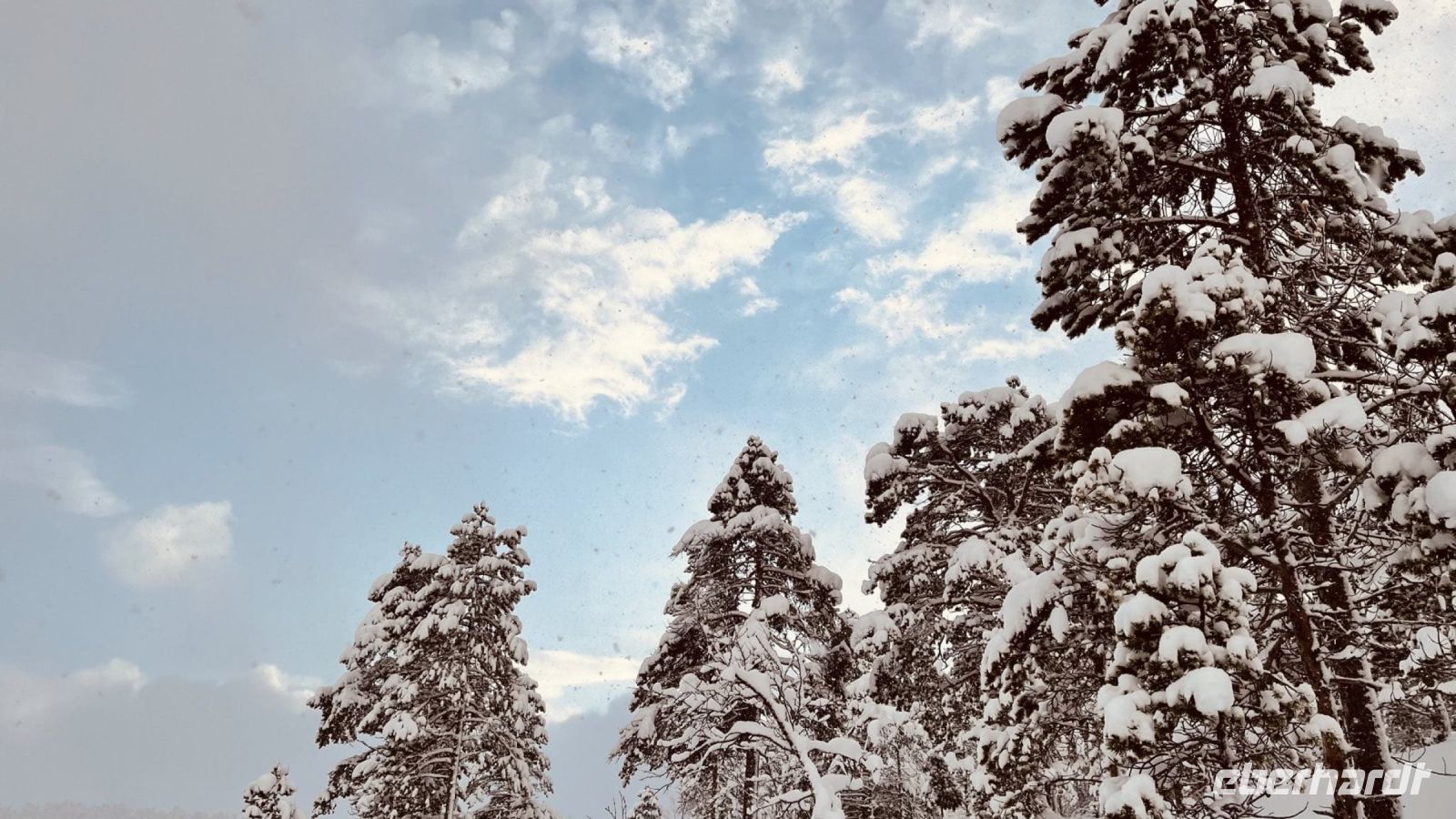Wenn Engel reisen - nach einigen Tagen unüblichem Tauwetters in Norwegen - hat es die ganze Nacht geschneit. Alle Bäume haben wieder ein Winterkleidchen an, so wie man es von den Bildern Norwegens her kennt. Wir freuen uns alle natürlich sehr darüber.