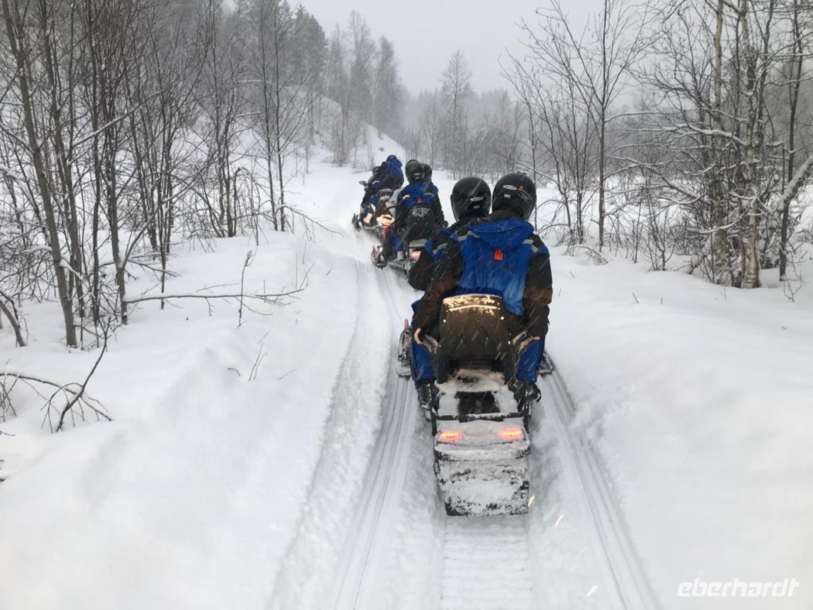 Einige werden an diesem Tag mit dem Schneemobil unterwegs sein, ein anderer Teil versucht sich im Ski-Langlauf.
