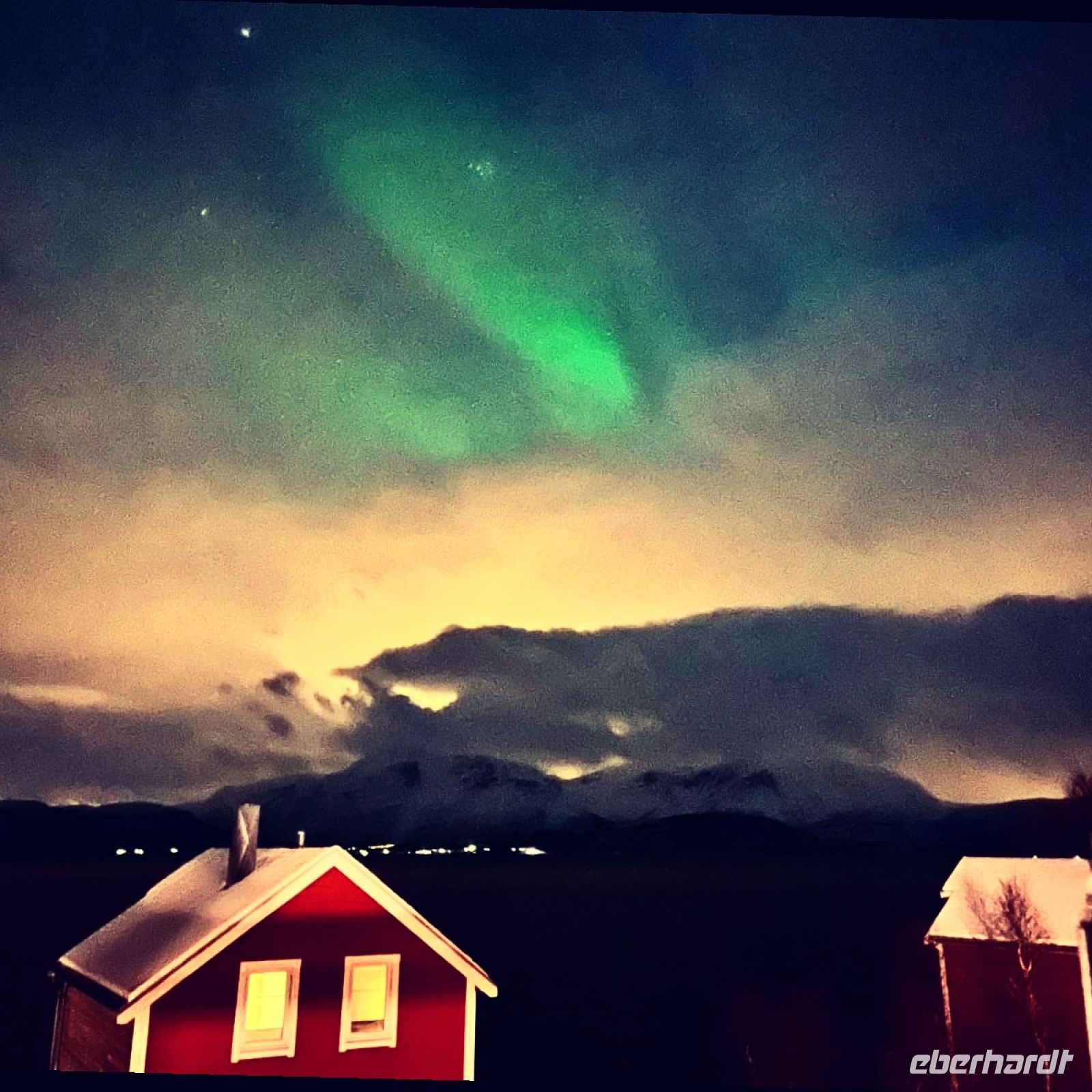 Wir, die Singles hatten natürlich den Traum, wie alle, Polarlichter zu sehen. Leider erfüllte sich dieser Traum nicht wirklich für uns. ZweiMädels aus unserer Truppe hatten wahnsinniges Glück und waren zur rechten Zeit auf ihrer Terrasse, als man einen grünen Schleier mit der Kamera festhalten konnte.