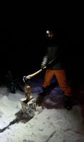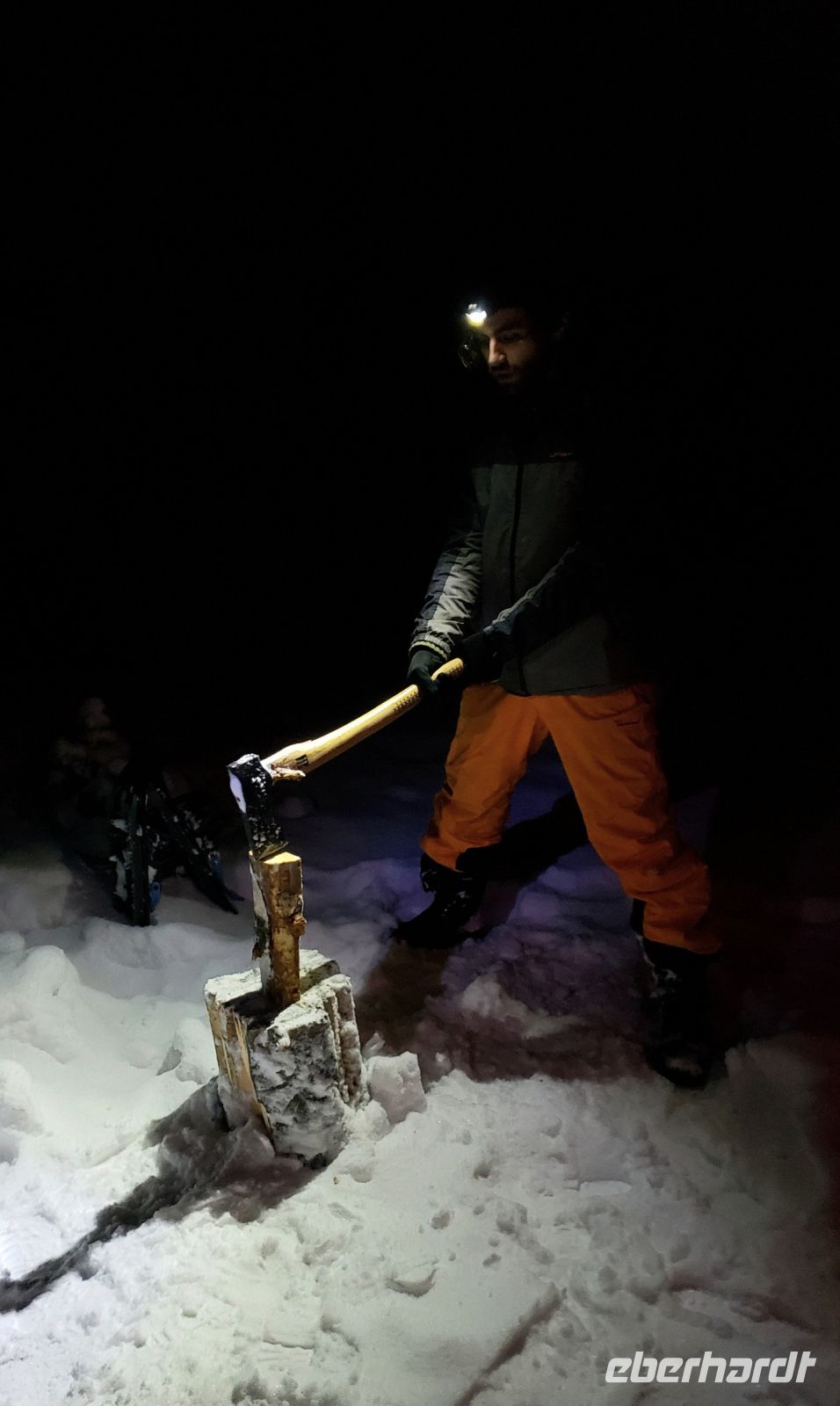 Am Abend macht denn die 2. Hälfte unserer Gruppe dieSchneeschuhwanderung, selbstverständlich auch mit Holzhacken und Lagerfeuer.