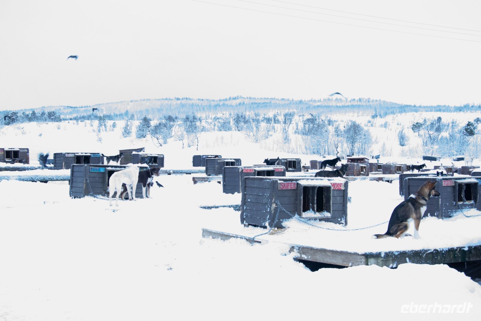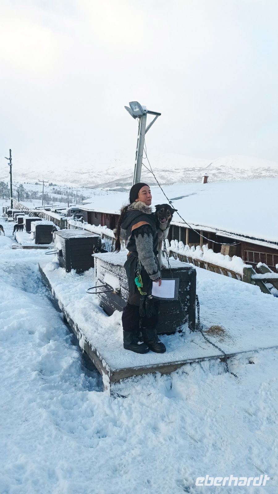 In einer Präsentation erfahren wir von den Anstrengungen, die das Hundeschlittenfahren mit sich bringt. Die Besitzer der Hundestation nehmen regelmäßig an Langstrecken-Hundeschlittenrennen wie dem berühmten Yukon Quest (1.600 km) in Alaska und Kanada und dem Finnmarksløpet (1.000 km) in der nördlichsten Provinz Norwegens teil.