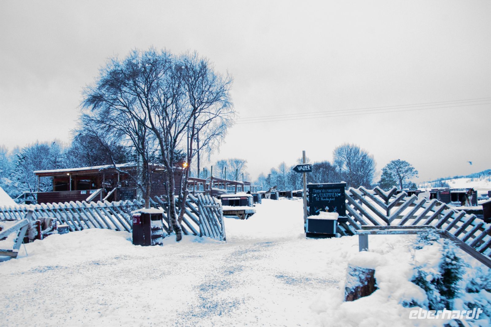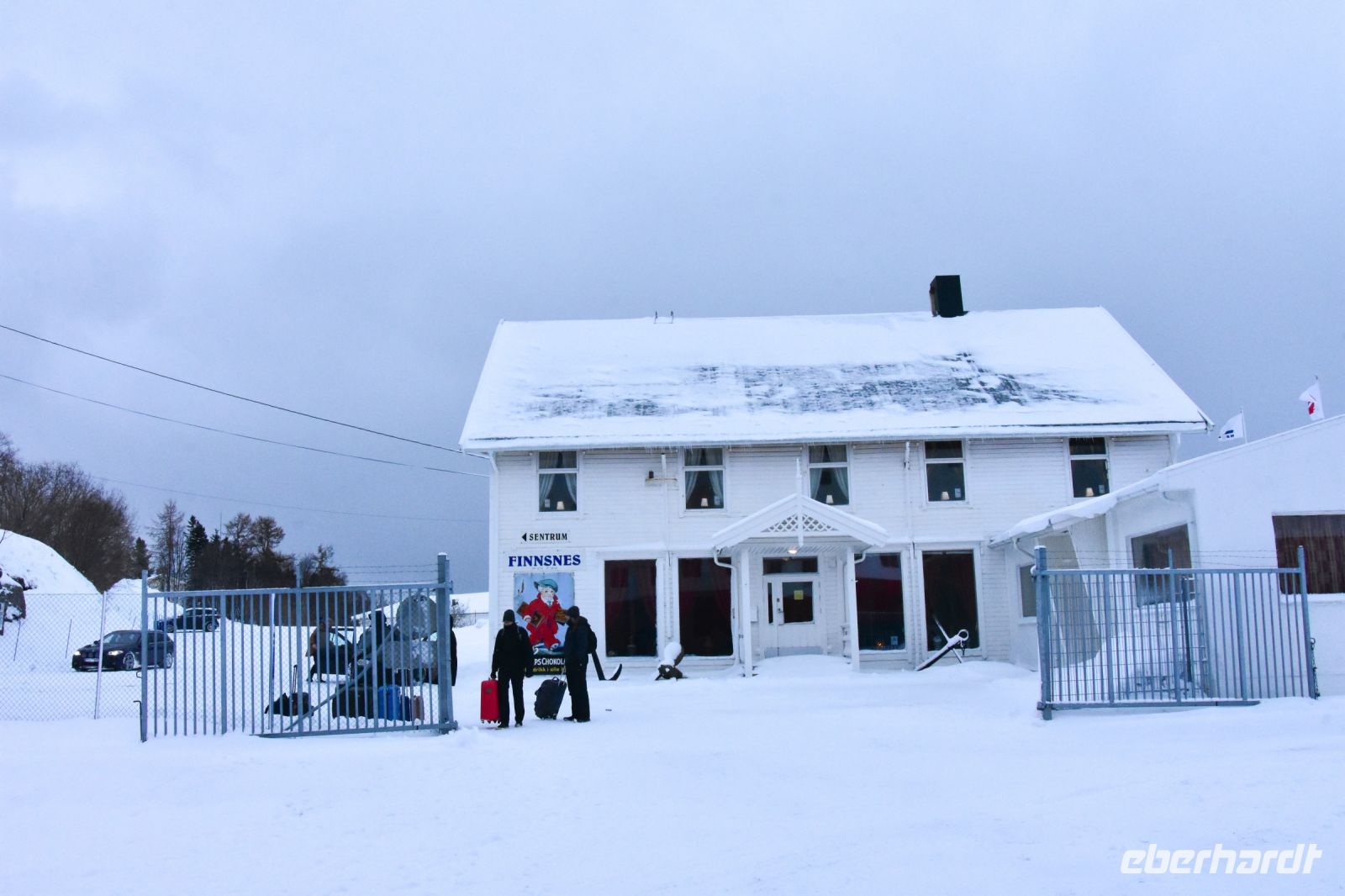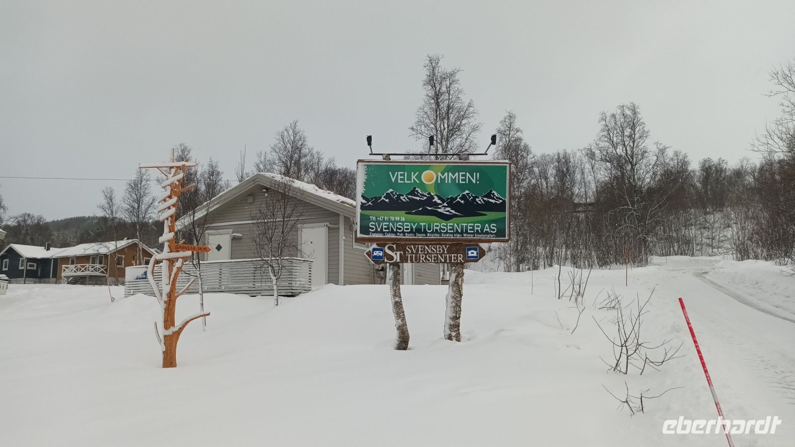 In Svensby werden wir vom Schneemobil-Team in Empfang genommen. In wenigen Schritten erreichen wir das Ziel.