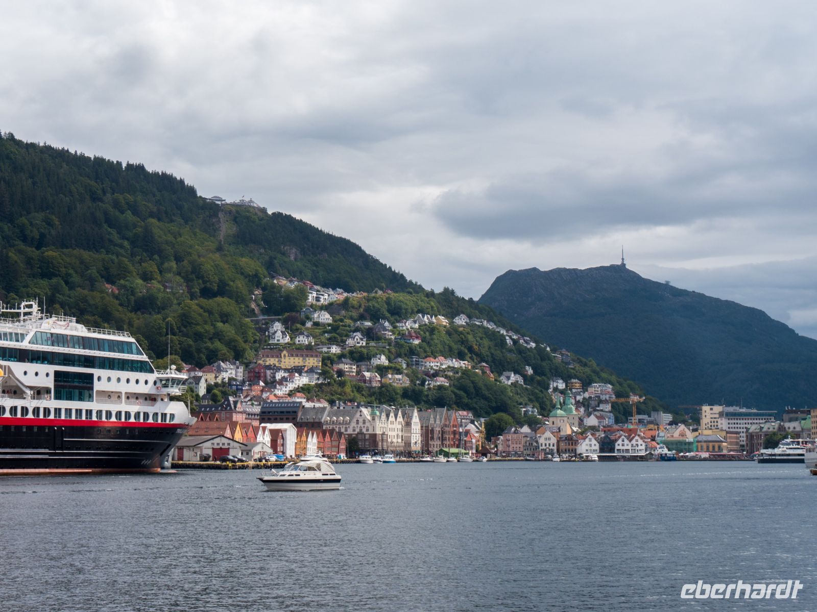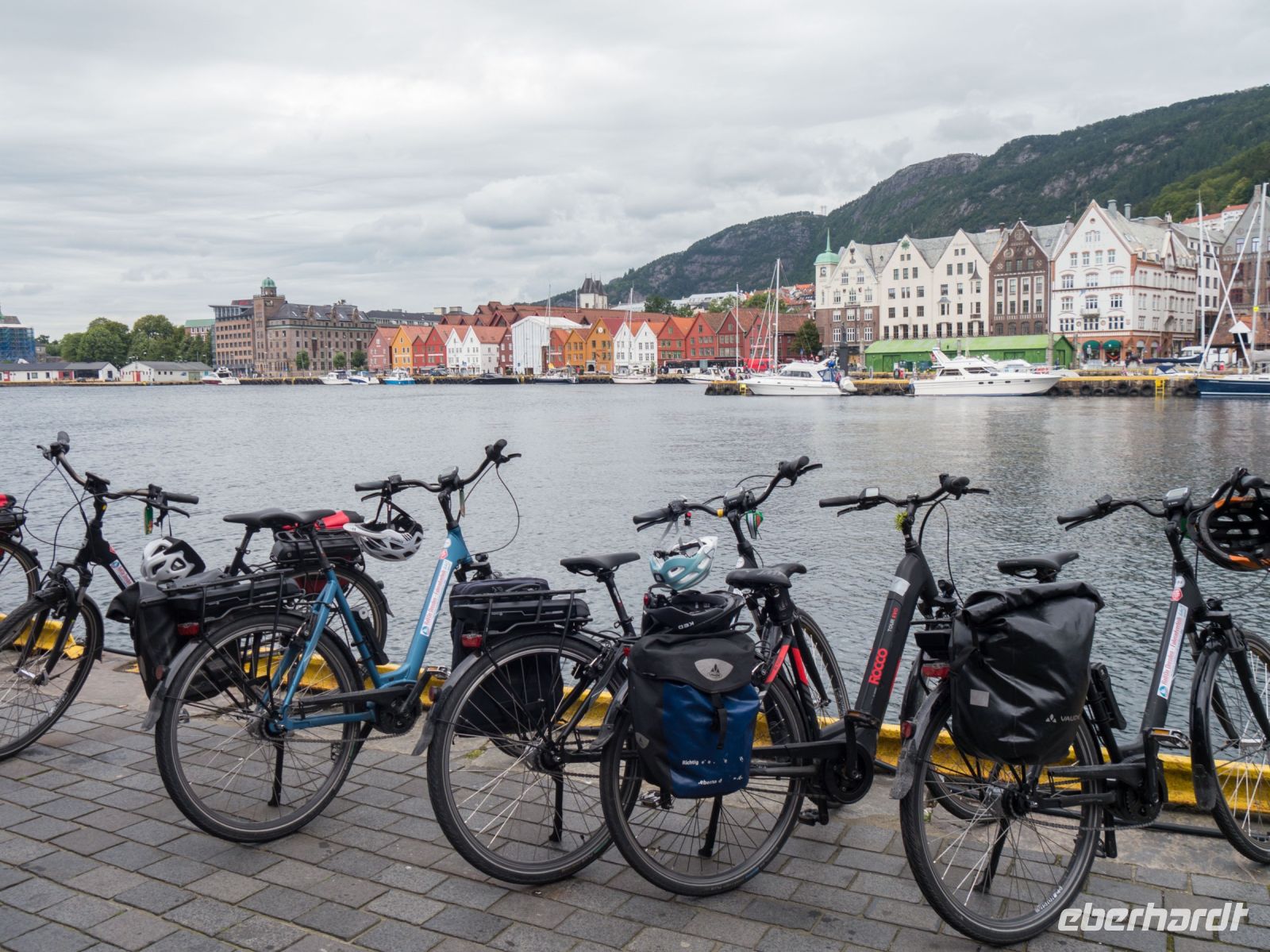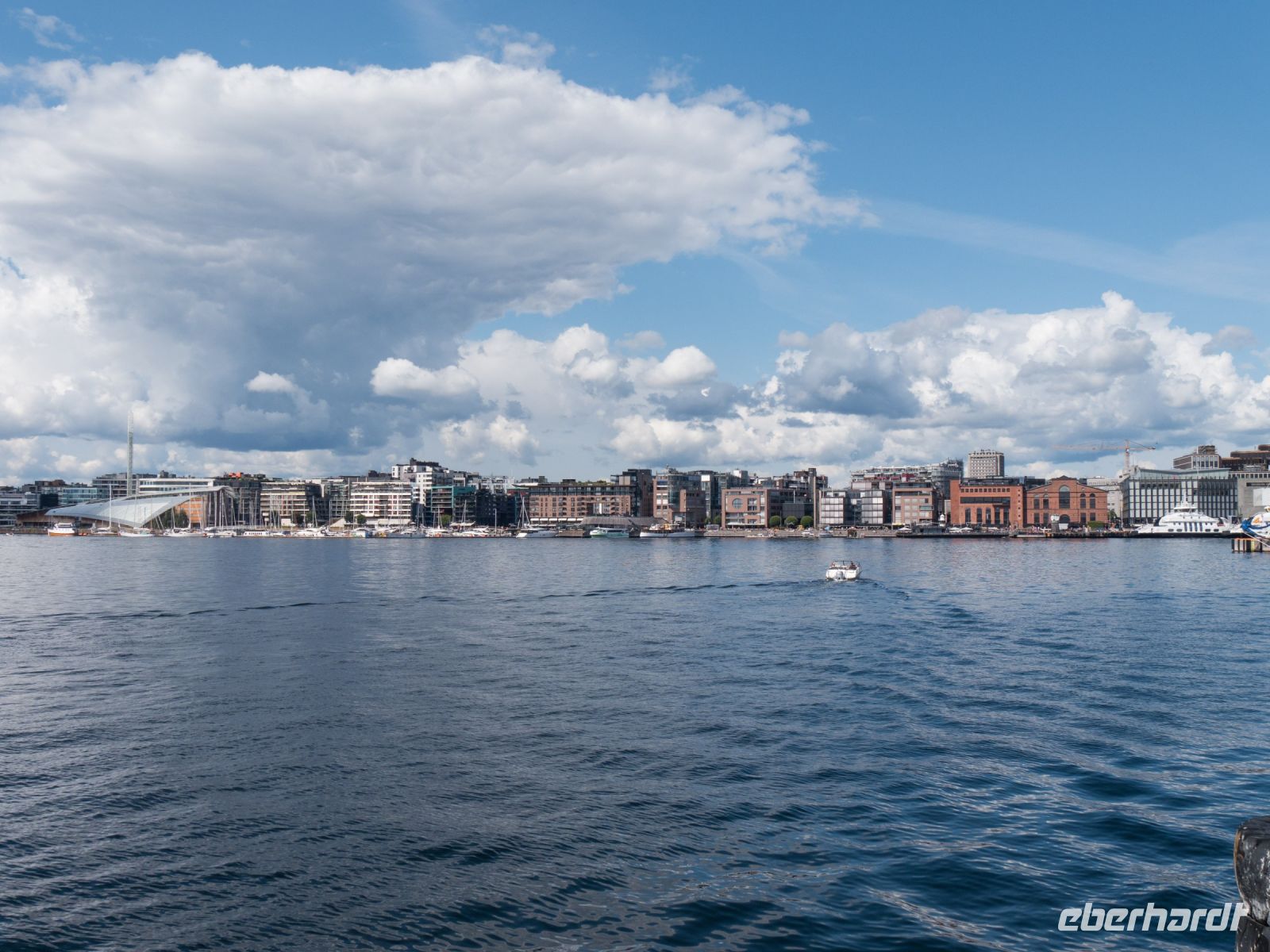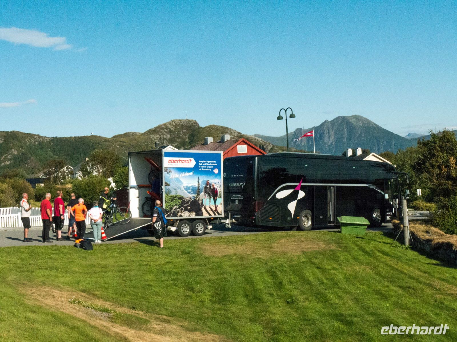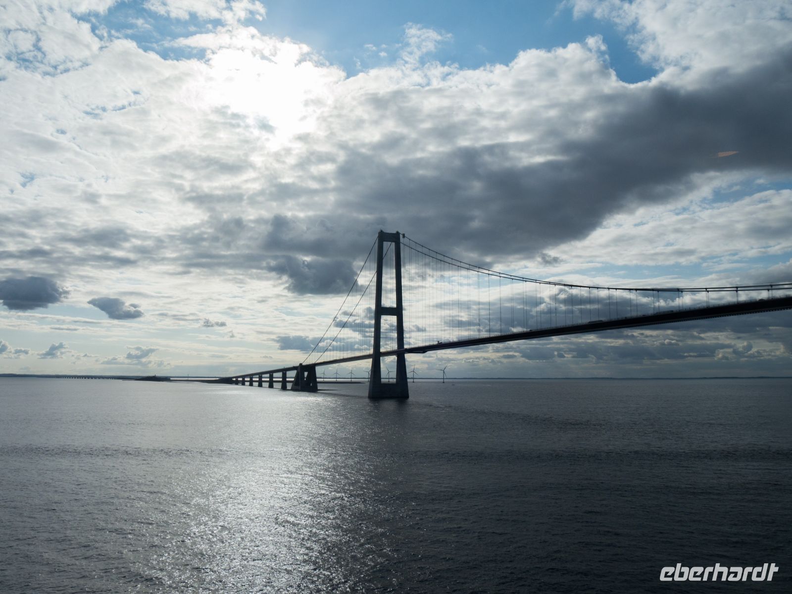Die Nacht war ausgesprochen kurz, denn wir wollen bereits um die Mittagszeit in Kiel eintreffen, um dort unsere Fähre nach Norwegen zu erreichen. Bereits am Vortag haben wir unseren Eberhardt-Radanhänger mit den E-Bikes und allen notwendigen Utensilien beladen und können nun die Reise gen Norden antreten. Voller Vorfreude und Neugier sind wir zwei Reiseleiter, unser Bus-Chauffeur und unsere 15 radlustigen Eberhardt-Gäste. Dieser Tage reist man sicher nicht ganz ohne Vorbehalte, denn Reisen in Corona-Zeiten sind doch etwas anders als gewohnt. Die aktuell niedrigen Inzidenzzahlen ermöglichen es auch nicht geimpften / nicht genesenen Gästen, nach Norwegen einzureisen, vorausgesetzt man macht vorab eine Online-Registrierung und lässt sich bei der Einreise testen. Aber erst einmal geht es in Kiel an Bord der Color Line, dem größten Kreuzfahrtschiff der Welt mit Fahrzeugdeck! Pünktlich um 14 Uhr heißt es „Leinen los!“ und wir verlassen den Hafen von Kiel. Die Passage durch die Kieler Förde und die Bucht bietet herrliche Ausblicke und auch an Bord gibt es viel zu entdecken, so dass garantiert keine Langeweile aufkommt: Flanieren auf der Promenade, Shopping, Musik im Pub oder ein Drink mit Meerblick in der Observation Lounge. Am Abend schlemmen wir vom skandinavischen Buffet, das keine Wünsche offen lässt. Und noch ein Superlativ steht auf dem Programm: die Durchfahrt unter der Storebælt-Brücke. Die 18 Kilometer lange Brücke über den Großen Belt ist die längste Hängebrücke Europas (Hauptspannweite 1.624 Meter) und sogar eine der längsten Hängebrücken der Welt! Das lassen wir uns natürlich nicht entgehen und eilen an Deck, um den Moment einzufangen. Wir übernachten in der gebuchten Kabine.
