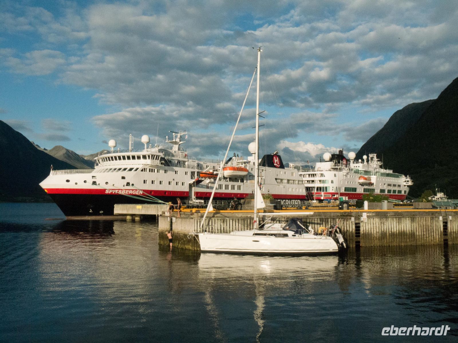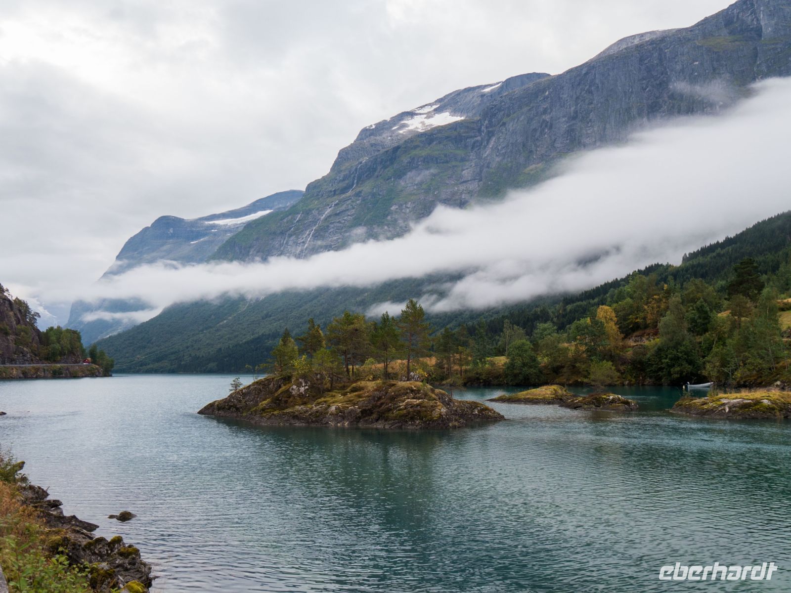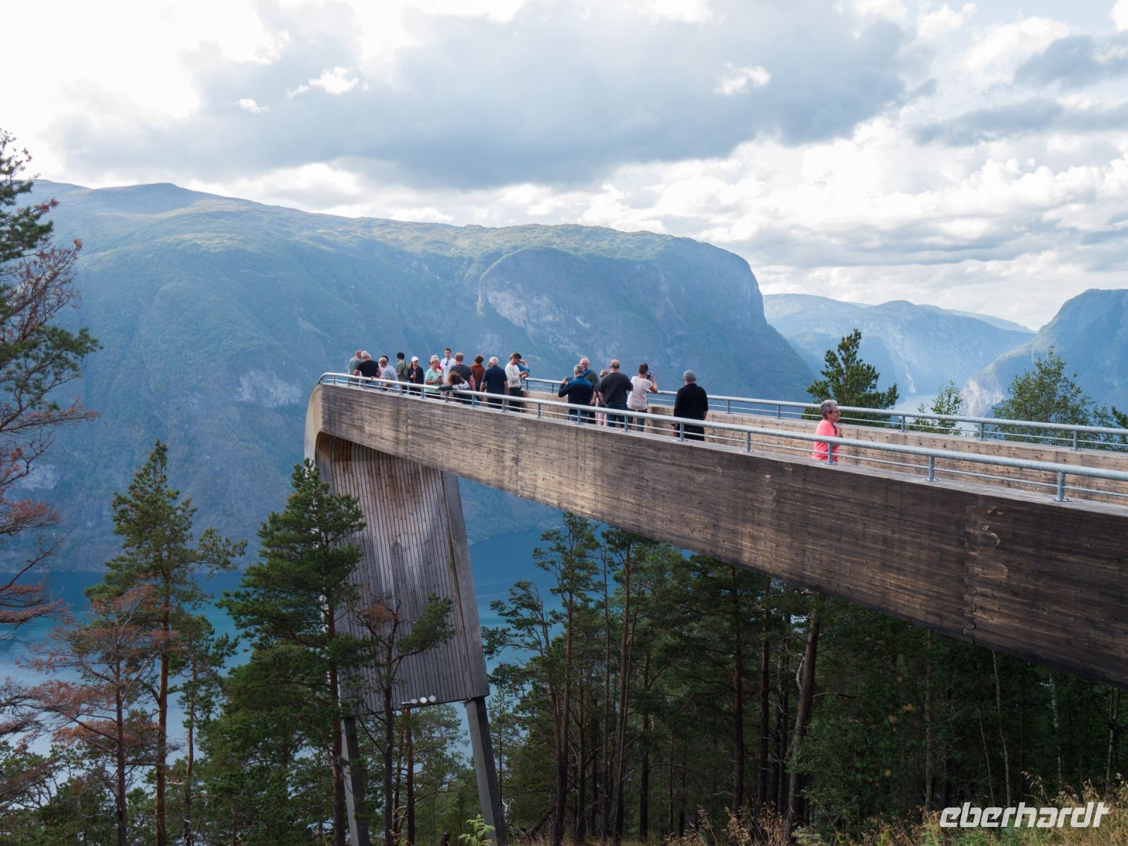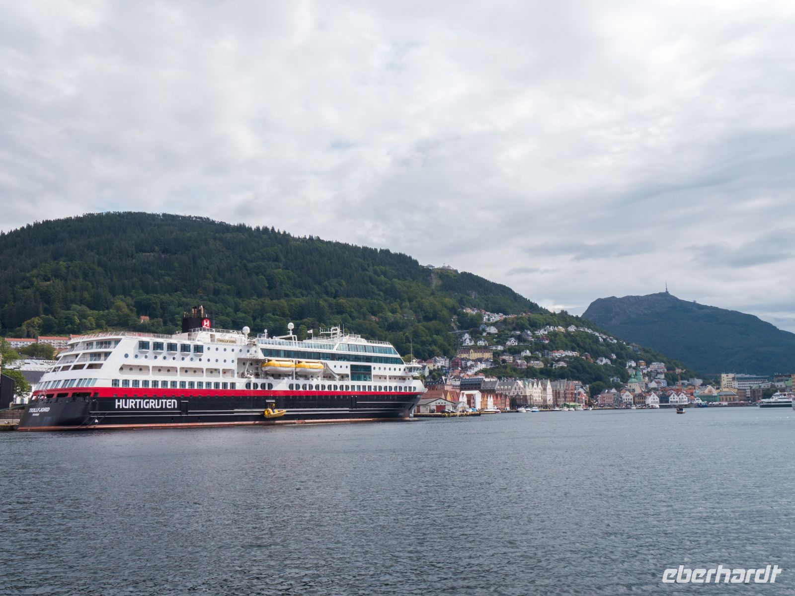 Die Nacht war ausgesprochen kurz, denn wir wollen bereits um die Mittagszeit in Kiel eintreffen, um dort unsere Fähre nach Norwegen zu erreichen. Bereits am Vortag haben wir unseren Eberhardt-Radanhänger mit den E-Bikes und allen notwendigen Utensilien beladen und können nun die Reise gen Norden antreten. Voller Vorfreude und Neugier sind wir zwei Reiseleiter, unser Bus-Chauffeur und unsere 15 radlustigen Eberhardt-Gäste. Dieser Tage reist man sicher nicht ganz ohne Vorbehalte, denn Reisen in Corona-Zeiten sind doch etwas anders als gewohnt. Die aktuell niedrigen Inzidenzzahlen ermöglichen es auch nicht geimpften / nicht genesenen Gästen, nach Norwegen einzureisen, vorausgesetzt man macht vorab eine Online-Registrierung und lässt sich bei der Einreise testen. Aber erst einmal geht es in Kiel an Bord der Color Line, dem größten Kreuzfahrtschiff der Welt mit Fahrzeugdeck! Pünktlich um 14 Uhr heißt es „Leinen los!“ und wir verlassen den Hafen von Kiel. Die Passage durch die Kieler Förde und die Bucht bietet herrliche Ausblicke und auch an Bord gibt es viel zu entdecken, so dass garantiert keine Langeweile aufkommt: Flanieren auf der Promenade, Shopping, Musik im Pub oder ein Drink mit Meerblick in der Observation Lounge. Am Abend schlemmen wir vom skandinavischen Buffet, das keine Wünsche offen lässt. Und noch ein Superlativ steht auf dem Programm: die Durchfahrt unter der Storebælt-Brücke. Die 18 Kilometer lange Brücke über den Großen Belt ist die längste Hängebrücke Europas (Hauptspannweite 1.624 Meter) und sogar eine der längsten Hängebrücken der Welt! Das lassen wir uns natürlich nicht entgehen und eilen an Deck, um den Moment einzufangen. Wir übernachten in der gebuchten Kabine.