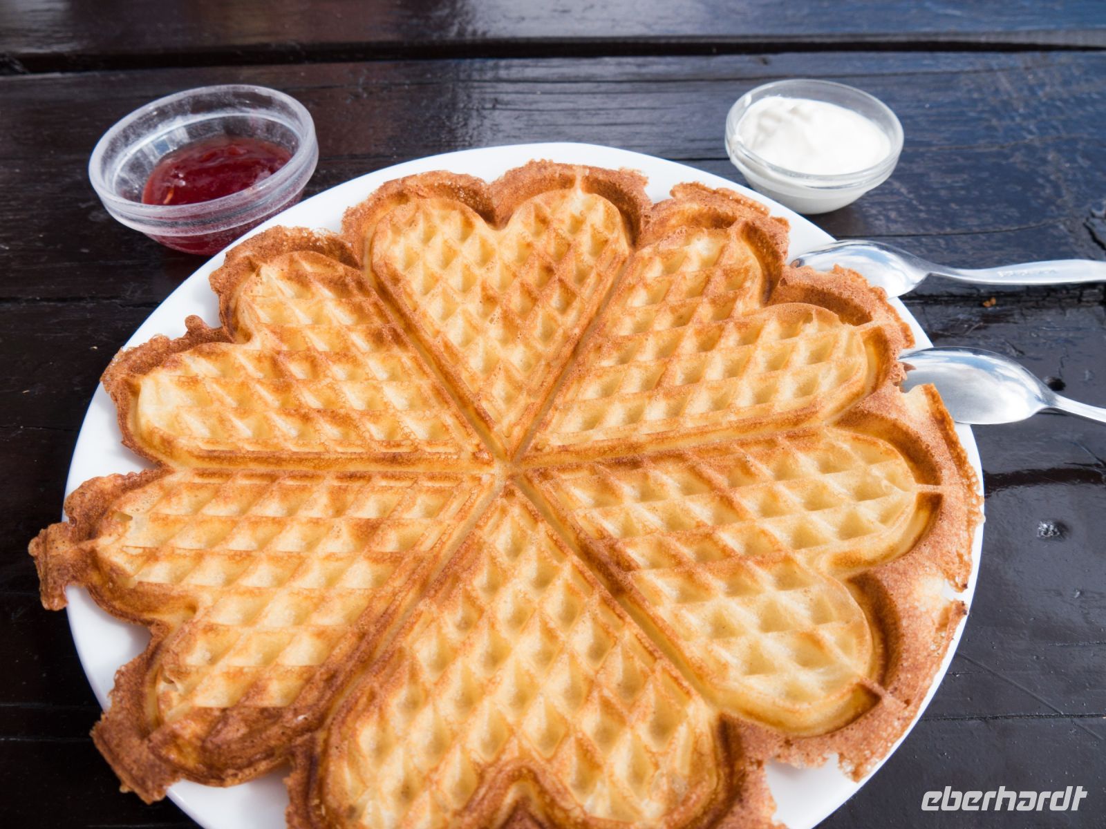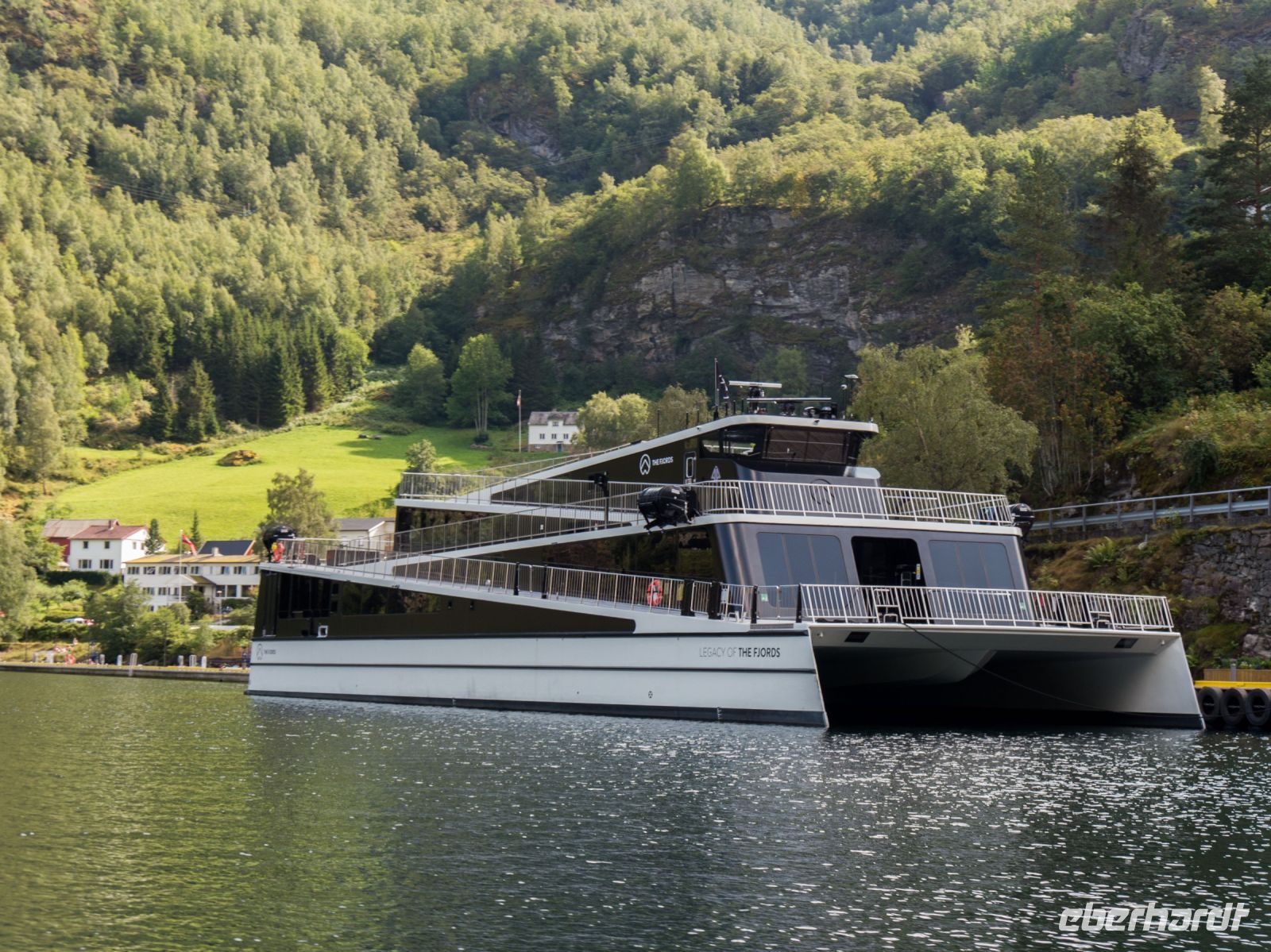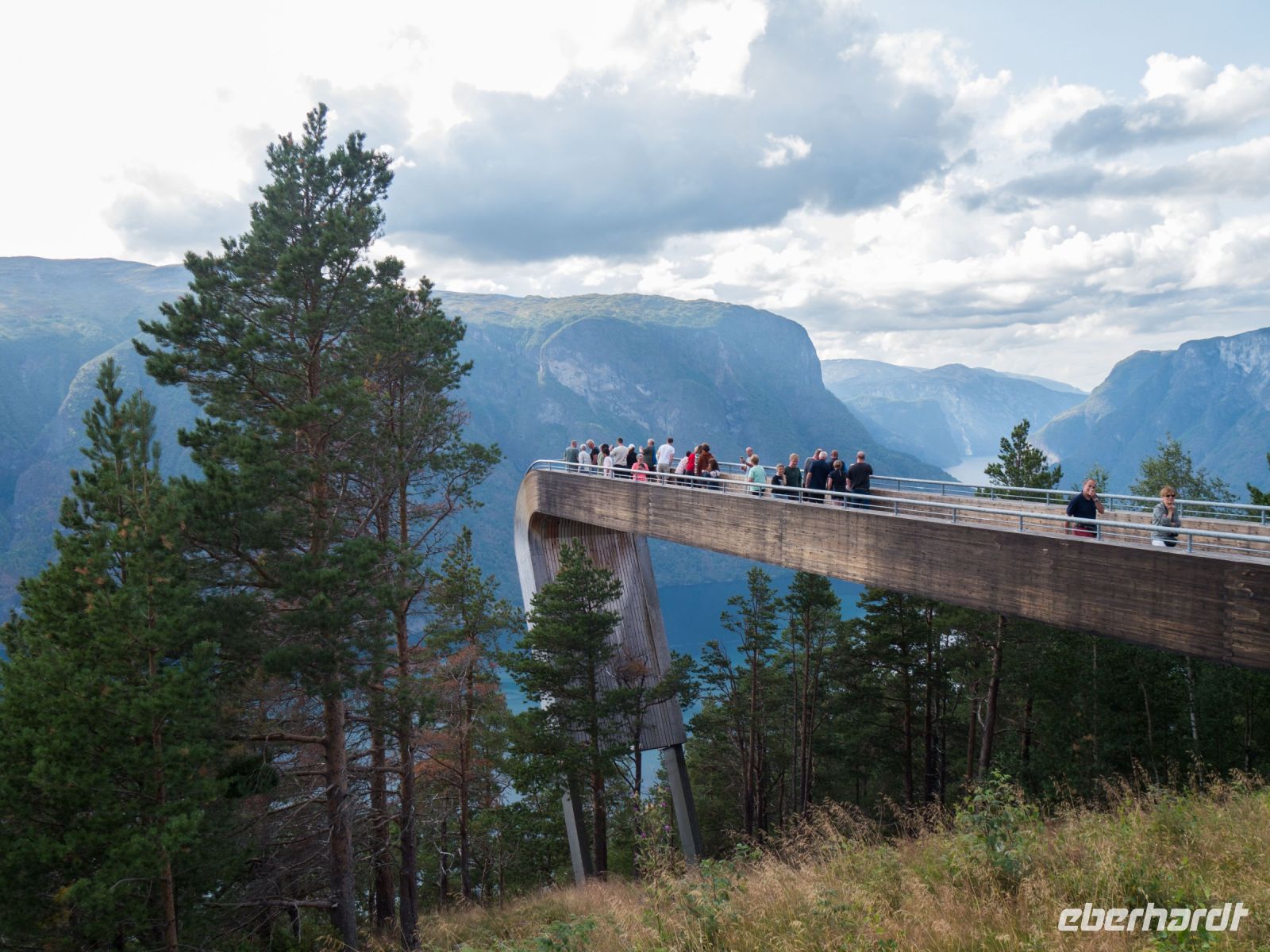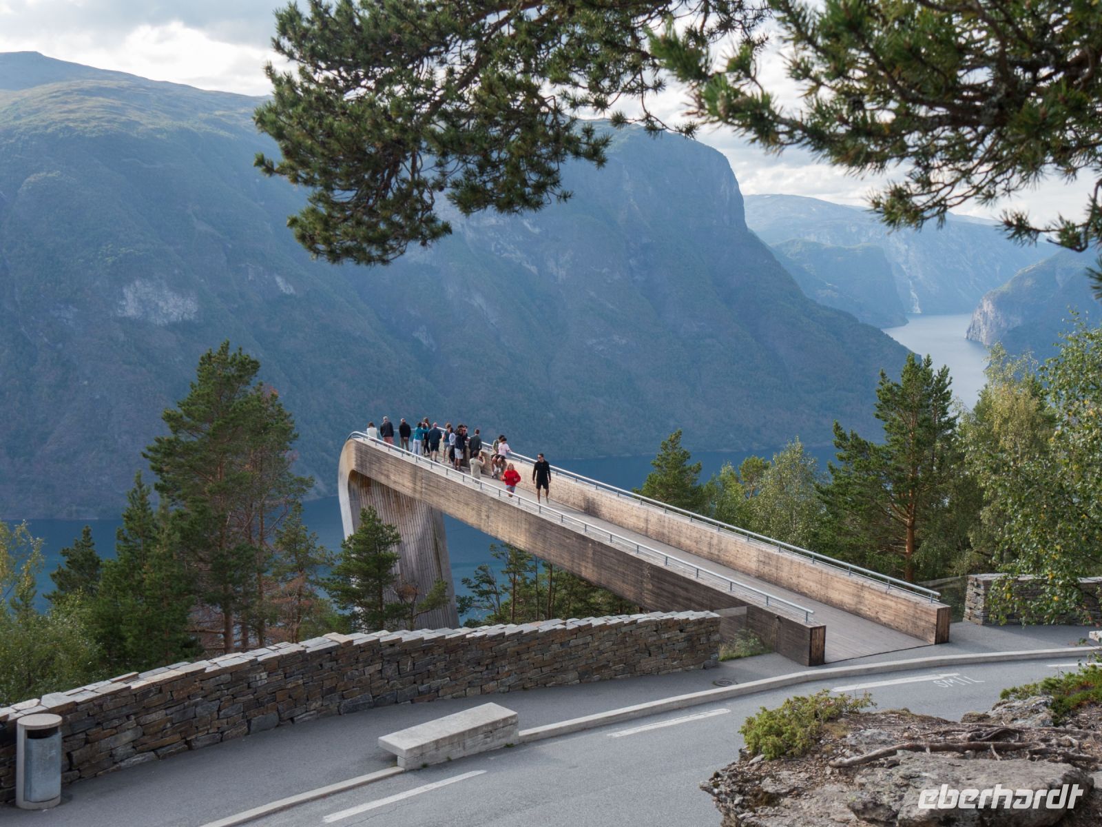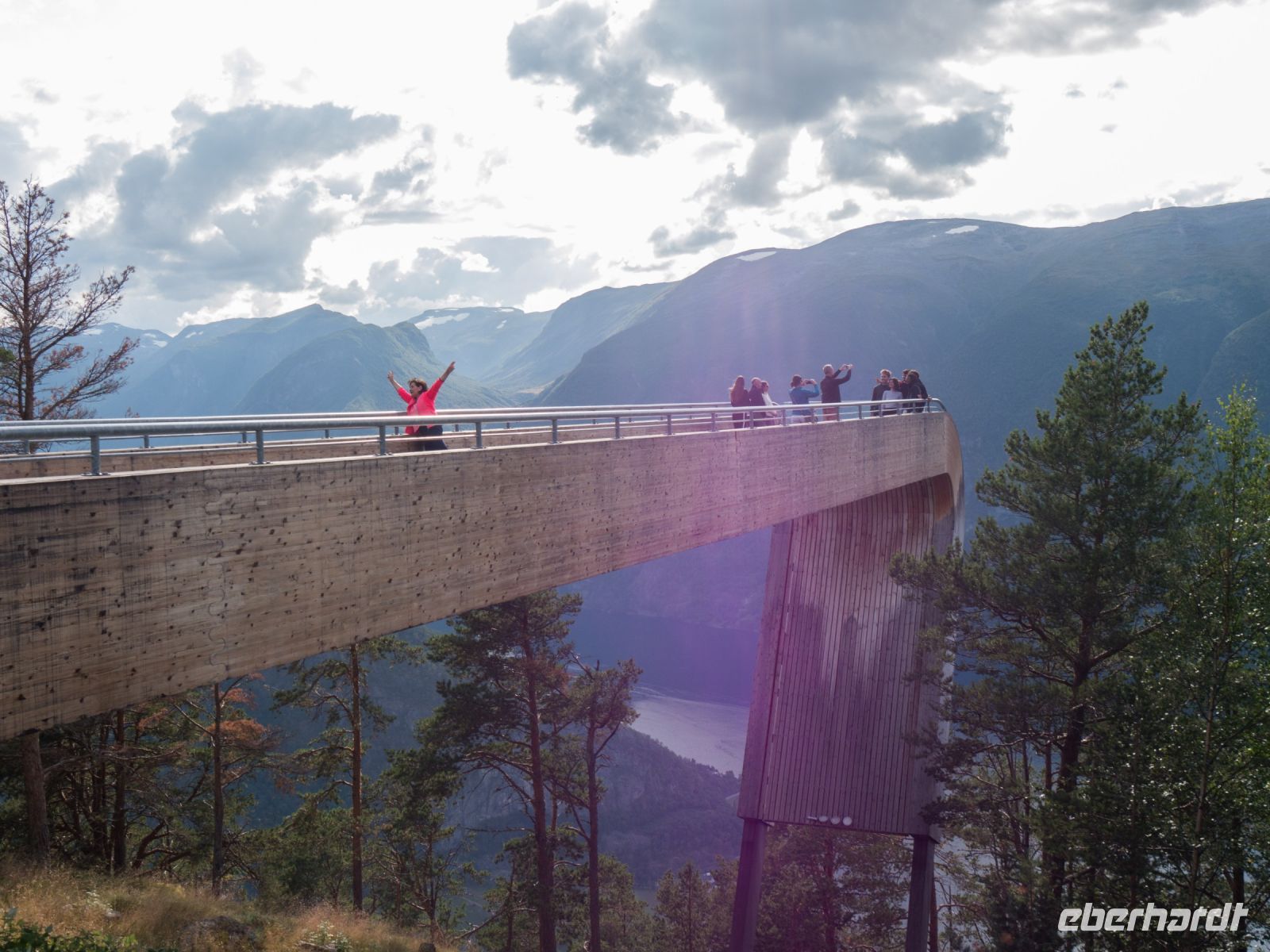 Die Nacht war ausgesprochen kurz, denn wir wollen bereits um die Mittagszeit in Kiel eintreffen, um dort unsere Fähre nach Norwegen zu erreichen. Bereits am Vortag haben wir unseren Eberhardt-Radanhänger mit den E-Bikes und allen notwendigen Utensilien beladen und können nun die Reise gen Norden antreten. Voller Vorfreude und Neugier sind wir zwei Reiseleiter, unser Bus-Chauffeur und unsere 15 radlustigen Eberhardt-Gäste. Dieser Tage reist man sicher nicht ganz ohne Vorbehalte, denn Reisen in Corona-Zeiten sind doch etwas anders als gewohnt. Die aktuell niedrigen Inzidenzzahlen ermöglichen es auch nicht geimpften / nicht genesenen Gästen, nach Norwegen einzureisen, vorausgesetzt man macht vorab eine Online-Registrierung und lässt sich bei der Einreise testen. Aber erst einmal geht es in Kiel an Bord der Color Line, dem größten Kreuzfahrtschiff der Welt mit Fahrzeugdeck! Pünktlich um 14 Uhr heißt es „Leinen los!“ und wir verlassen den Hafen von Kiel. Die Passage durch die Kieler Förde und die Bucht bietet herrliche Ausblicke und auch an Bord gibt es viel zu entdecken, so dass garantiert keine Langeweile aufkommt: Flanieren auf der Promenade, Shopping, Musik im Pub oder ein Drink mit Meerblick in der Observation Lounge. Am Abend schlemmen wir vom skandinavischen Buffet, das keine Wünsche offen lässt. Und noch ein Superlativ steht auf dem Programm: die Durchfahrt unter der Storebælt-Brücke. Die 18 Kilometer lange Brücke über den Großen Belt ist die längste Hängebrücke Europas (Hauptspannweite 1.624 Meter) und sogar eine der längsten Hängebrücken der Welt! Das lassen wir uns natürlich nicht entgehen und eilen an Deck, um den Moment einzufangen. Wir übernachten in der gebuchten Kabine.