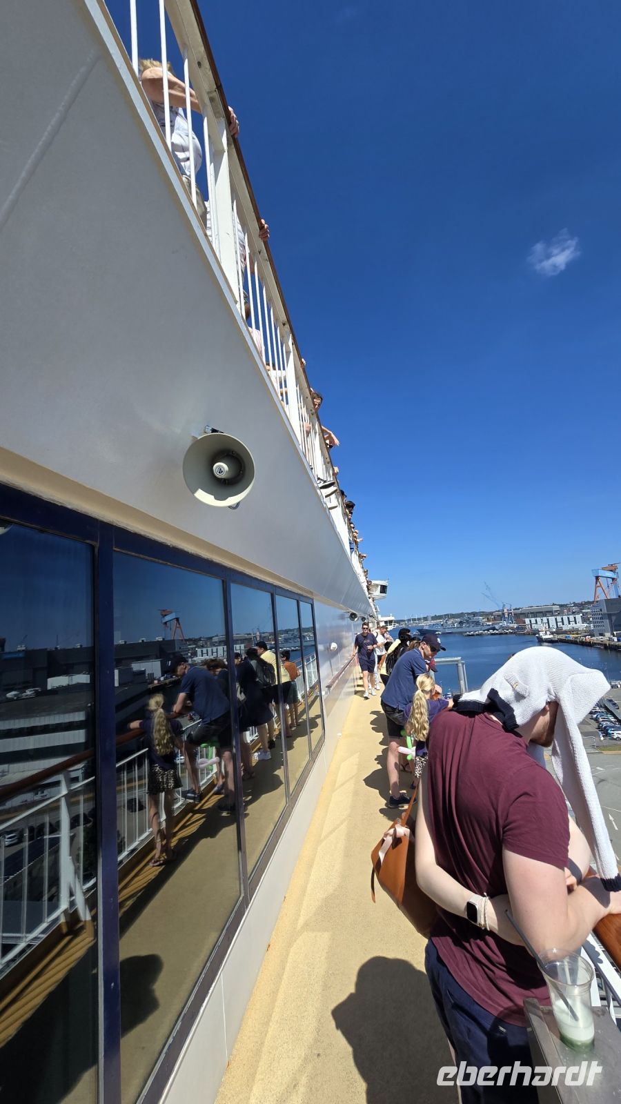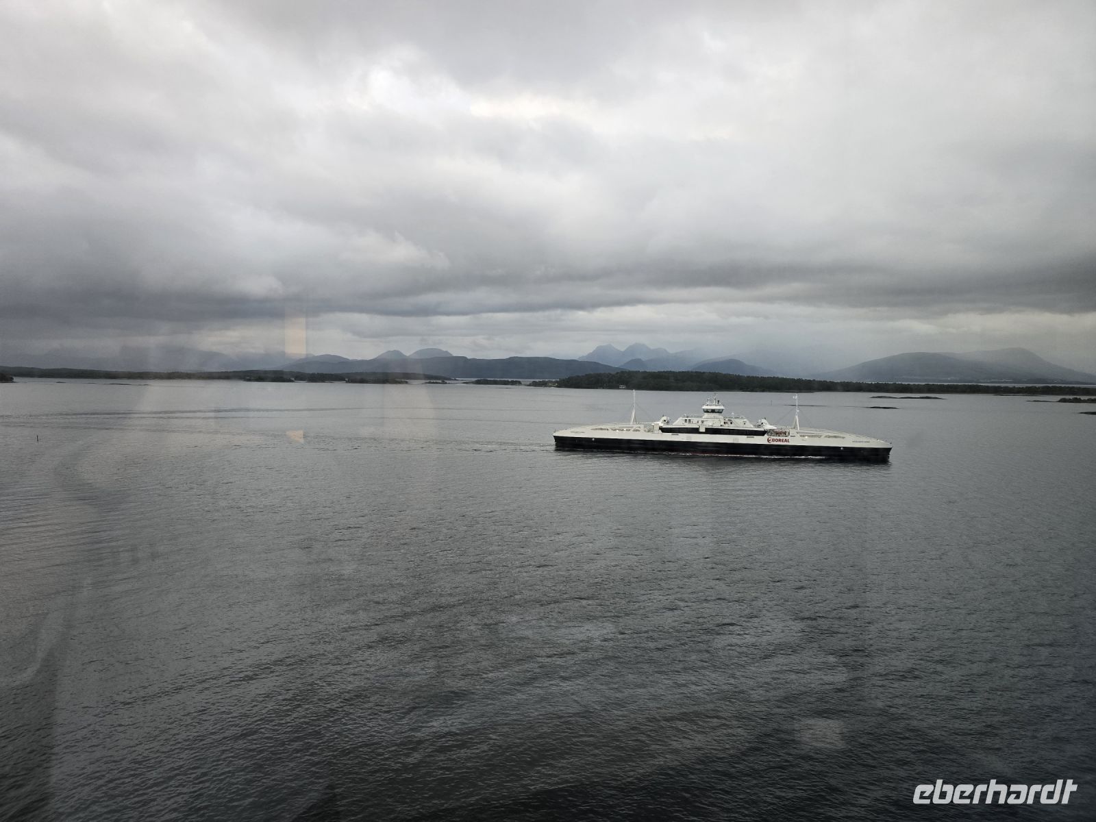 Am Norwegenkai treffen wir unseren letzten Reisegast somit sind wir komplett und können bei der Fähre einchecken und nach einem kurzen Spaziergang durch die Stadt Kiel ist auch schon der Einstieg in die Fähre möglich. Das Reisen mit der Color Line hat immer etwas Besonderes. Die Fähre ist ausgestattet wie ein kleines Kreuzfahrtschiff mit großem Unterhaltungsdeck, Gaststätten, Theater, Wasserrutschen und am Abend musikalische Liveauftritte in der Schiffsbar.