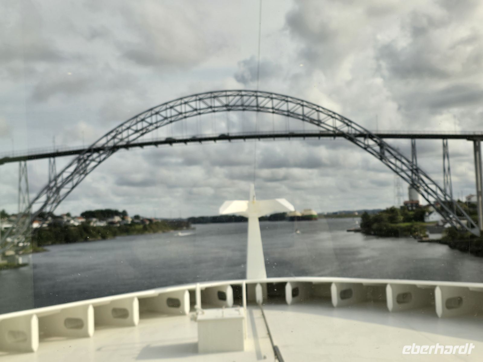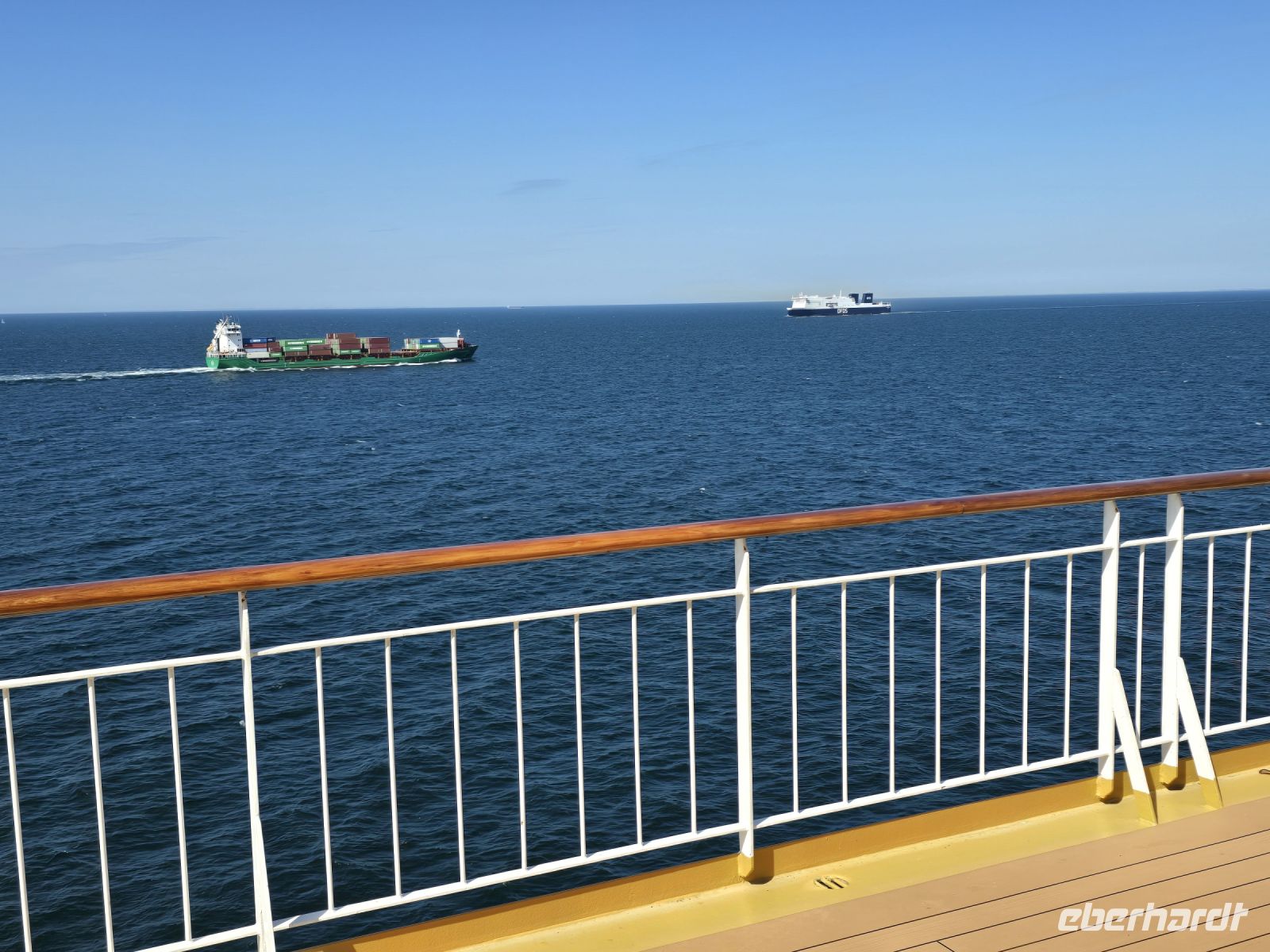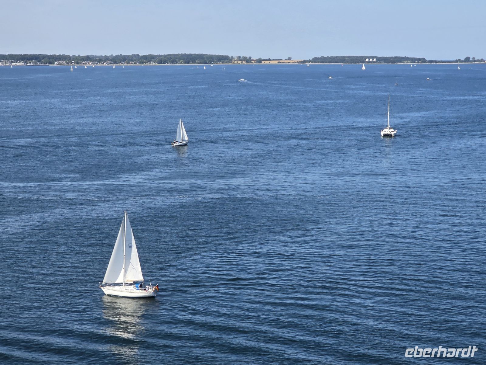 Aber erstmal steht jetzt die Ausfahrt durch die Kieler Förde an, auch das ist ein sehenswertes Programm. Gegenüber unserem Anlegeplatz steht die Stenaline die sich vorbereitet etwas später nach Göteburg zu fahren. Wir haben ein sonniges Wetter und können uns die komplette Ausfahrt auf dem Sonnendeck aufhalten und den regen Schiffsverkehr beobachten. Vorbei am Nordostseekanal, an Laboe und dem Marinedenkmal und am Olympiahafen. Bei der Passage durch den Langelandbeld ist die Durchfahrt nur zirka 10 Kilometer breit und die Sicht auf die Insel zum Greifen nah. Etwas später durchfahren wir den großen Beld mit der größten Autobrücke Europas. Die Brücke überspannt das Meer mit einer Strecke von über 15 Kilometern und bietet für große Schiffe eine freie Durchfahrt von 1,6 Kilometern wo die Brücke freitragend ohne Stützpfeiler im Meer steht.