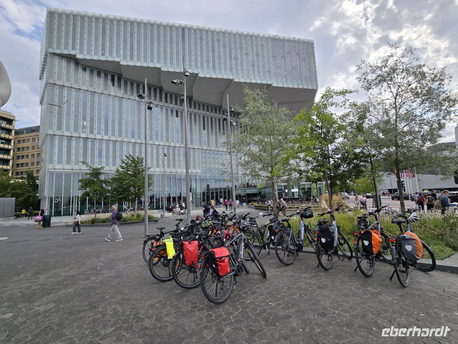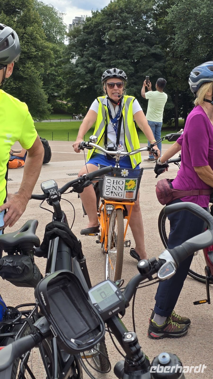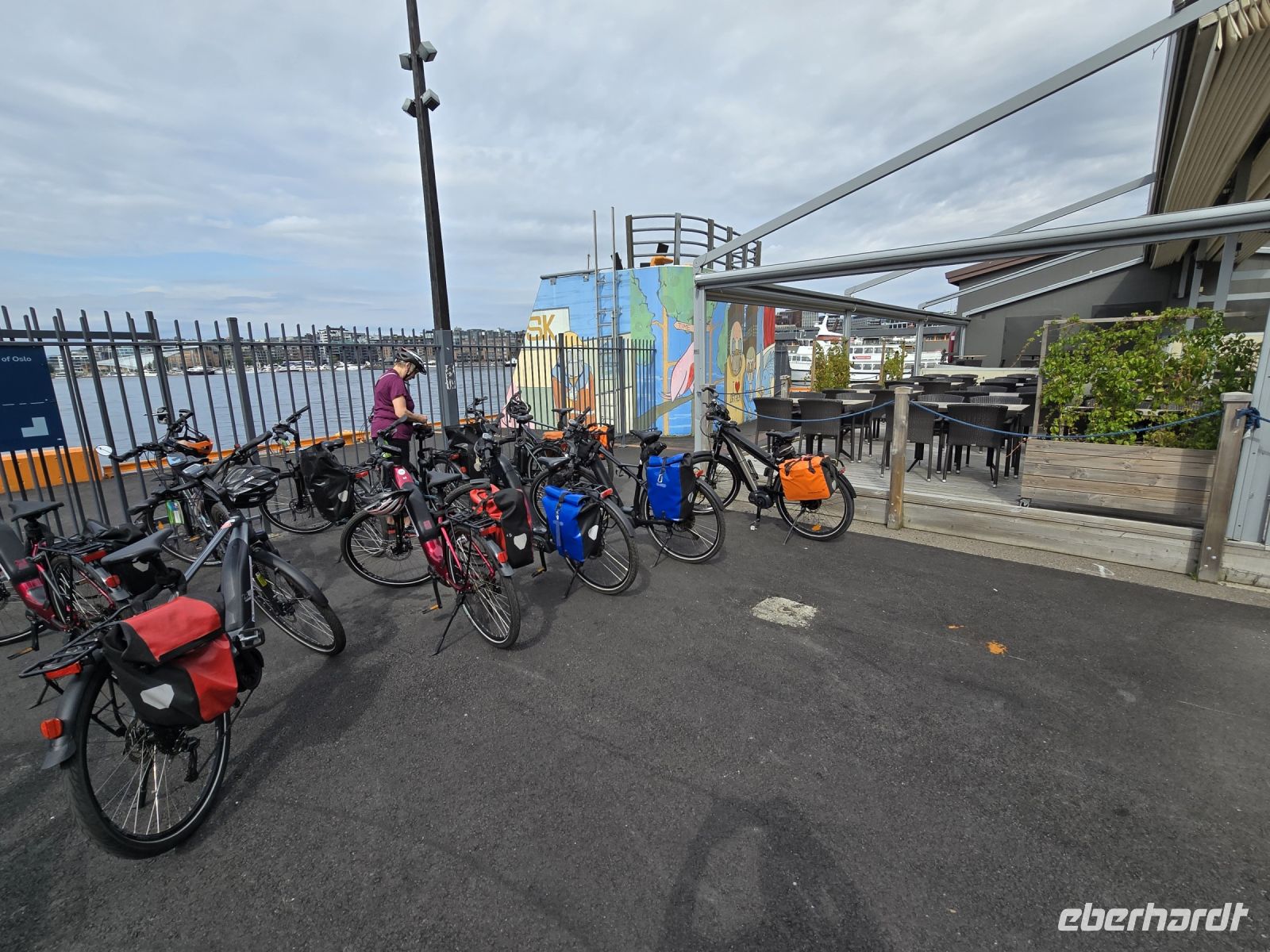 die Color Line hat diesen Morgen sehr pünktlich angelegt die Abwicklung beim Zoll hat auch keine Verzögerungen gebracht und so nutzten wir den großzügigen Parkplatz auf den Alex den Bus mit unseren Fahrrädern abstellte um gleich hier vor Ort die Fahrräder auszuladen. Nach einigen kleinen Modifikationen an Sattelhöhe und Lenkereinstellung waren wir alle bereit die ersten Kilometer auf Norwegischem Boden mit dem Fahrrad zurückzulegen. Wir radelten auf großzügigen Radwegen zu unserem Treffpunkt mit der Stadtführerin Arlene, die ebenfalls mit dem Fahrrad zu uns kam.