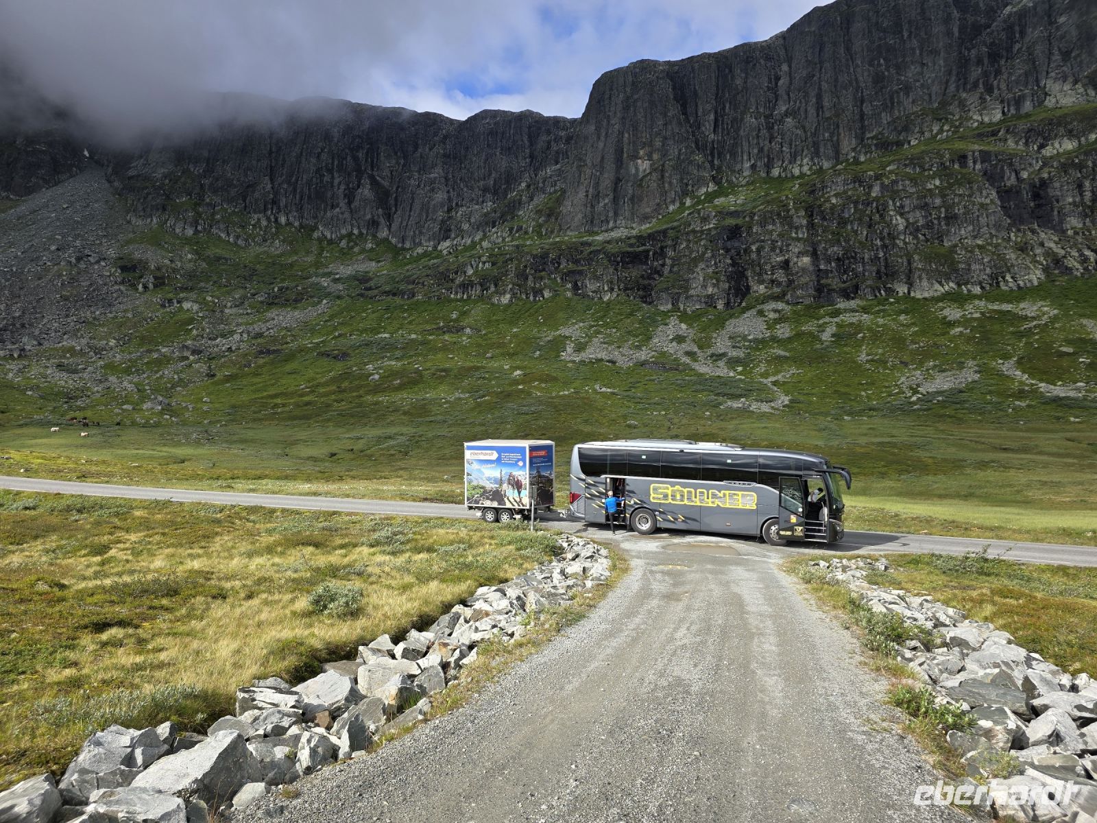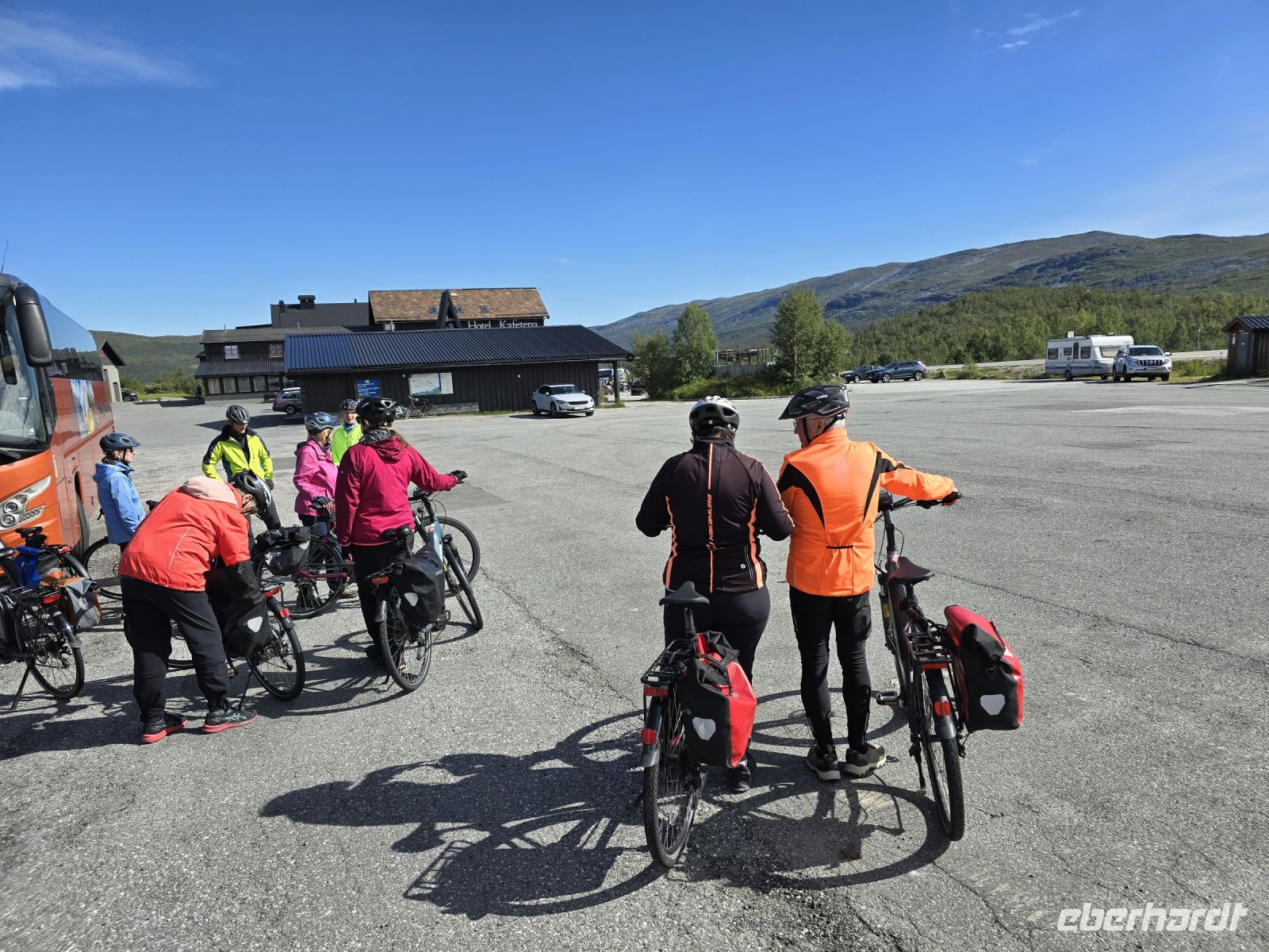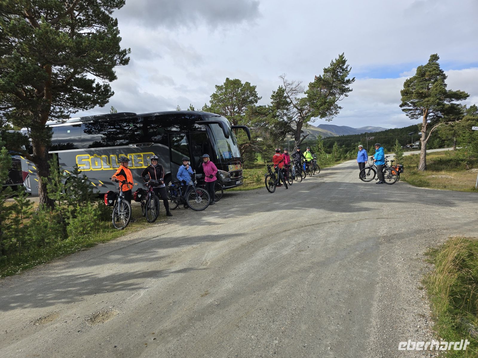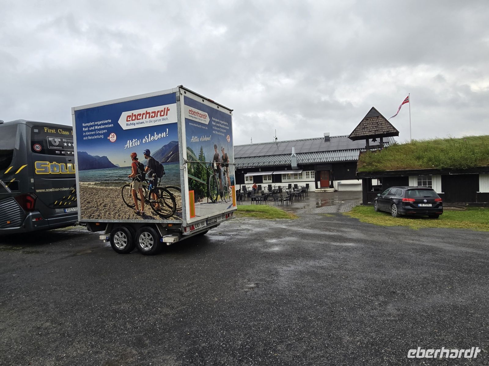 Wir durchqueren noch den Park um am anderen Ende auf dem Parkplatz wieder Alex und seinen Bus zu treffen. Wir verabschieden Arlene und laden unsere Fahrräder in den Anhänger ein, damit wir die restliche Zeit des Nachmittags für die Fahrt in das Vaset Gebirge, bis zu unserem ersten Hotel dem Gomobu Fjellstue nützen können.
