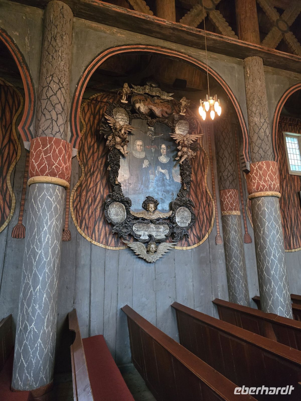 Nachdem wir am Morgen den Kopf aus den Hotelfenster Strecken sind wir erst noch optimistisch die Sonne scheint. Aber schon nach dem Frühstück hat sich der Regen zurückgemeldet, aber wir sind optimistisch und ziehen unsere Regenkleidung für unsere geplante Radtour durch den Dovre Nationalpark. Zuvor machen wir noch einen Abstecher in Ringebu bei der dortigen Stabkirche. Die Stabkirchen Norwegens zeugen von einer großen Erfahrung im Holzbau in den Jahren des 12. Jahrhunderts. Diese handwerklichen Fähigkeiten wurden schon zu Wikingerzeiten ausgebildet und später für den Bau der Stabkirchen genützt. Von außen, aber noch besser von innen können wir die Konstruktion der Stabkirche sehr gut erkennen. Komplette Stämme ragen hoch in den Giebel der Kirche sind an einem Stück eingesetzt und im Inneren der Kirche unbehandelt. Ein Wetterschutz in Form von Pech wurde von außen auf das Holz aufgetragen. Die Kirche verfügt über einen sehr aufwendig gearbeiteten Altar und einer Kanzel hoch über den Köpfen der Besucher. Alles in der Kirche ist aus Holz hergestellt mit feinen Schnitzereien verziert und in bunten Farben coloriert. Die insgesamt 750 starb Kirchen die während der Christianisierung in Norwegen im 12. und 13. Jahrhundert errichtet wurden sind leider nur noch 30 Kirchen übriggeblieben. Alle anderen wurden abgerissen und durch neuere Kirchen ersetzt. Erst spät hat man erkannt welche kunsthistorische Besonderheit diese Stabkirchen darstellen.