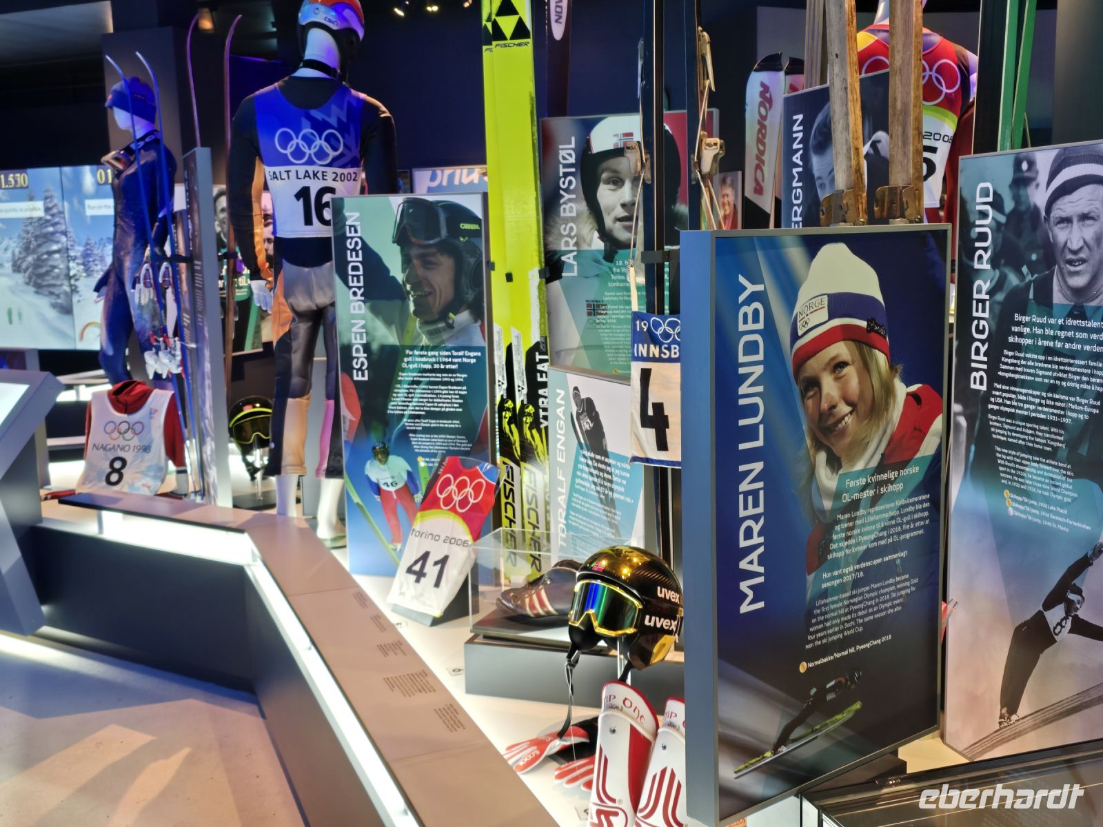 Bewaffnet mit Regenjacke und Regenschirmen machen wir uns trotz des heftigen Regens auf den Weg die Schanzen zu erklimmen. Über schmale Metalltreppen steigen wir höher und höher, insgesamt 800 Stufen, bis zum Schanzenturm der oberen Schanze vorbei an den Kommentatoren Häuschen, von wo aus die Fernsehübertragungen und Kommentatoren die Sprünge beurteilen. Oben von der Schanze bietet sich ein weiter Blick hinunter in das Tal und ein wenig Gänsehaut macht sich bei uns breit, wenn wir uns vorstellen auf diese Schanze steigen zu müssen und in die Tiefe zu gleiten. Auf unterschiedlichen Wegen gelangen wir wieder alle nach unten auf den Parkplatz und da der Regen keine Pause macht, nehmen wir gerne Platz im trockenen Bus und wir freuen uns über Kaffee und typische süße norwegische Snacks.