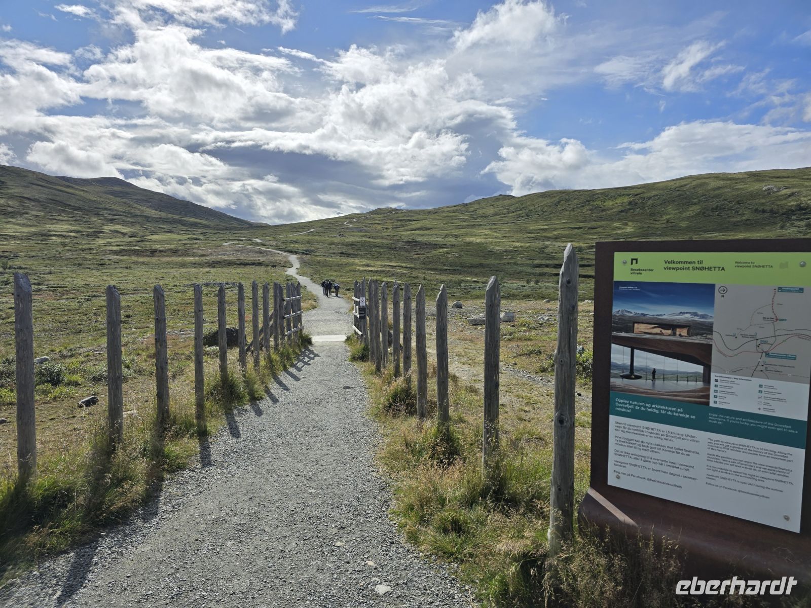 Der Tag ist noch jung wir haben nur wenige Pausen gemacht bei der Radtour, es war uns einfach zu kalt zum stehen. Nun beschließen wir dass wir an diesem Nachmittag noch eine kleine Wanderung auf den Aussichtspunkt des Snøhetta machen. Wir machen einen kleinen Zwischenstopp am Hotel um diejenigen aussteigen zu lassen die keine Lust mehr haben eine Wanderung zu machen und der Rest fährt weiter zum Parkplatz unterhalb der Hochebene des Snøhetta. Zirka eine halbe Stunde dauert dieser Anstieg, da wir alle zum Bus zurückkehren kommt dieses Mal auch Alex unser Busfahrer mit auf diesen Ausflug. Aber auch jetzt drückt der Wind ordentlich gegen uns. Bei kräftigem Gegenwind steigen wir hoch den gewundenen Pfad und kämpfen uns hoch bis zur Aussichtshütte am Grad Snøhetta.